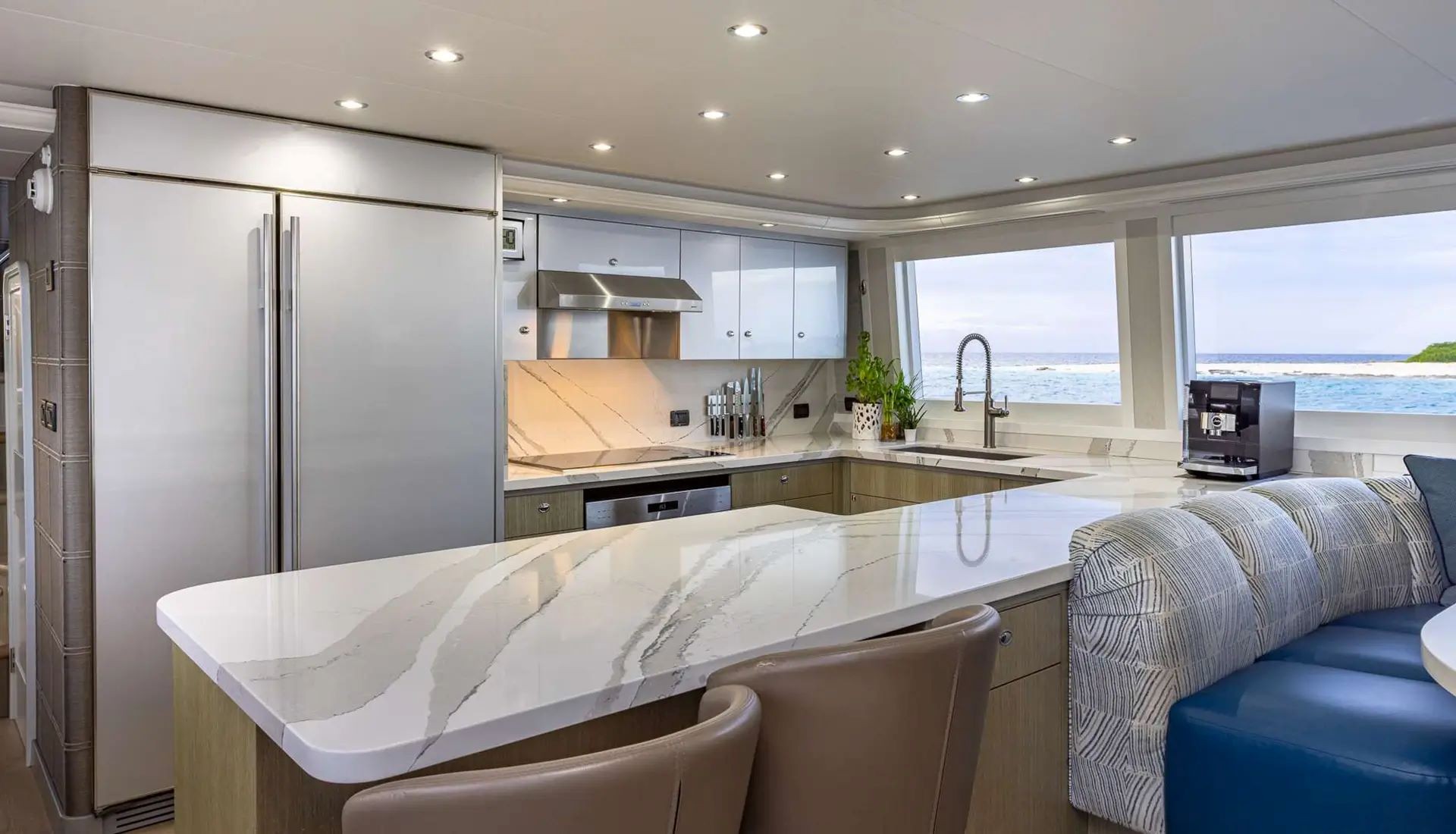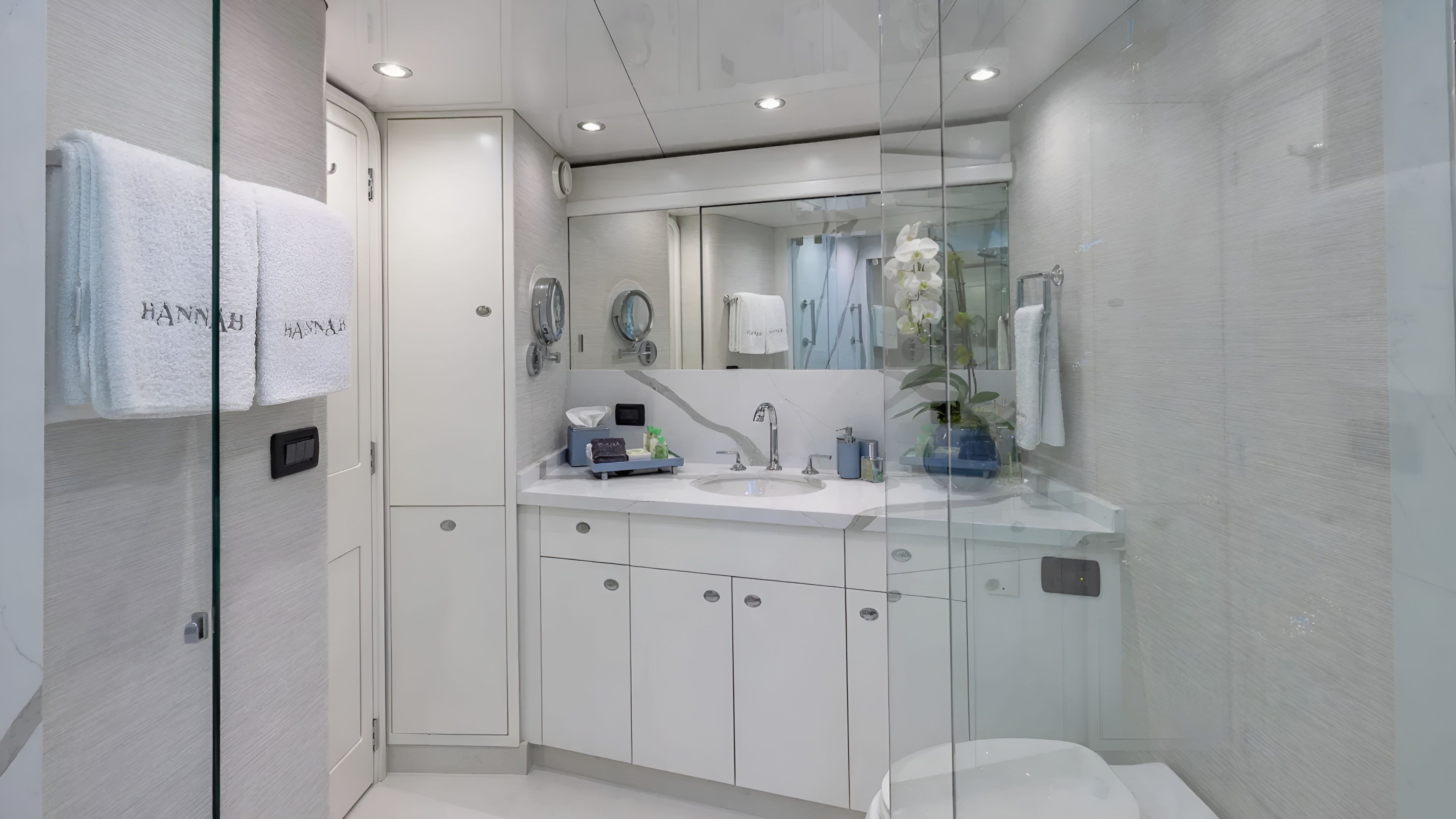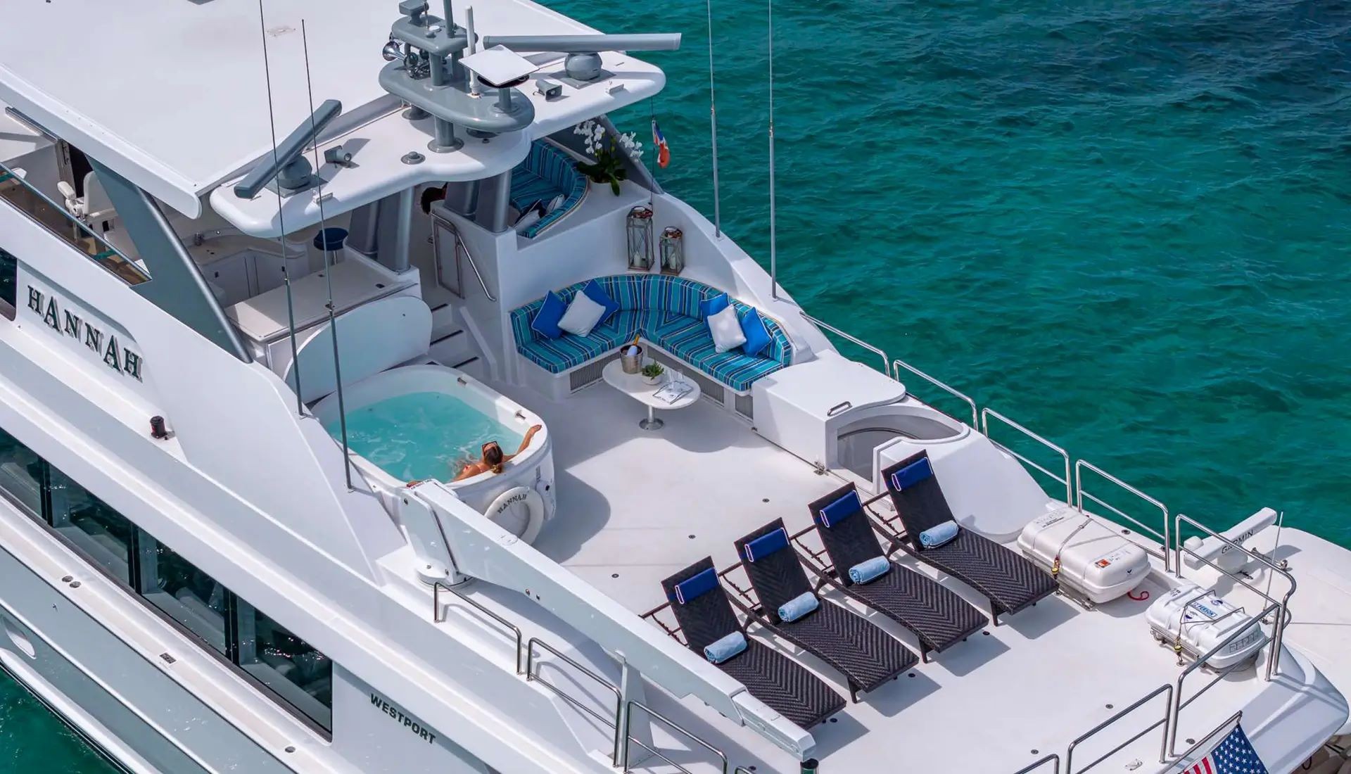 Experience the ultimate in comfort and luxury aboard 112’ HANNAH, built in 2003 by Westport Yachts and masterfully refit in 2020. Yacht HANNAH offers spacious interiors, state-of-the-art amenities, and a dedicated crew ready to cater to your every need. Her interior boasts a warm and contemporary design, with a generous main salon, formal dining area, and large windows that flood the space with natural light. Outside, guests can enjoy expansive deck areas featuring alfresco dining, a sundeck with a Jacuzzi, and plenty of lounge spaces to soak in the Caribbean sunshine. For the more adventurous, Hannah is equipped with a wide selection of water toys and tenders, ideal for exploring the crystal-clear Bahamian waters whether snorkeling vibrant reefs, paddleboarding along pristine beaches, or enjoying high-speed thrills. With a professional crew dedicated to exceptional service, Hannah ensures an unforgettable luxury yacht charter in Nassau and beyond.