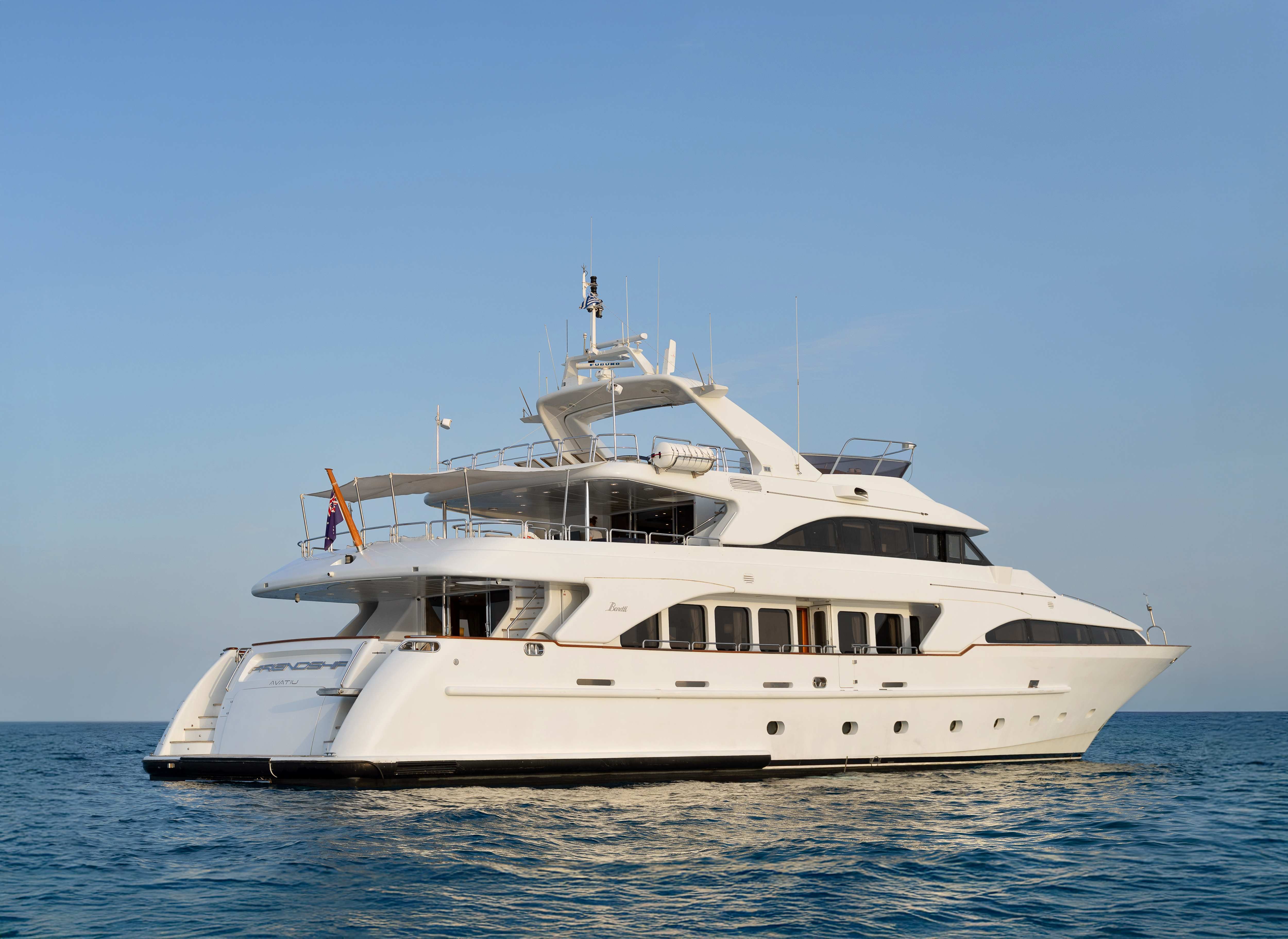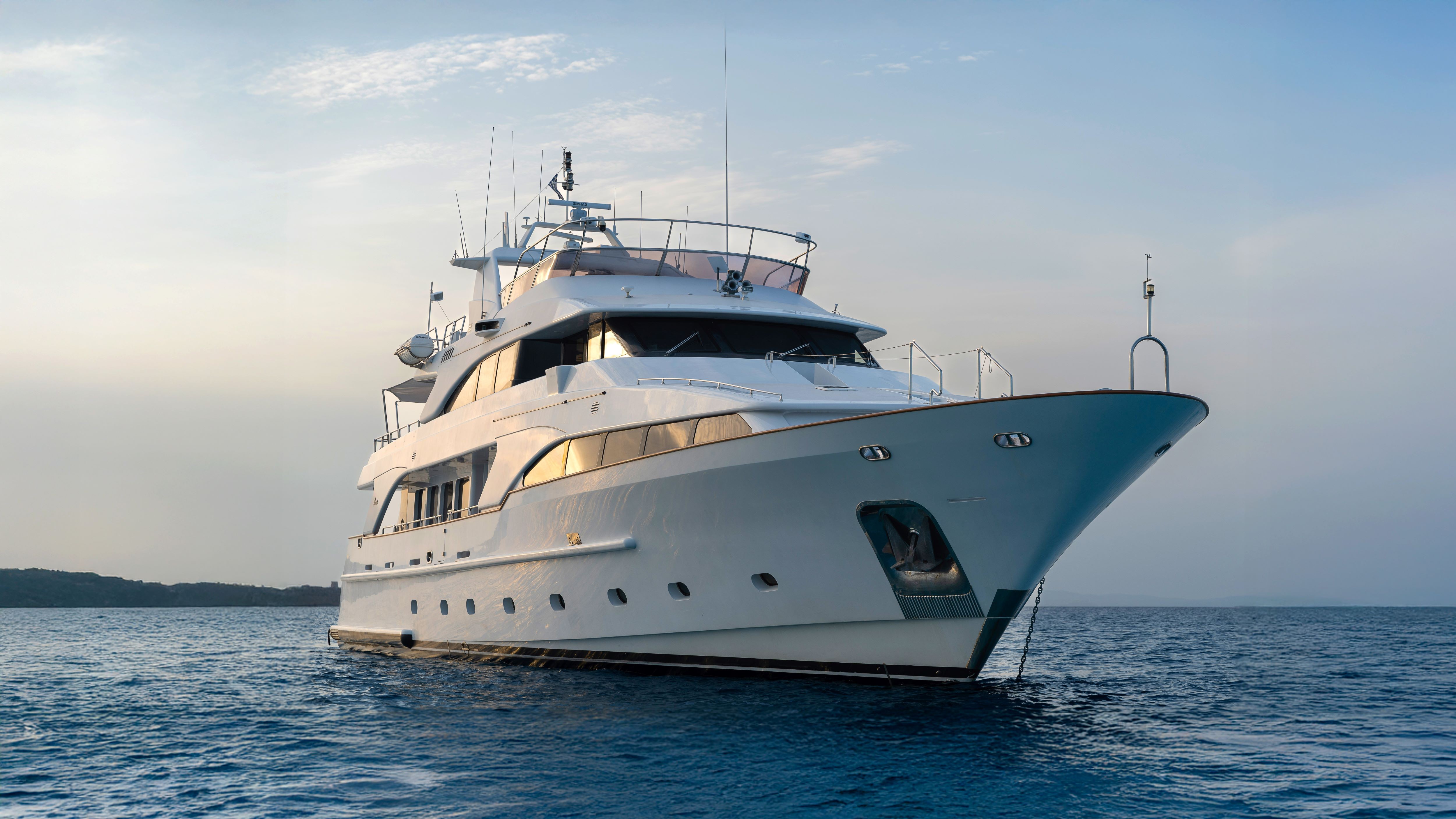 The Benetti Classic 115 is a 35-meter motor yacht known for its blend of Mediterranean style and luxurious comfort. It offers a spacious layout with elegant interiors, often accommodating up to 12 guests in 6 cabins. Key features include a sun deck, heated whirlpool, and a semi-enclosed lounge area, with a main deck featuring a large salon and dining room. The yacht is also known for its innovative stabilisers, ensuring a smooth ride.