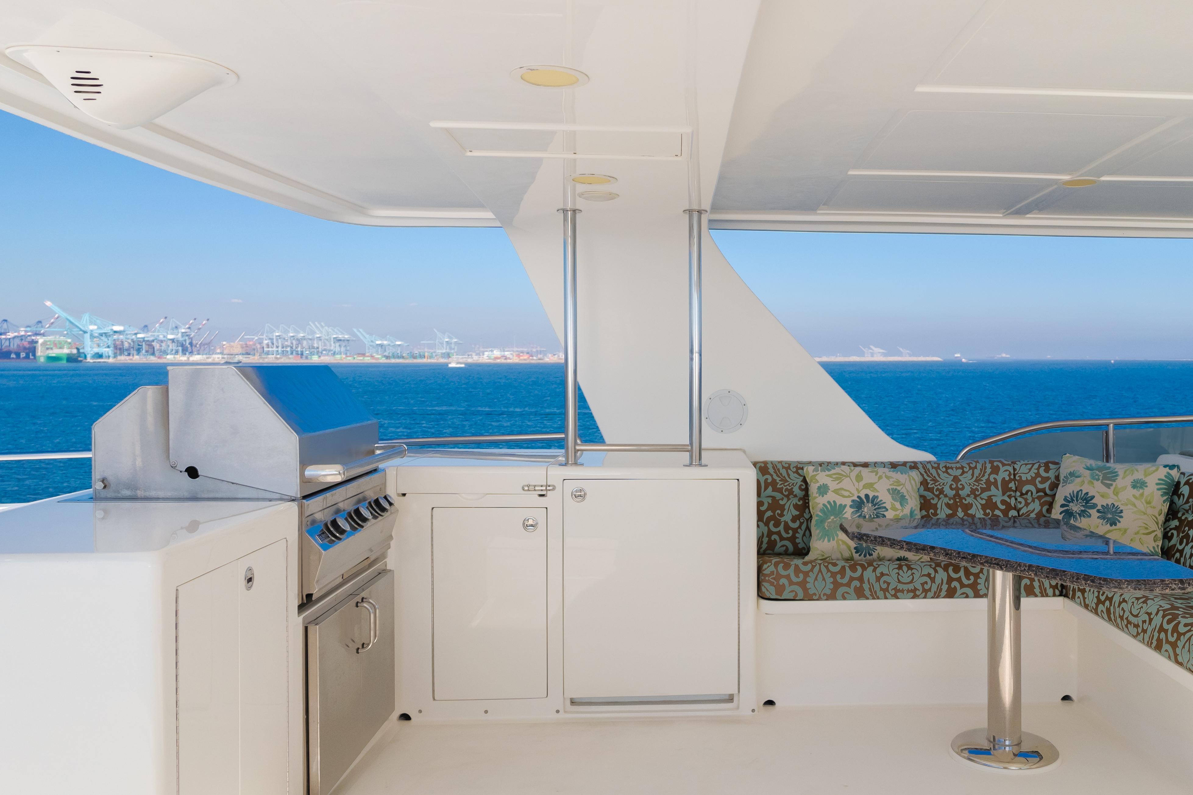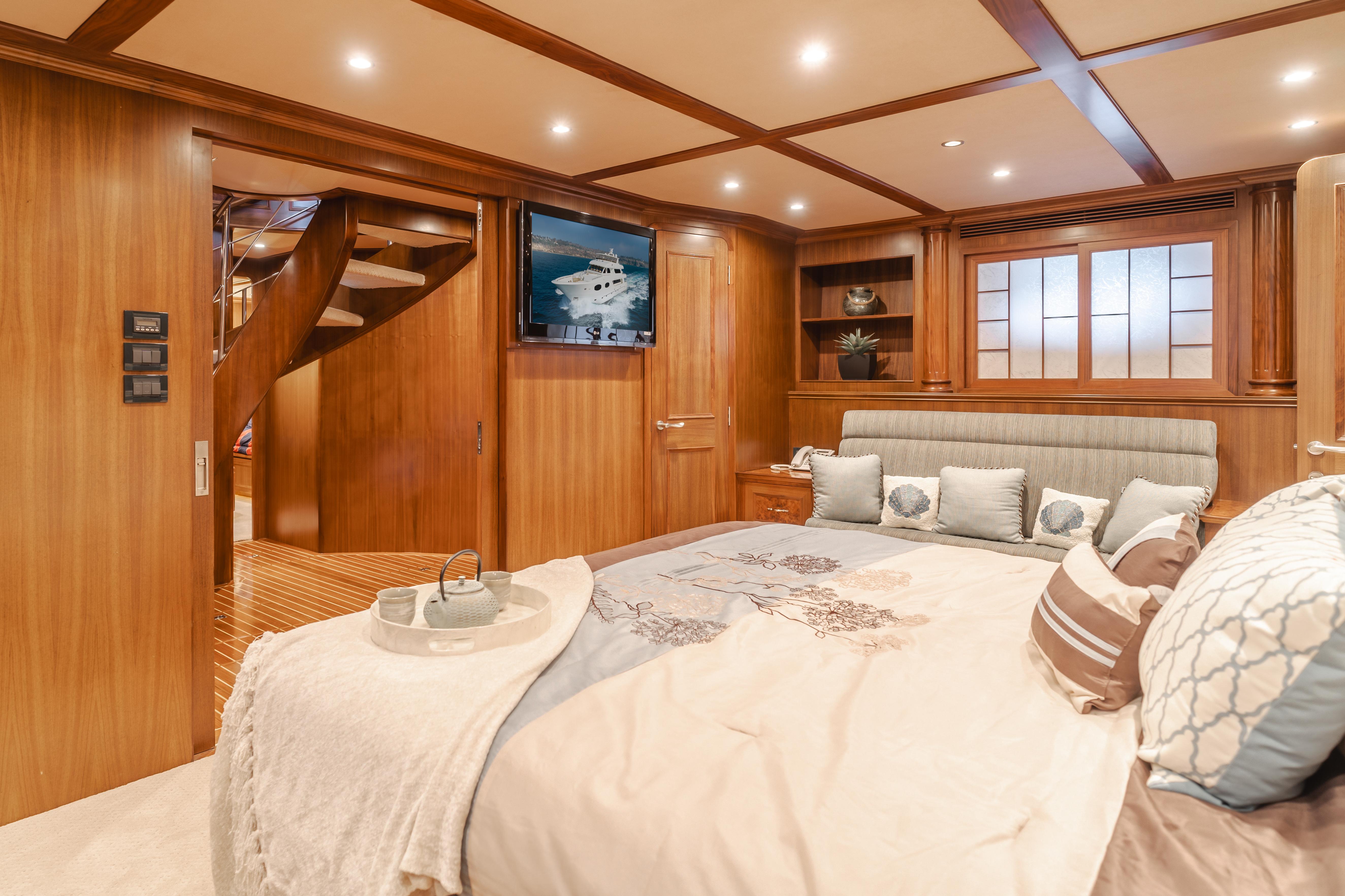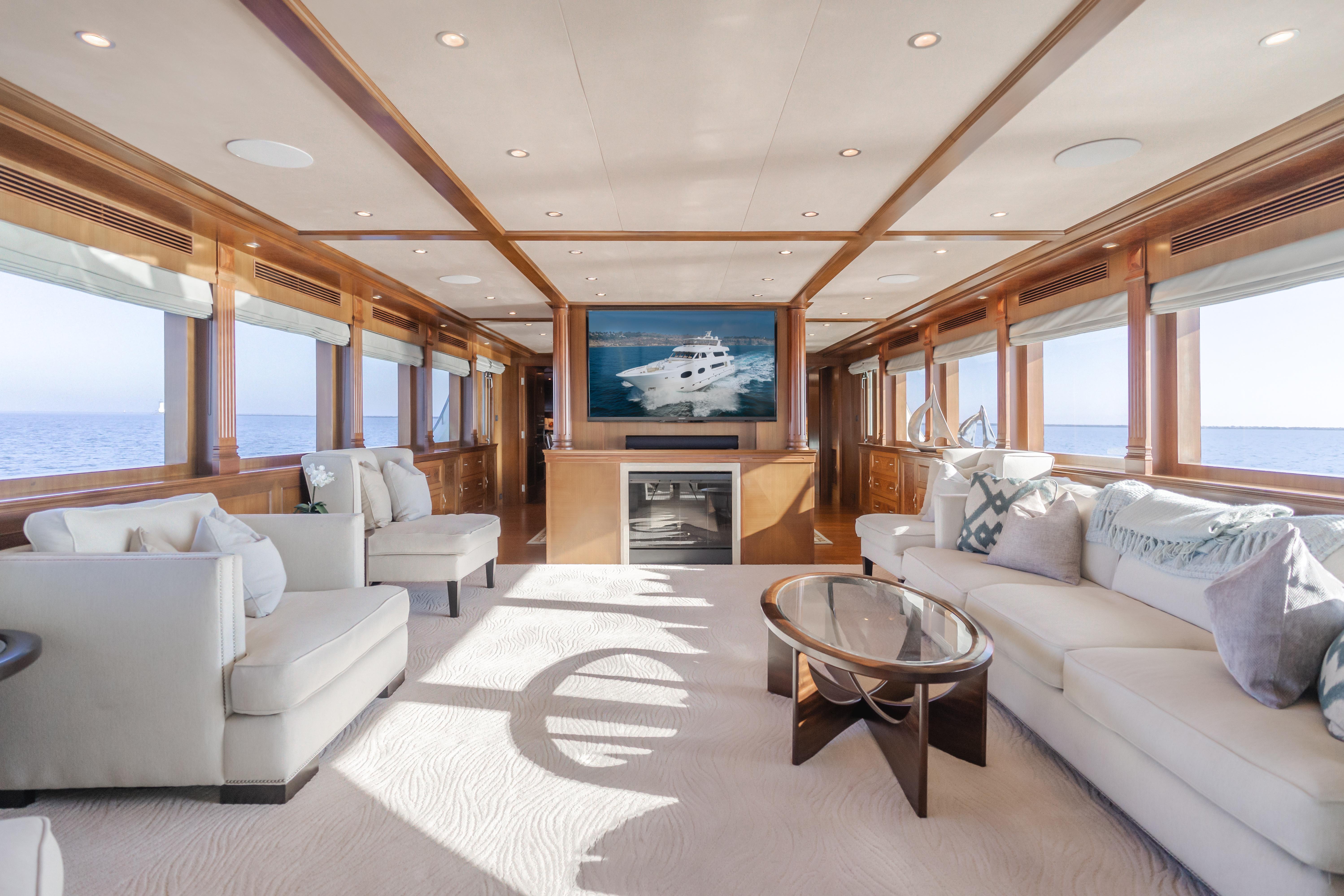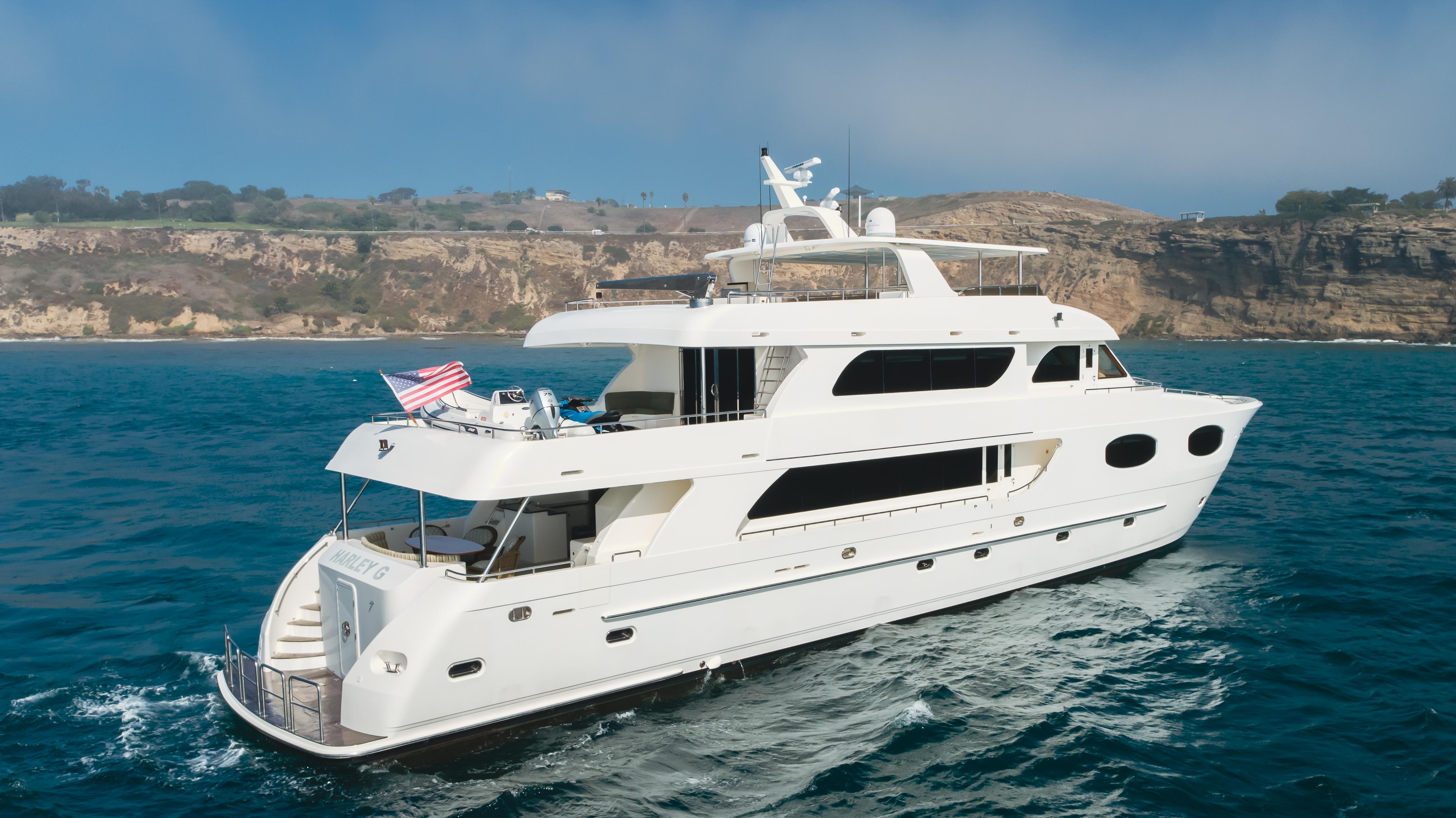 Constructed by Transworld Boat Building Company, the same yard that built many Grand Alaskan yachts. Harley G is lightly used and perfectly equipped for all your cruising and entertaining needs. Her 25' beam is immediately felt once aboard. The large aft deck features a day head, wet bar, tv and large dining table. The perfect spot to enjoy a meal while at your new anchorage for the day. The large salon features a cozy fire place to sit around while cruising to your next destination. Forward of the salon is the dining room and large galley. The galley is an absolute chefs dream, featuring 3 ovens and large built in fridge and freezer combination. Walking down the starboard side of the interior leads to the cinema, a rare feature on a 116' with a 75" TV.