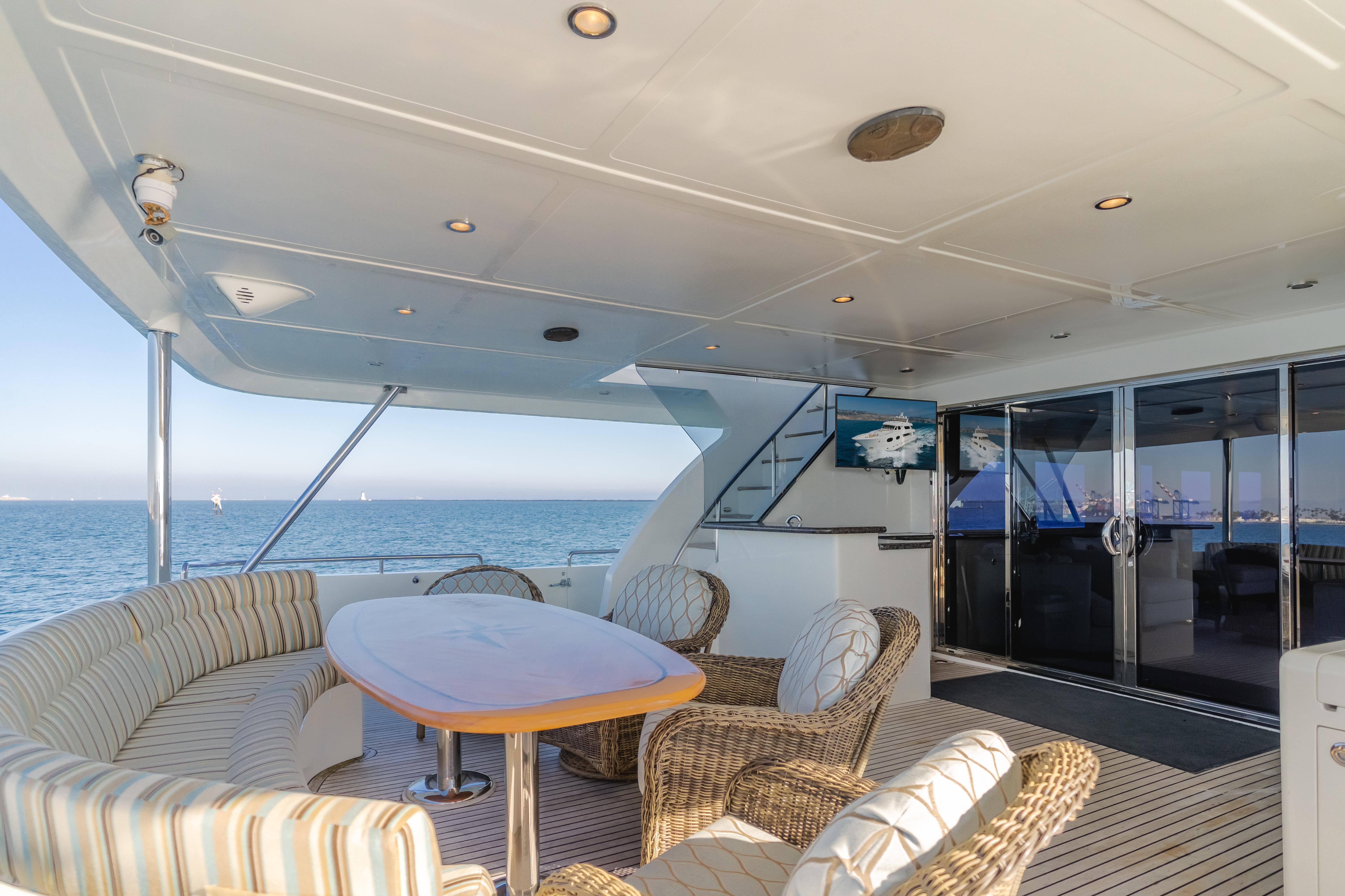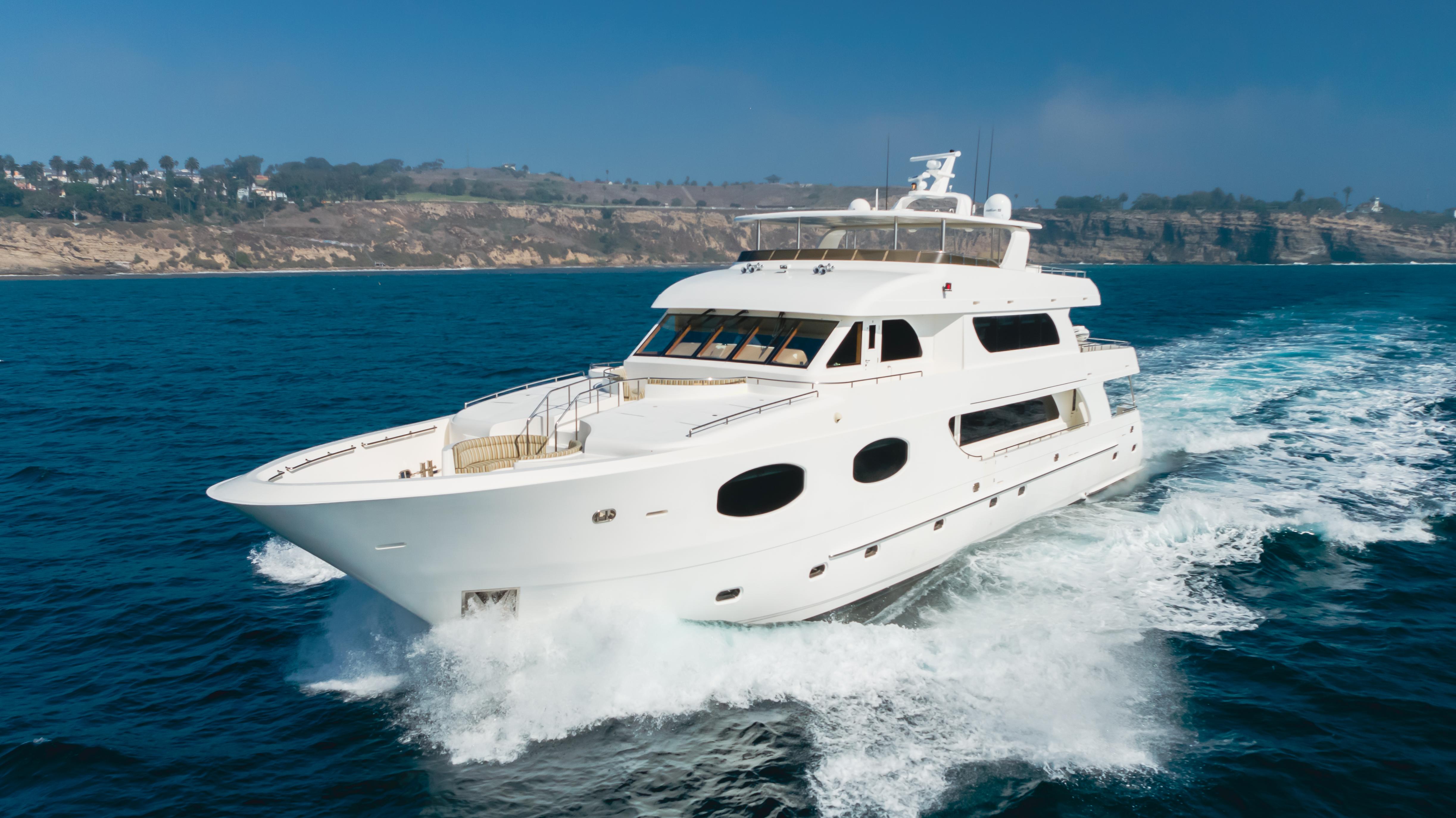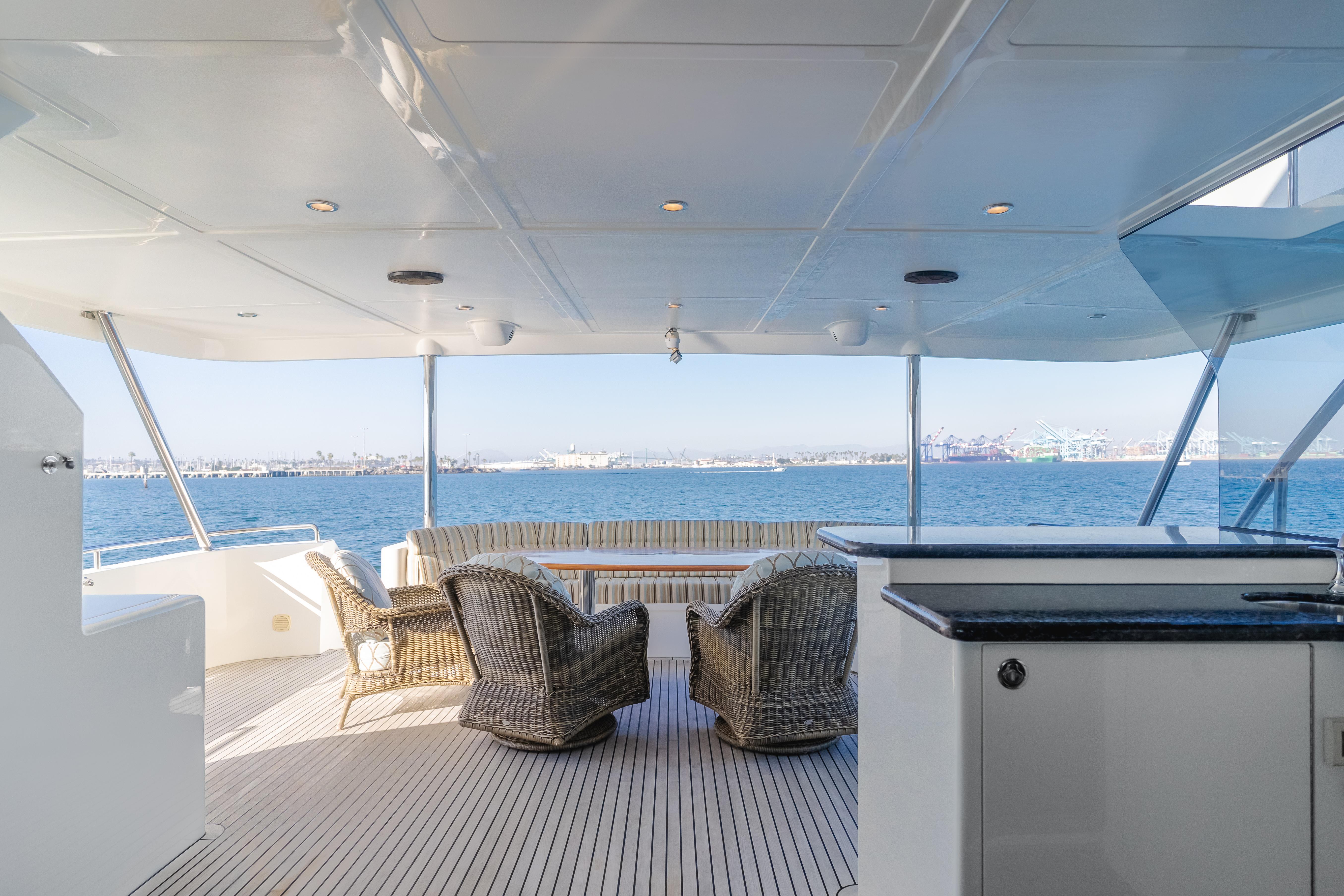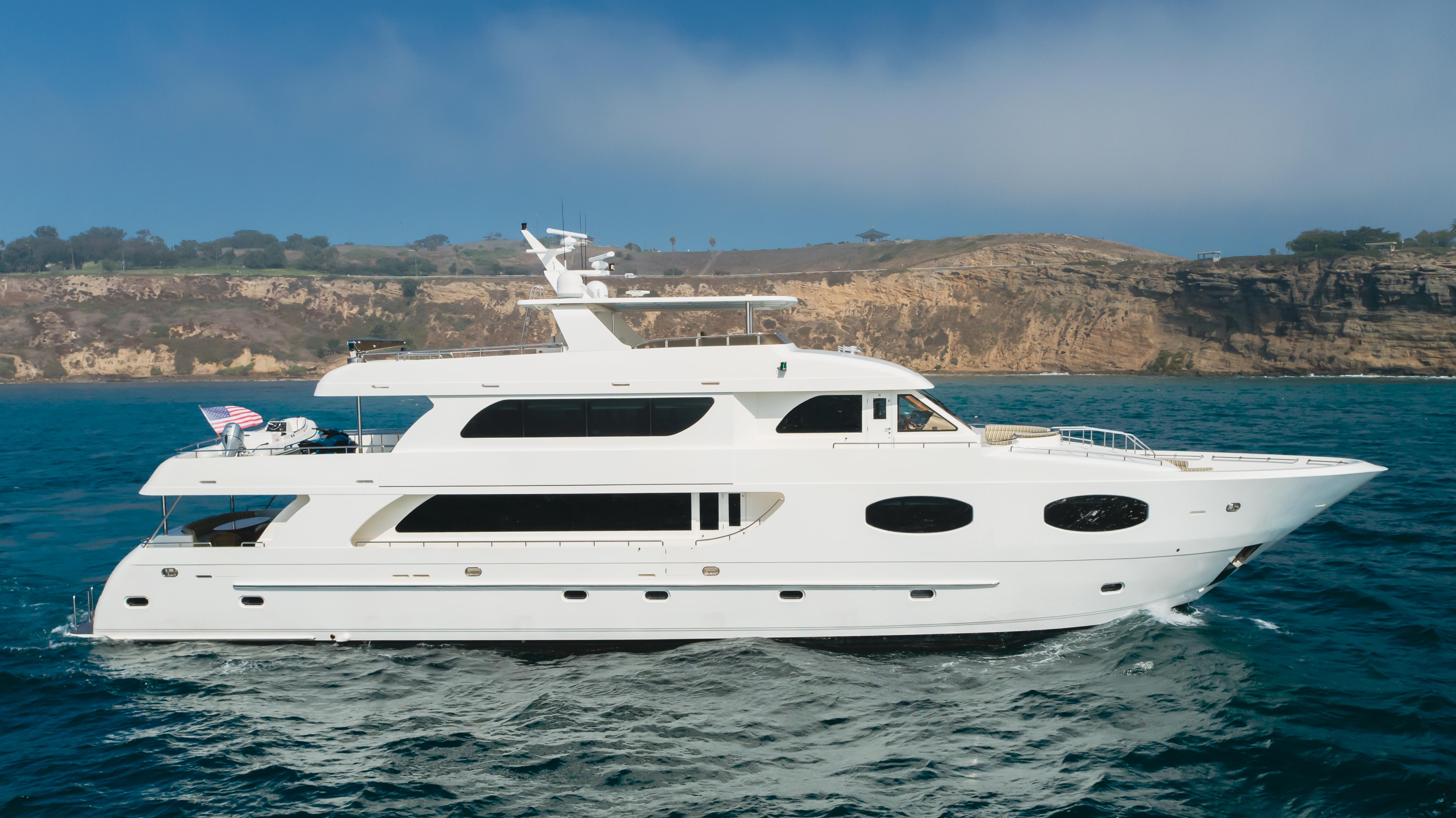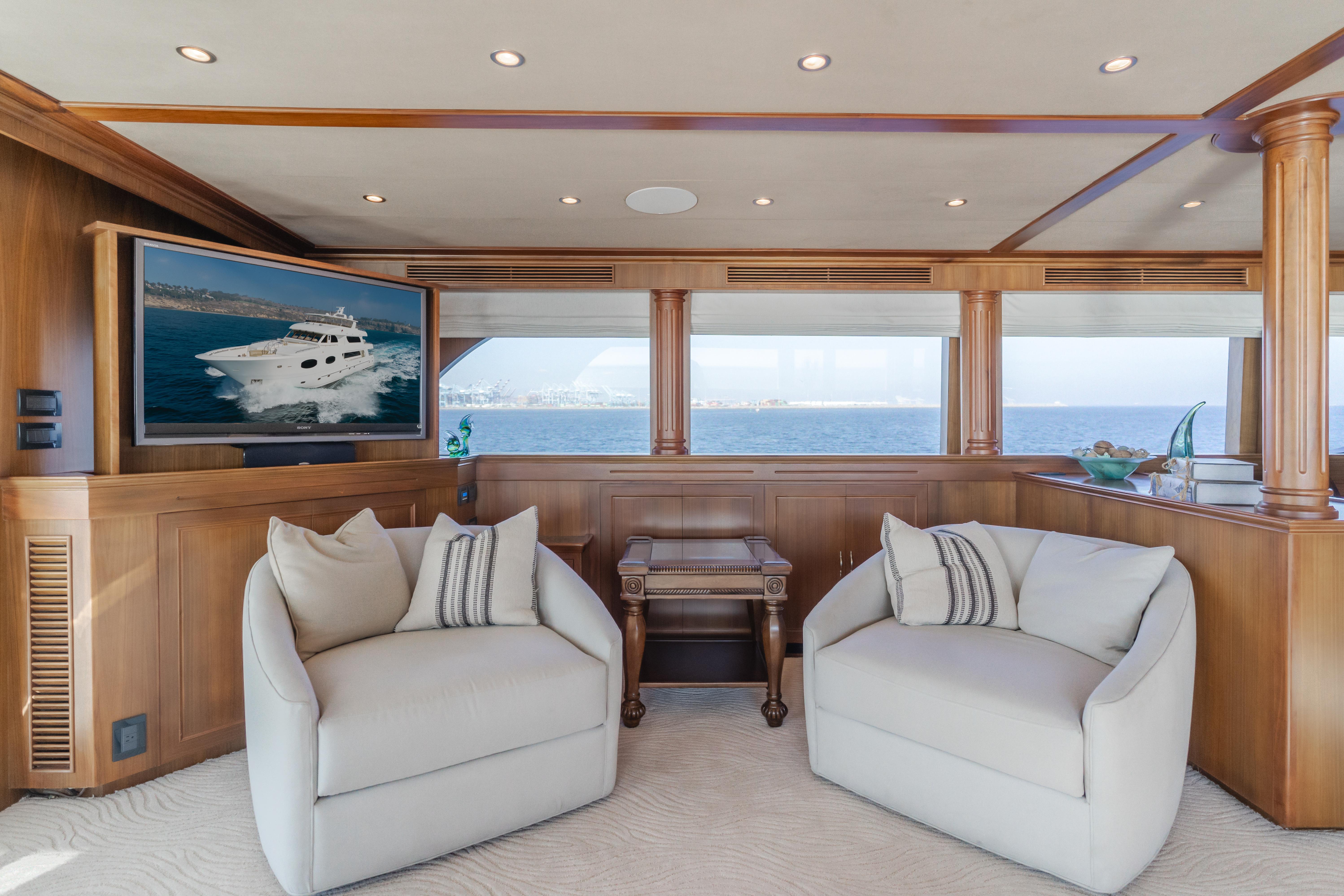 Constructed by Transworld Boat Building Company, the same yard that built many Grand Alaskan yachts. Harley G is lightly used and perfectly equipped for all your cruising and entertaining needs. Her 25' beam is immediately felt once aboard. The large aft deck features a day head, wet bar, tv and large dining table. The perfect spot to enjoy a meal while at your new anchorage for the day. The large salon features a cozy fire place to sit around while cruising to your next destination. Forward of the salon is the dining room and large galley. The galley is an absolute chefs dream, featuring 3 ovens and large built in fridge and freezer combination. Walking down the starboard side of the interior leads to the cinema, a rare feature on a 116' with a 75" TV.
