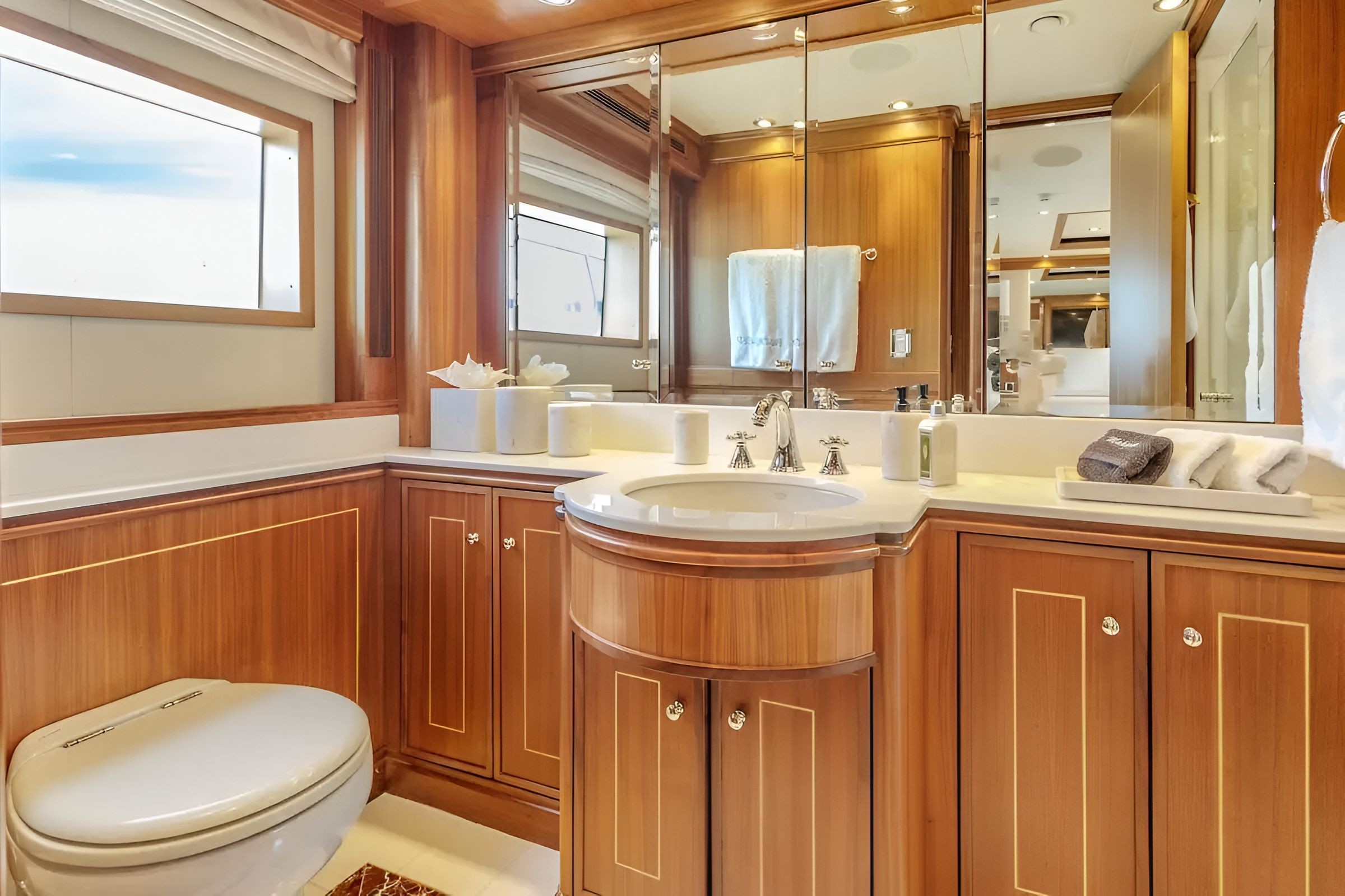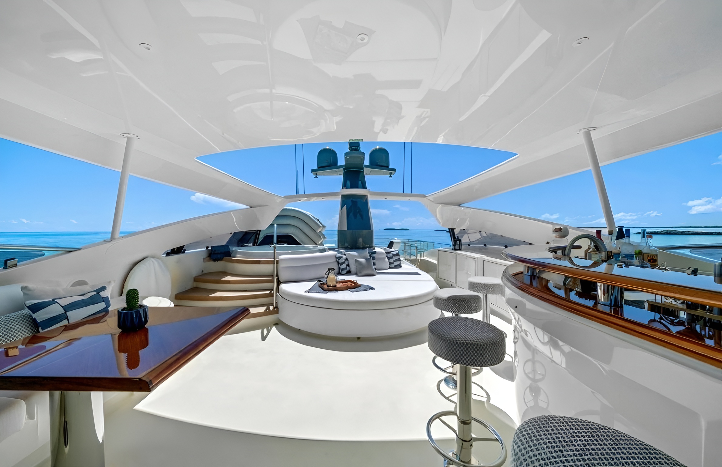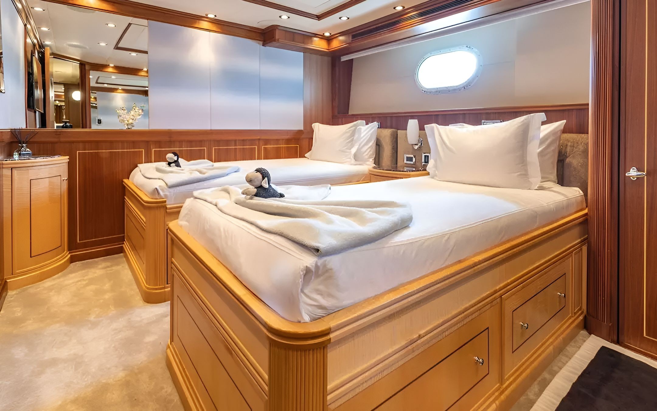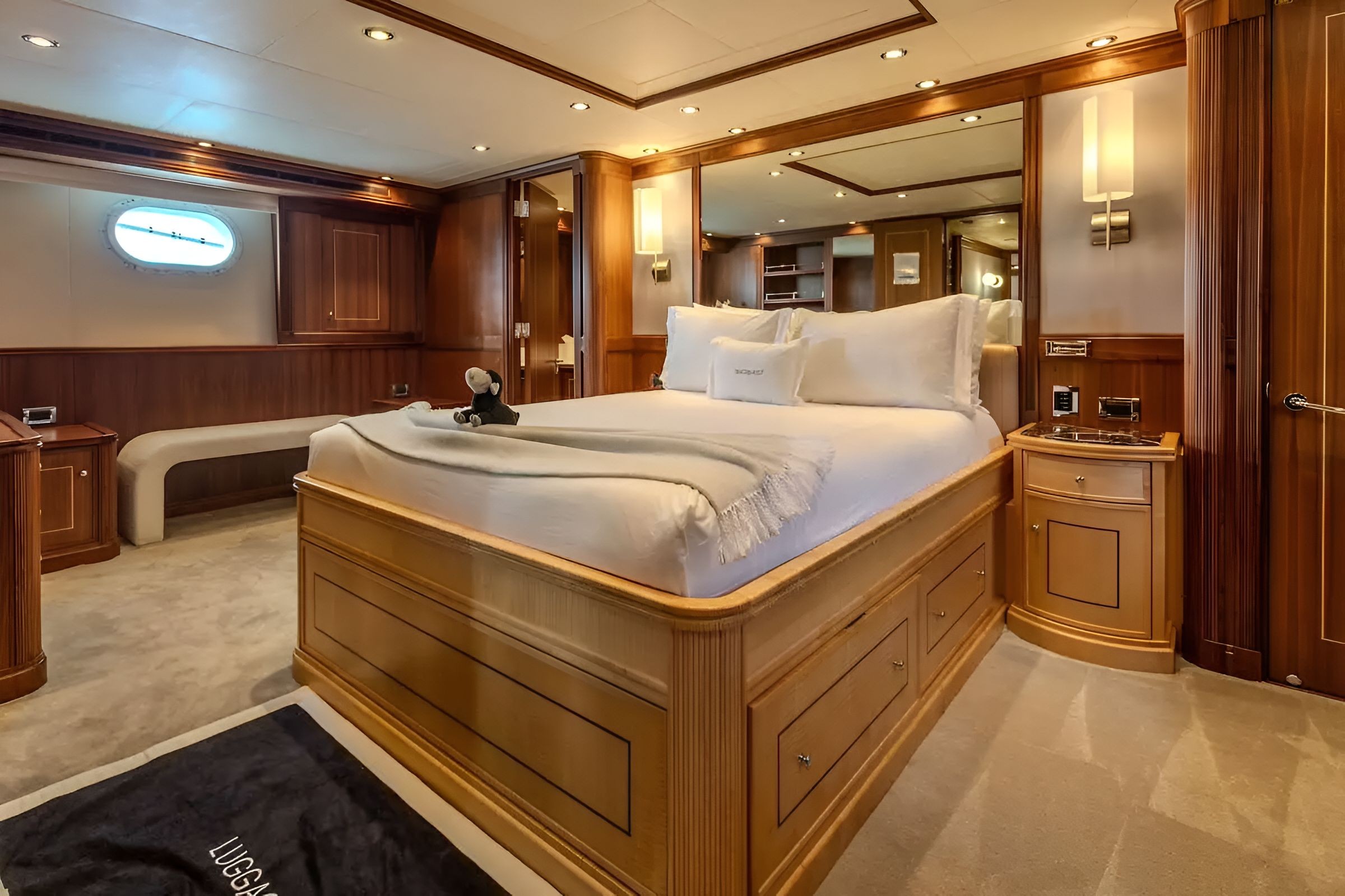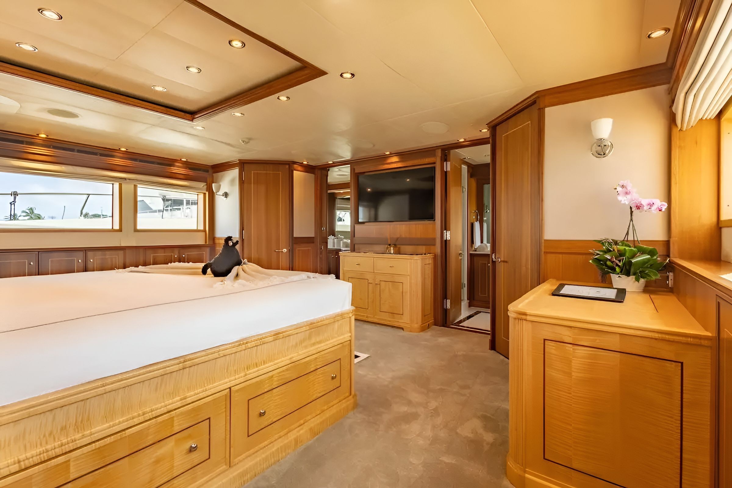 The 123’ (37.5m) Palmer Johnson motor yacht BLACKSHEEP combines striking design, speed, and comfort, making her a standout choice for luxury charters. Built by the renowned American shipyard Palmer Johnson, she showcases sleek lines, a sporty profile, and elegant interiors that reflect both performance and style. Her interiors are both modern and inviting, featuring spacious lounges, large windows for natural light, and elegant furnishings throughout. She accommodates up to 8 guests in 4 beautifully appointed staterooms, including a full-beam master suite, a VIP cabin, and two twin cabins. Up to 6 crew members ensure seamless service and an unforgettable charter experience. The exterior deck spaces are equally impressive, offering multiple areas for dining, lounging, and sunbathing. Guests can enjoy al fresco meals on the aft deck, relax on the expansive flybridge with sun pads, or dive into the ocean from the swim platform.