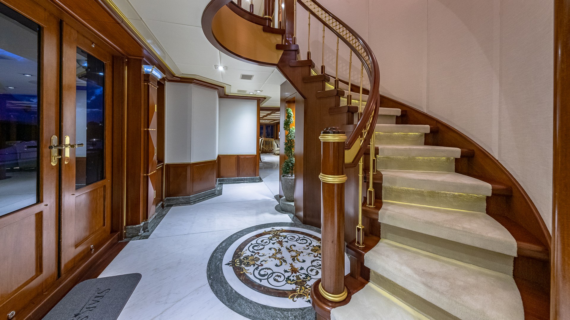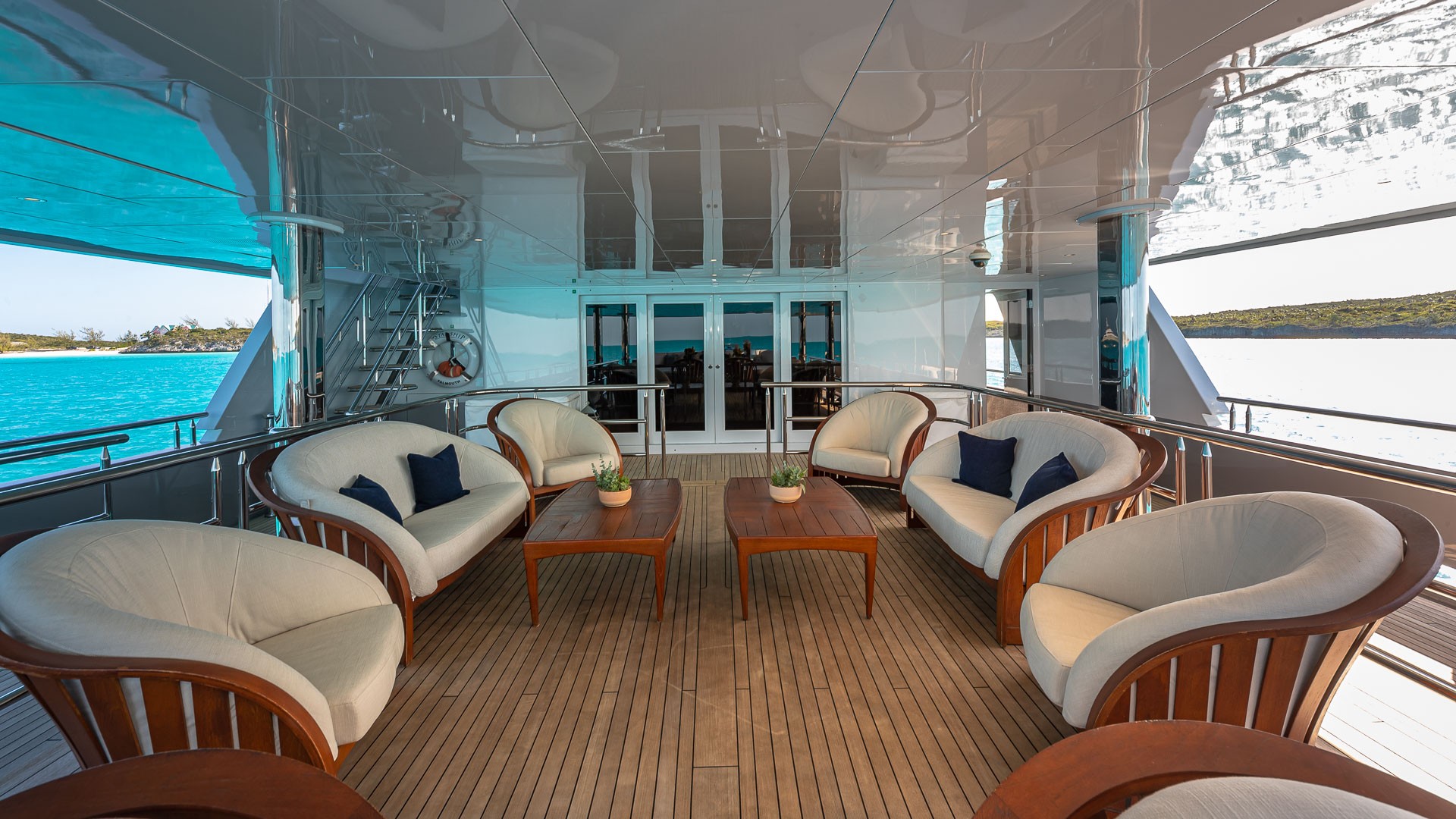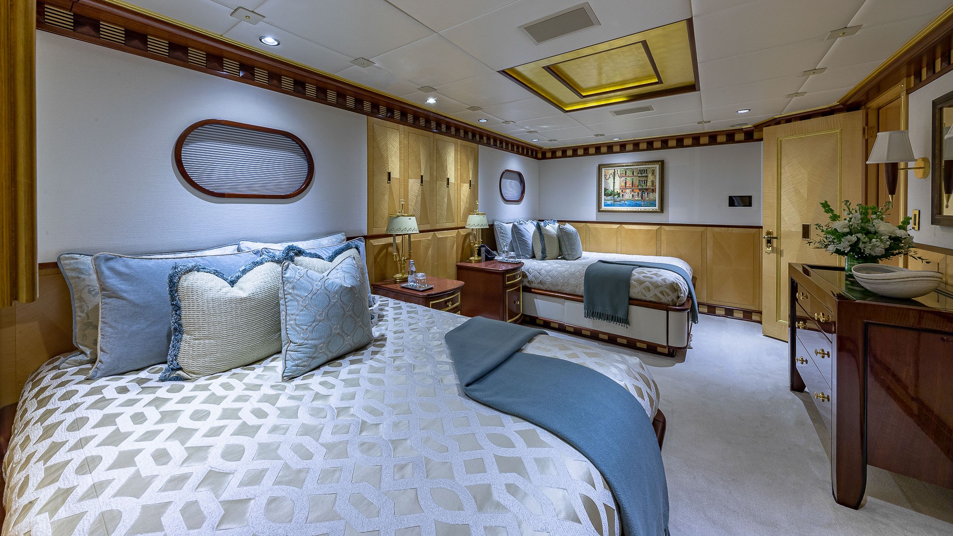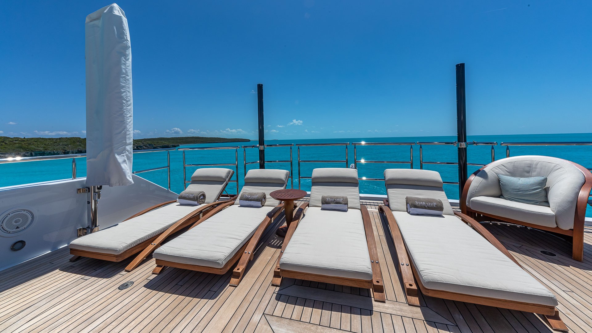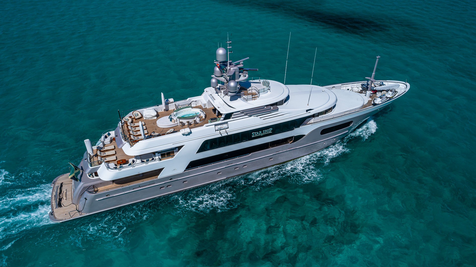 Motor yacht STARSHIP (formerly MY SEANNA) is a 185-foot luxury charter yacht launched in 2001 by Delta Marine and refitted in 2021. The refit included a brand-new Beach Club and Ocean Deck. The yacht’s luxurious interior was designed by Glade Johnson Design. The yacht’s interior living areas are classically-designed and offer comfort and beauty for guests. She features a spacious salon and a formal dining area, perfect for entertaining. The woodwork is beautifully finished and the décor is timeless. Her wide windows allow for excellent views as well as plenty of natural lighting. STARSHIP 185 has equally impressive exterior spaces. Her multitude of outdoor living areas allow charter guests the ideal place for relaxation or socializing. The yacht has an amazing dance floor, a gym, ample seating, bars with seating, and an on-deck Jacuzzi.