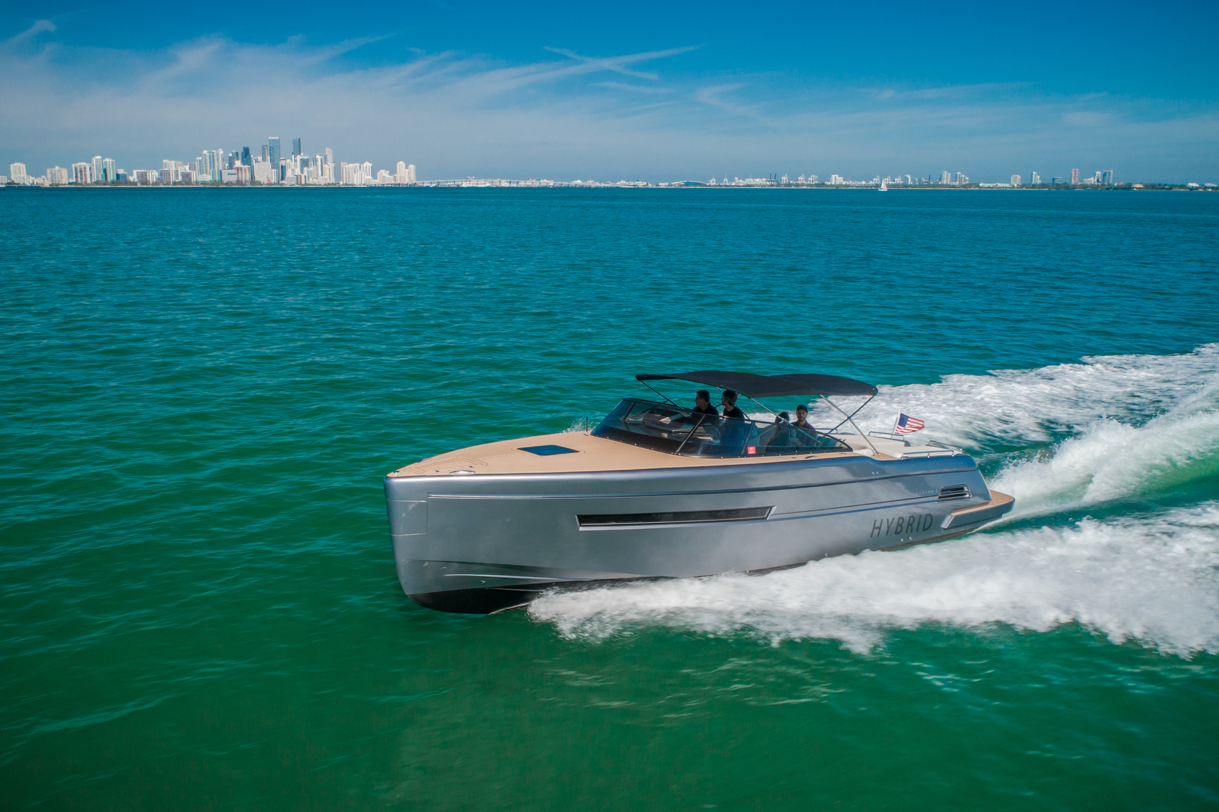 CANARD Yachts eMotion 36 is a modern Hybrid style vessel with diesel and electric motor. She has a sleek design that makes it an attractive vessel that turns heads wherever you go. The Exterior layout has a welcoming sunbed with swim platform to enjoy the back deck area.