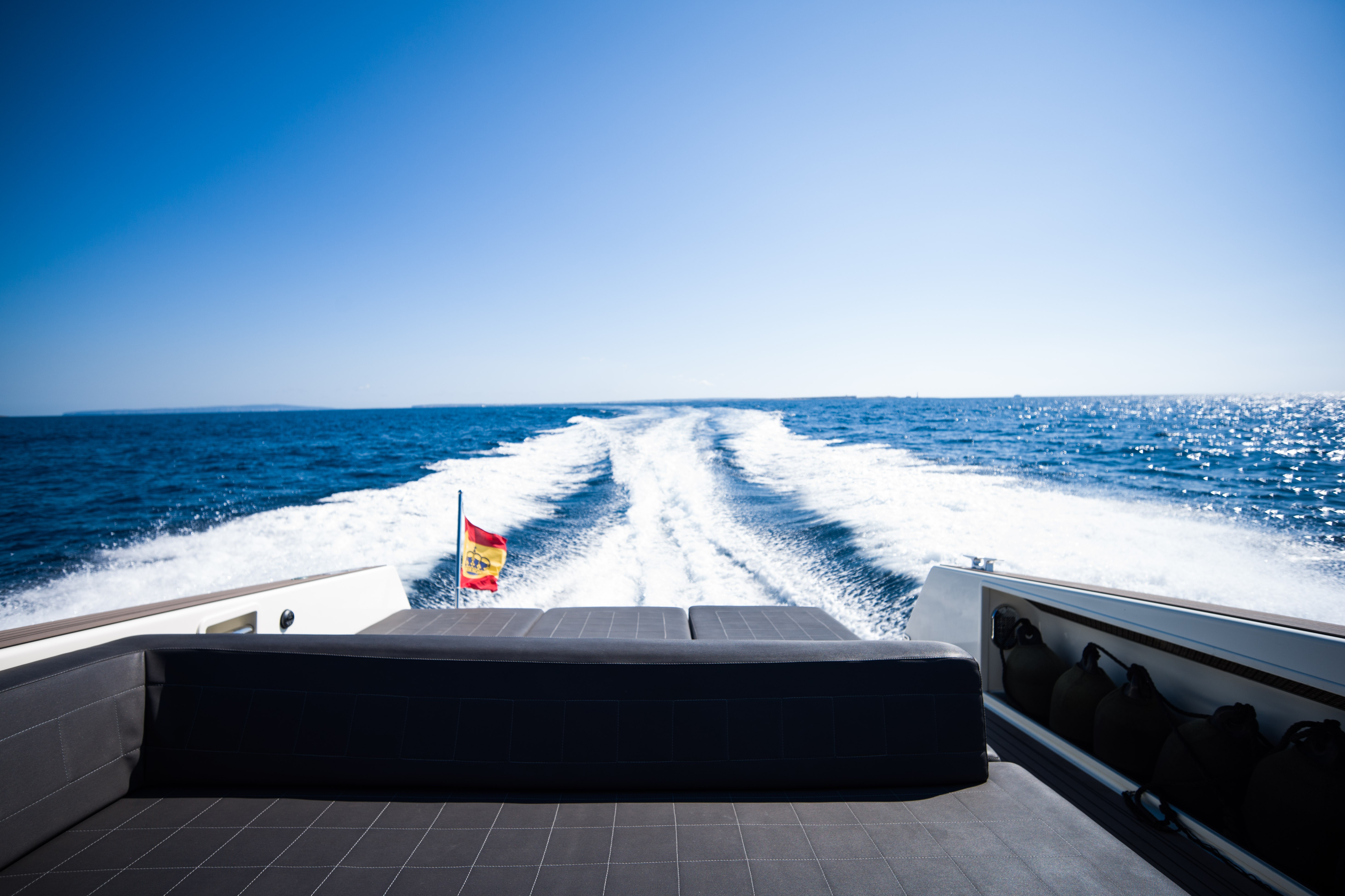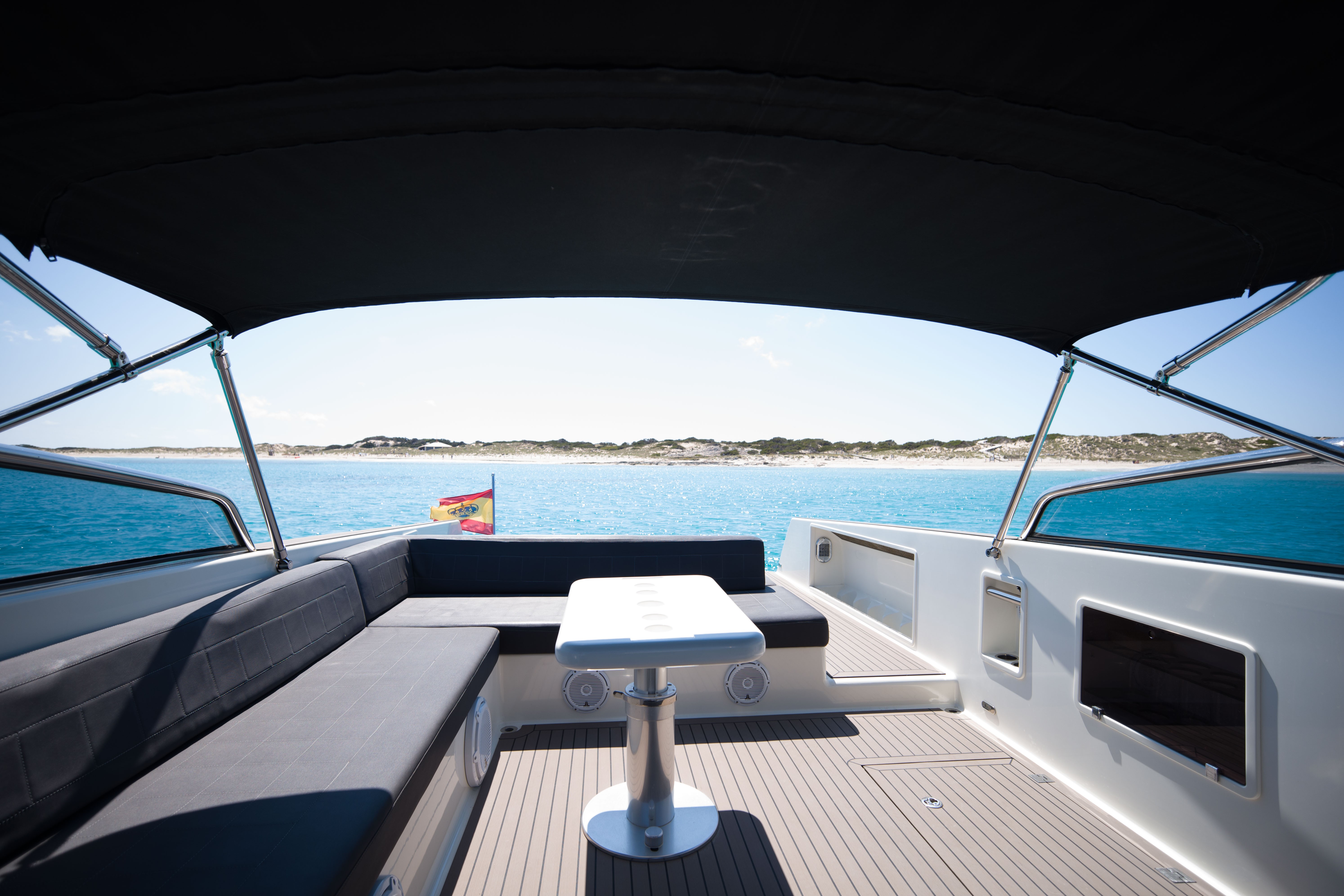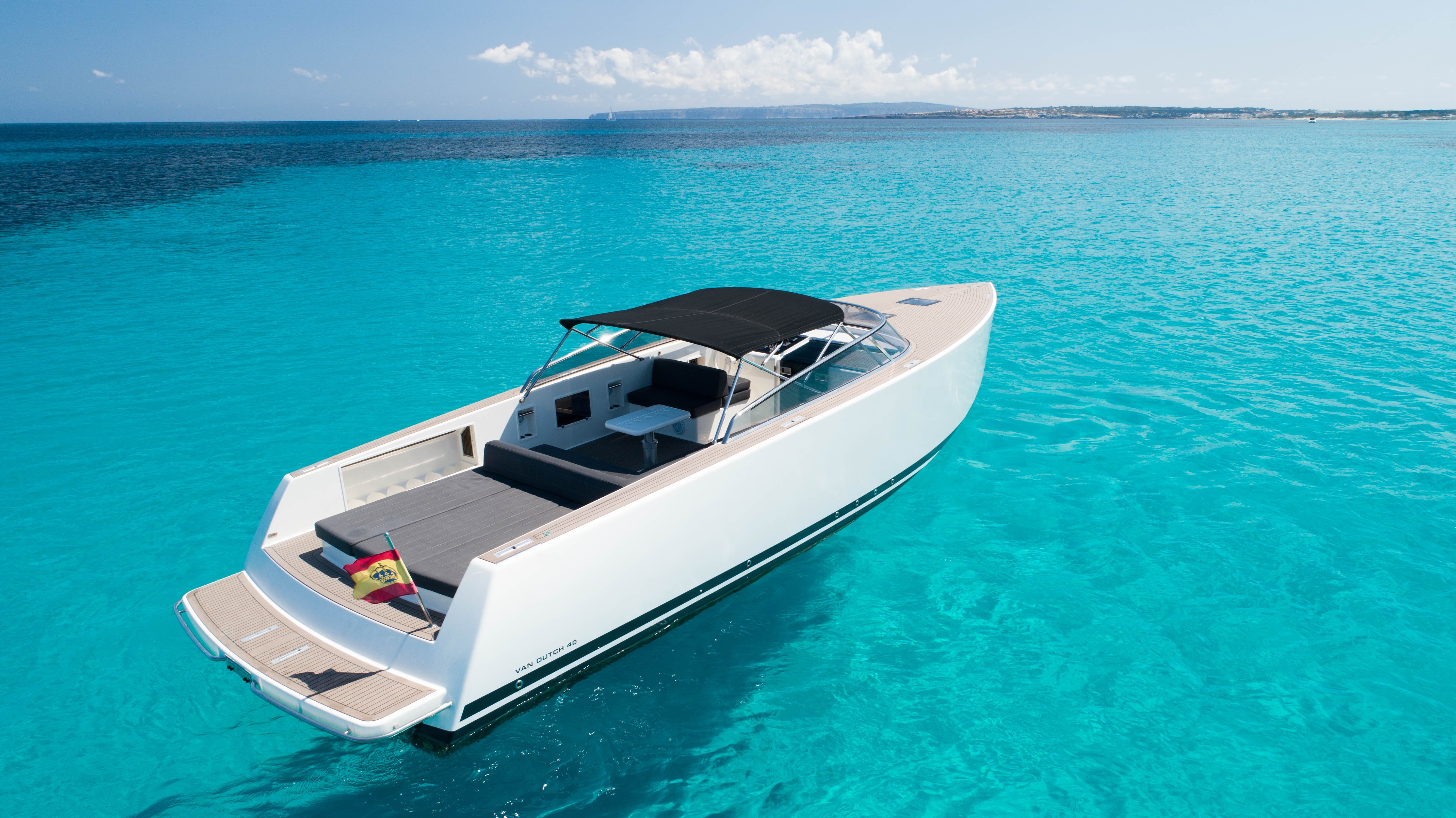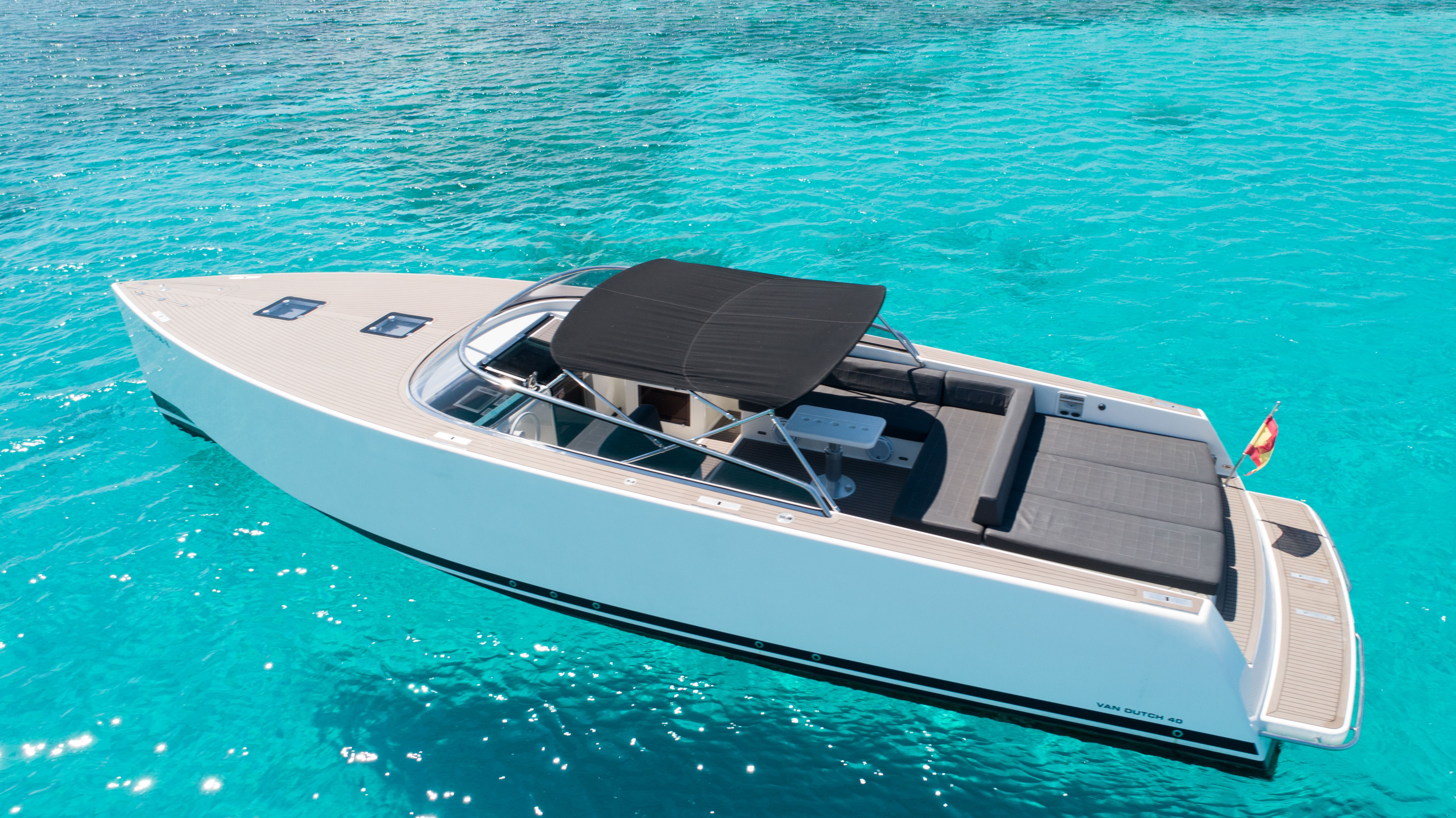 The VanDutch 40 “Smart Ass” stands out with its clean, minimalist lines and elegant aesthetic, frequently described as a modern design classic. It features generous sunbathing areas both at the bow and stern, a shaded cockpit, and an intelligently laid‑out open deck for ultimate relaxation and socializing. The VanDutch 40 “Smart Ass” is a prime choice for charters in Ibiza and surrounding areas a fusion of elegant design, strong performance, and thoughtful amenities. Whether you're lounging in the sun, cruising to a coastal hotspot, or enjoying drinks onboard, this yacht delivers a premium, stylish experience tailored for fun and comfort