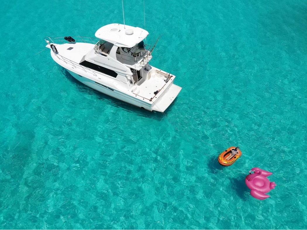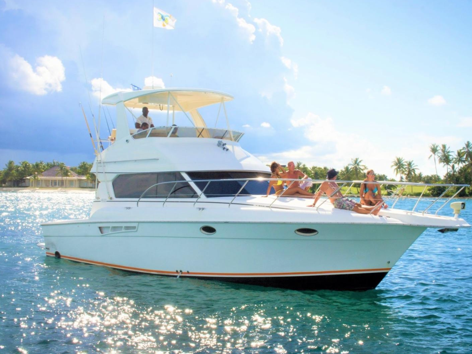 A 42' Silverton yacht available in Nassau, Bahamas, is a motor yacht, often a Convertible model, designed for cruising and fishing, typically featuring two staterooms, a comfortable flybridge, a fishing cockpit, and enough space to accommodate up to 12 guests for day charters or four guests overnight. These yachts offer amenities like a full galley, head with a shower, and options for water sports such as snorkeling and diving, providing a flexible and luxurious experience for exploring the waters of the Bahamas.