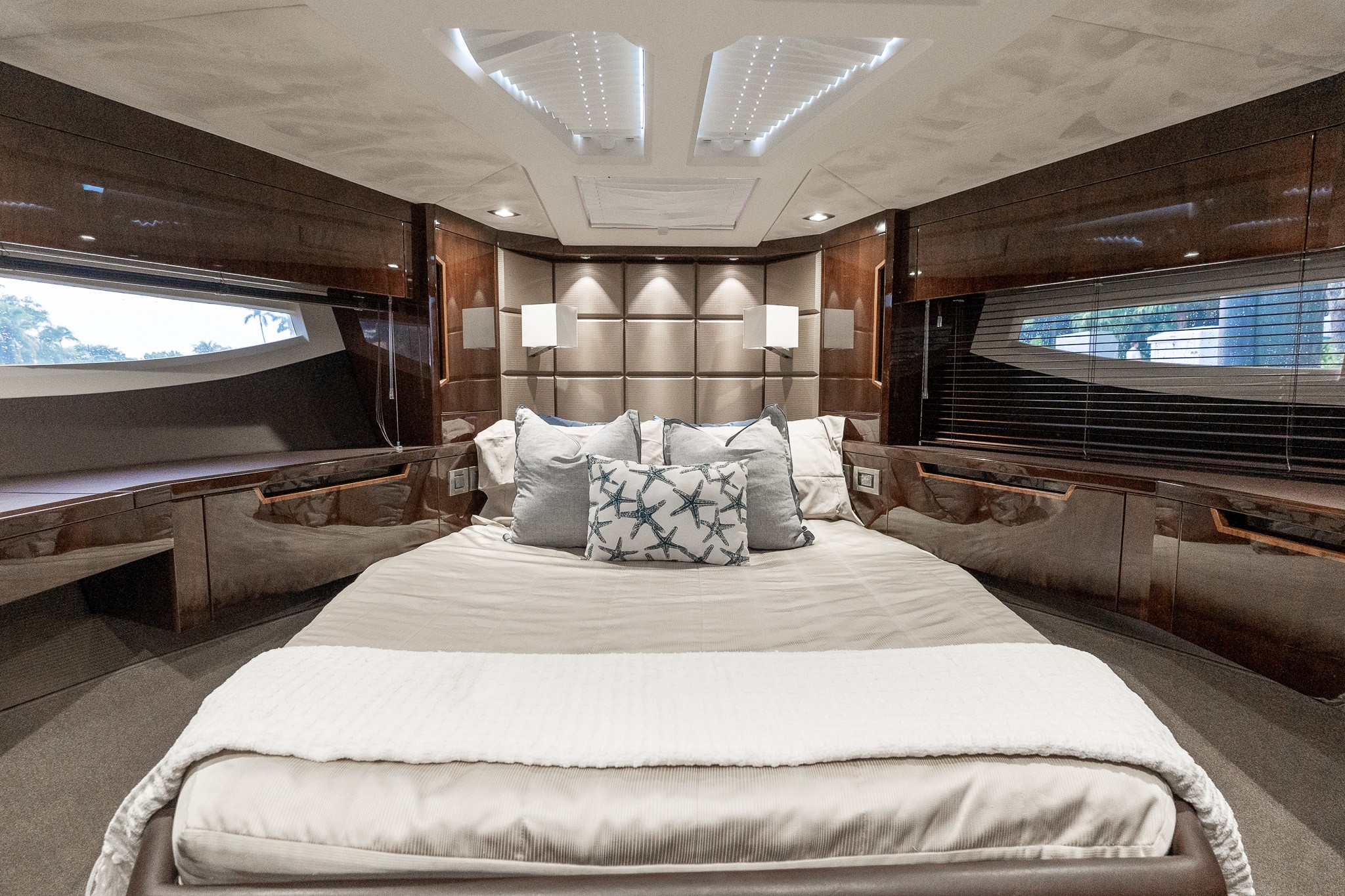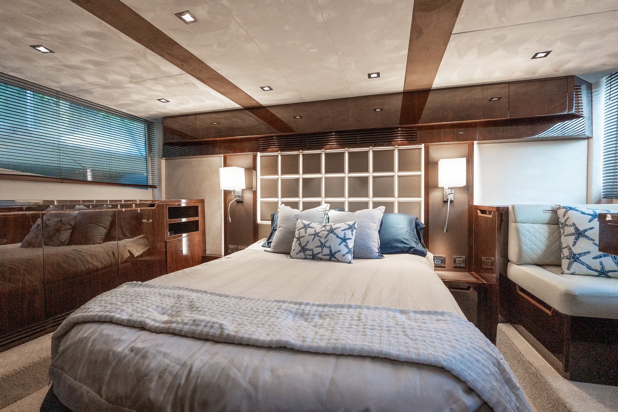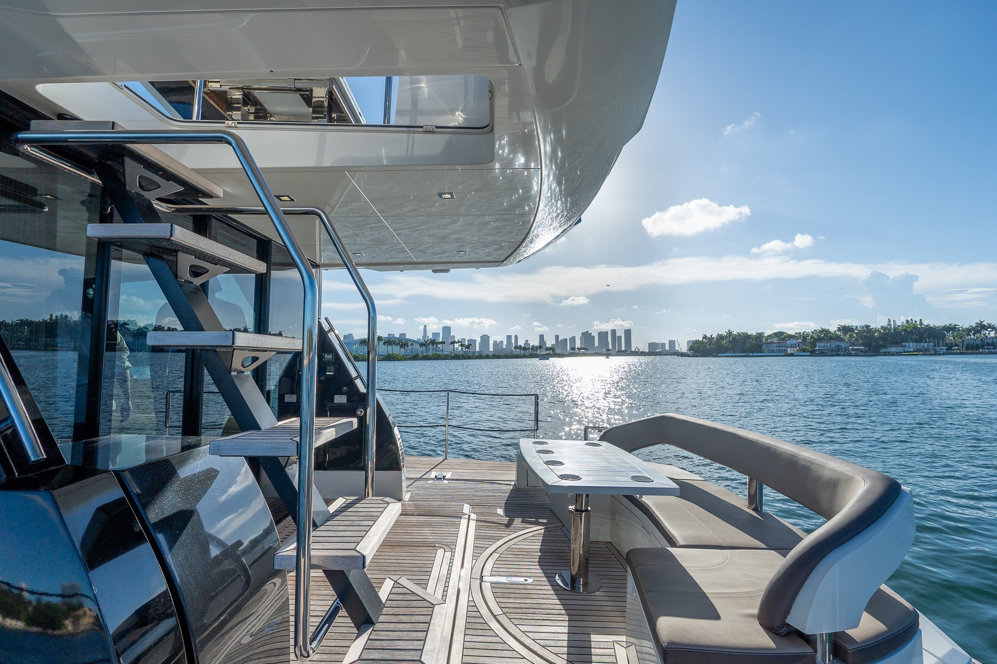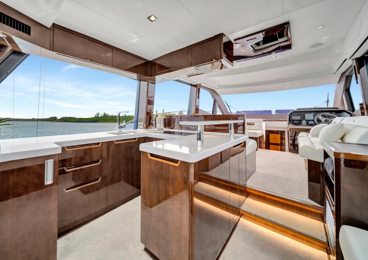 The Galeon 500 Fly is a luxurious, mid-sized motor yacht known for its innovative design and impressive versatility. It features a dynamic exterior with large windows and sleek lines. One of its standout features is the "beach mode," where fold-out balconies on both sides expand the deck space, creating a unique open-air experience. The interior is equally luxurious, with high-quality finishes, spacious living areas, and state-of-the-art technology. The flybridge offers additional seating and entertainment space, making it perfect for socializing and enjoying panoramic views. Ideal for both long cruises and day trips, the Galeon 500 Fly combines style, comfort, and performance.