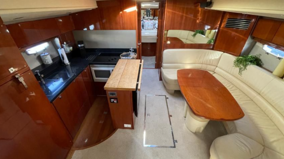 The Odyssea features plenty of outdoor space including a swim platform, two rear facing day chairs, shaded dining area with bar and grill as well as a large sun pad on the bow. Below deck there are 3 staterooms and 2 restrooms as well as a full kitchen and dining area.