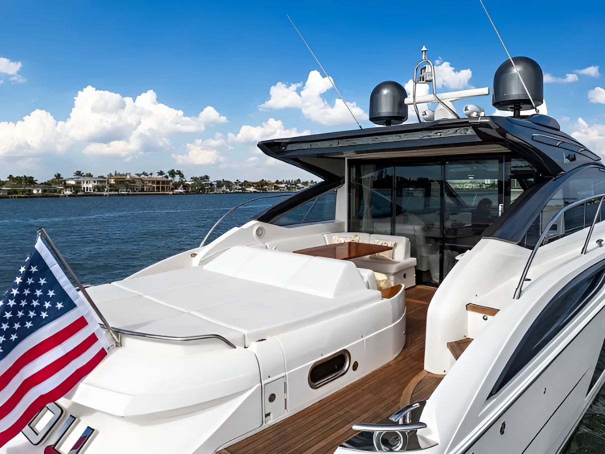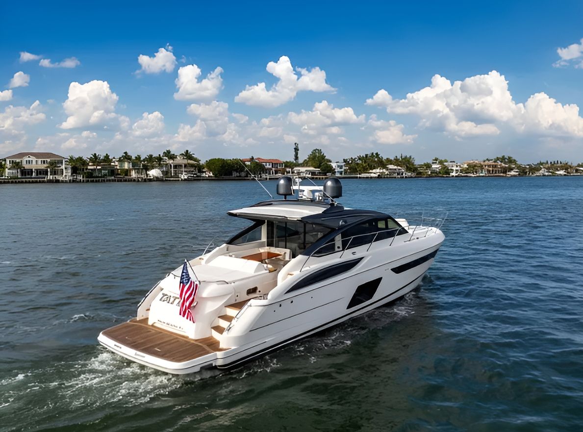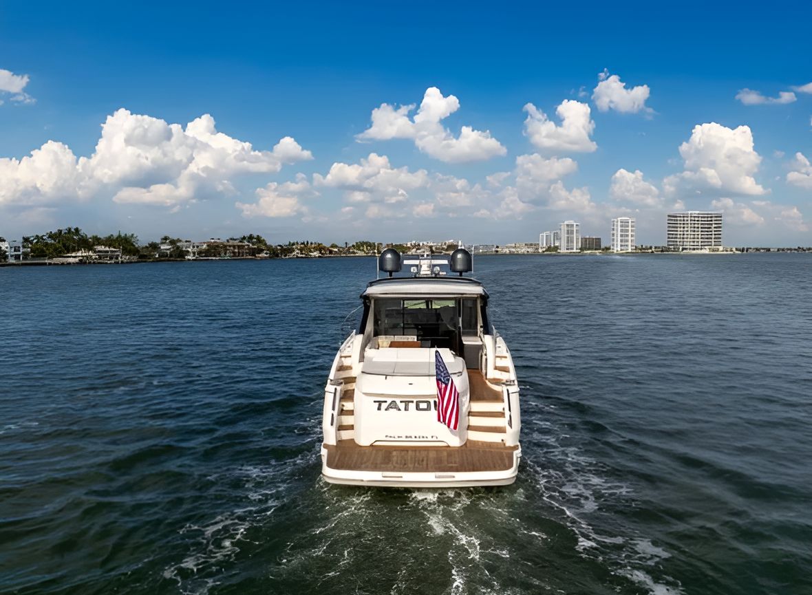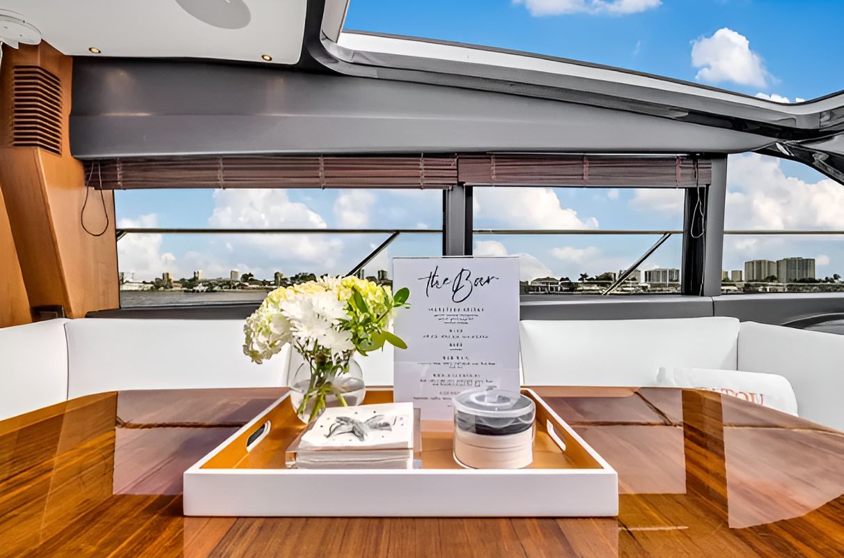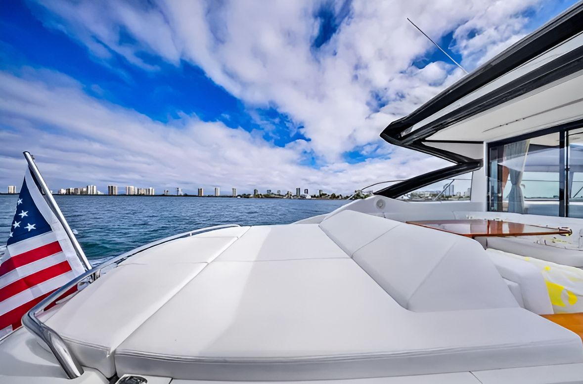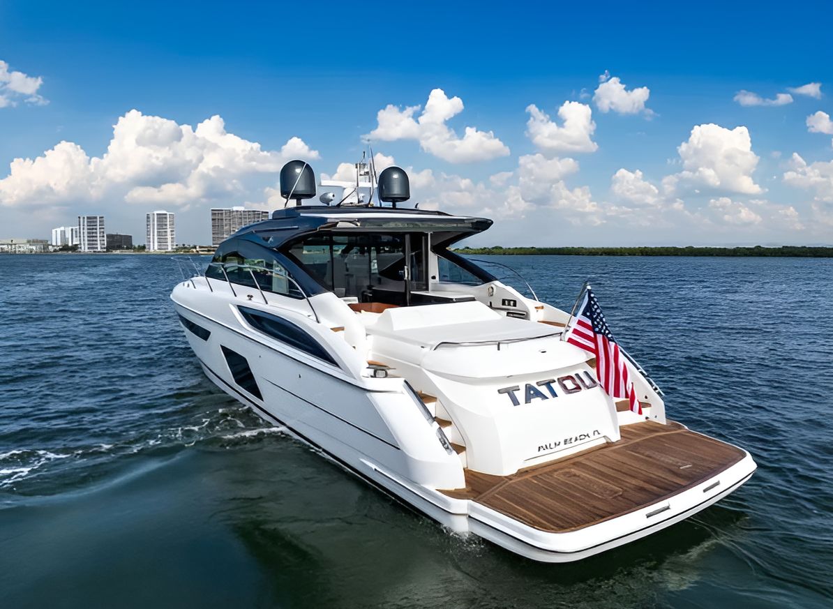 The V58 showcases dynamic exterior styling as well as offering the high performance synonymous with all V Class sports yachts. Fitted with twin Volvo D13-900 engines, the V58 is capable of achieving speeds of up to 37 knots. The main deck saloon comes complete with a generous U-shaped sofa around a dining table with a sideboard unit with glass and bottle storage and refrigerator opposite as well as a 46″ LED TV on an electric raise/lower mechanism. Below decks her large hull windows let light pour into the beautifully crafted lower accommodation.