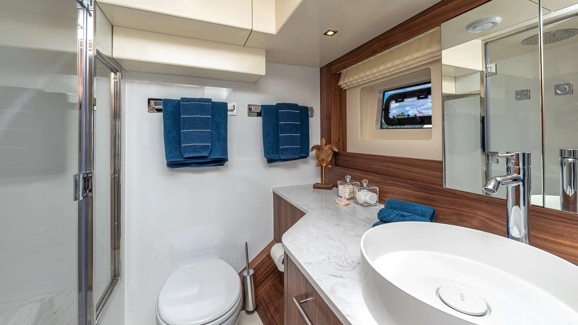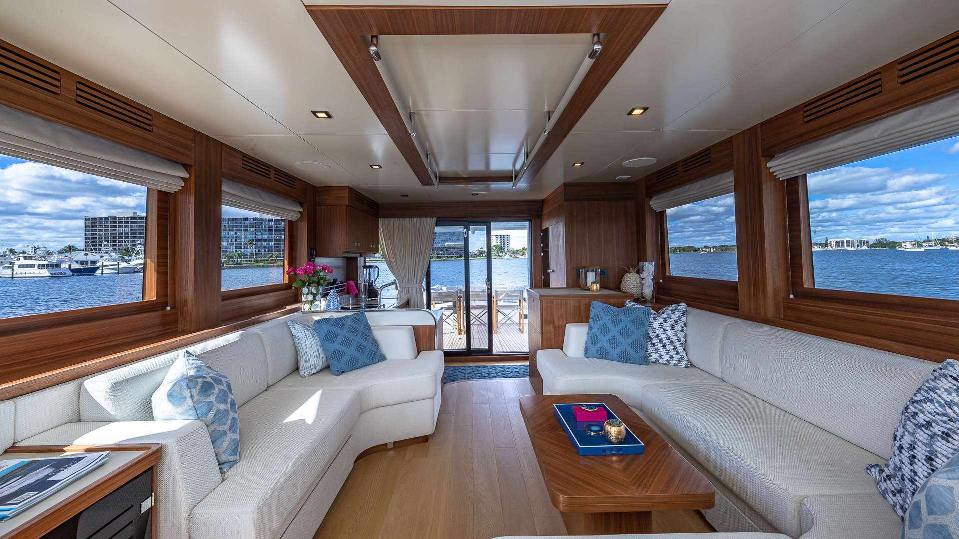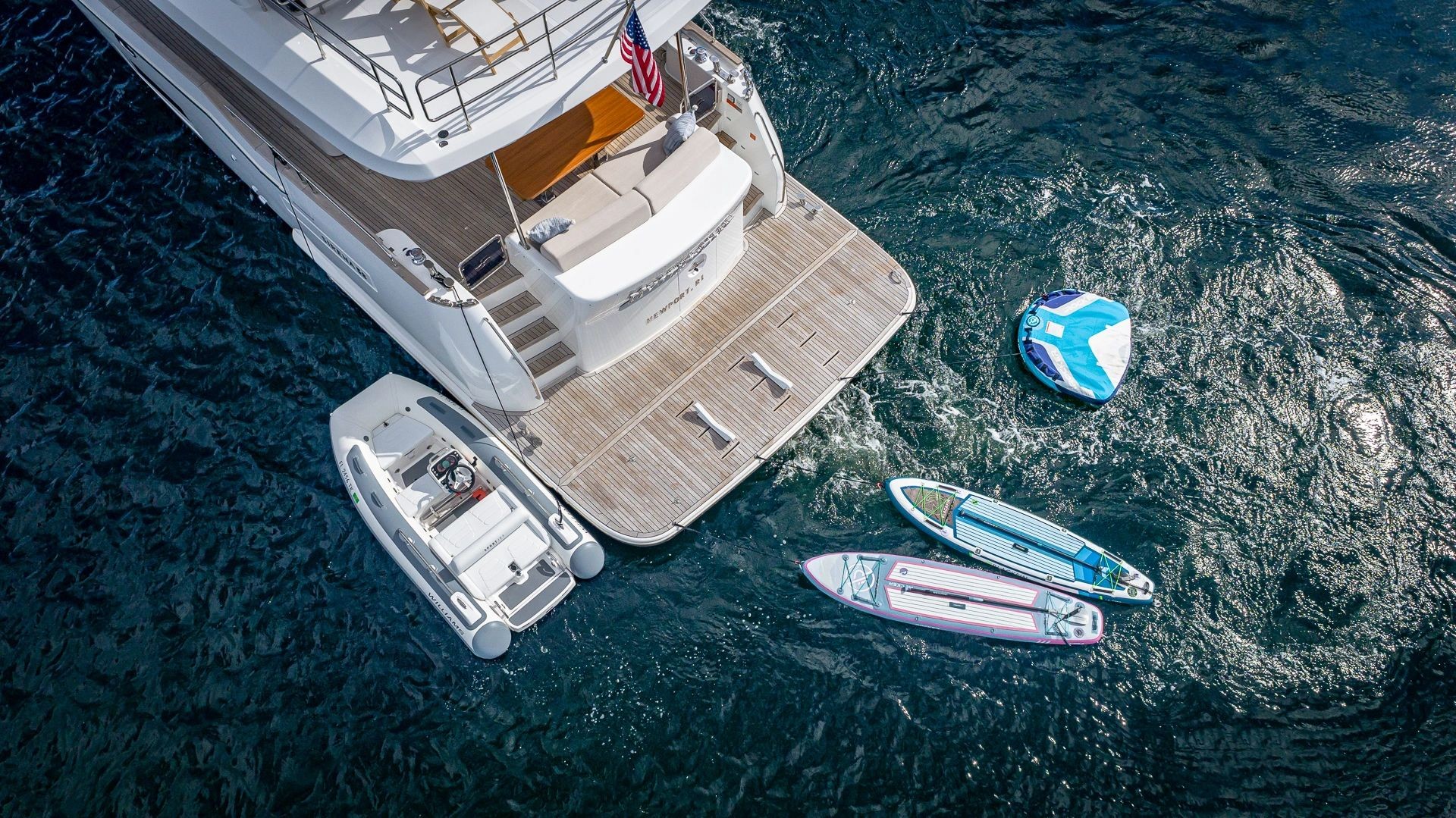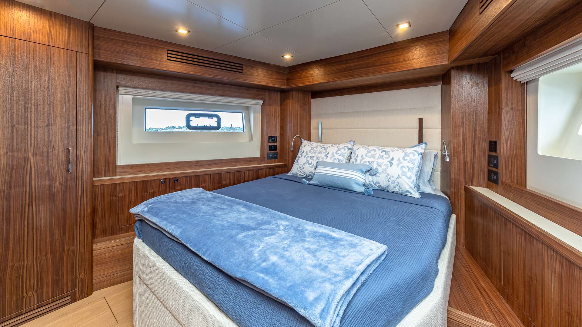 The Sirena 58 is designed to perform efficiently at a wide range of speeds, with a displacement mode that allows extensive range for long cruising legs, but also a planing speed that allows faster cruising speeds to optimize time. With comparatively low fuel consumption, MYSTIC BLUE can take her owners on long passages with stability and comfort. The large volume hull design provides space to create a more open layout than is common on a boat of this size, with lines of sight and headroom to reflect that of a much larger yacht. Ample indoor and outside spaces to both relax - on the foredeck sun lounge, as well as entertain - on the spacious flybridge - provides for an exceptional day charter or luxury excursion experience.