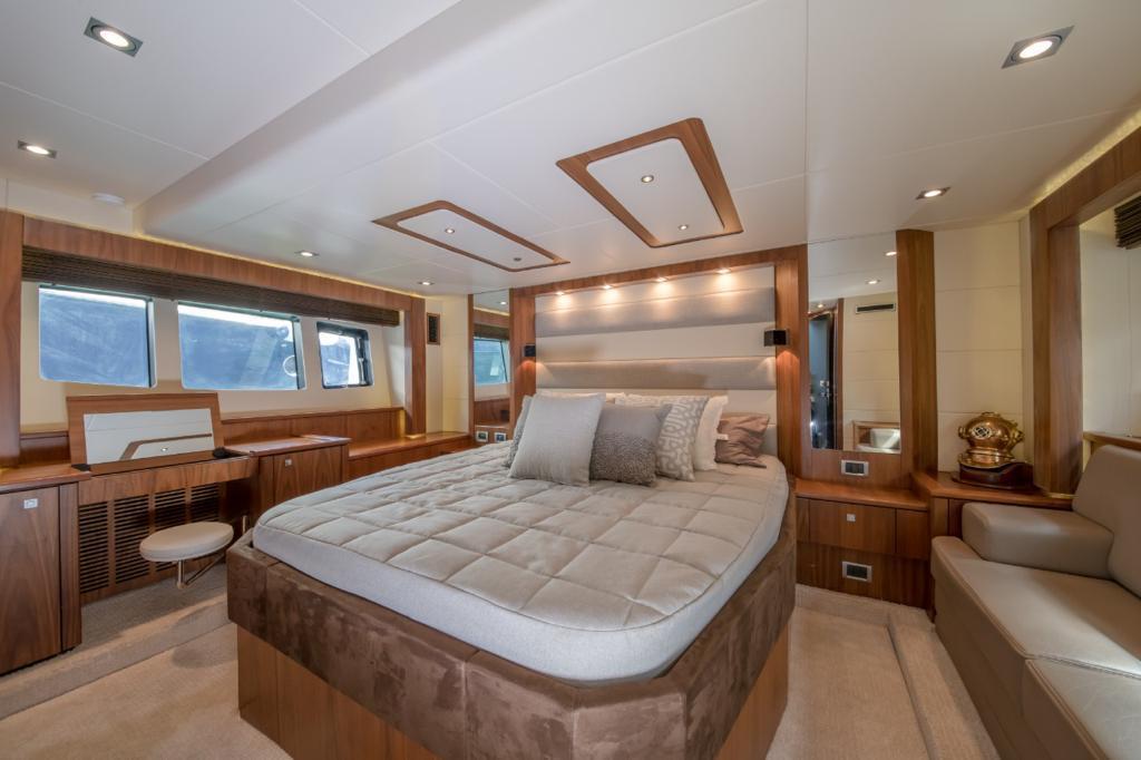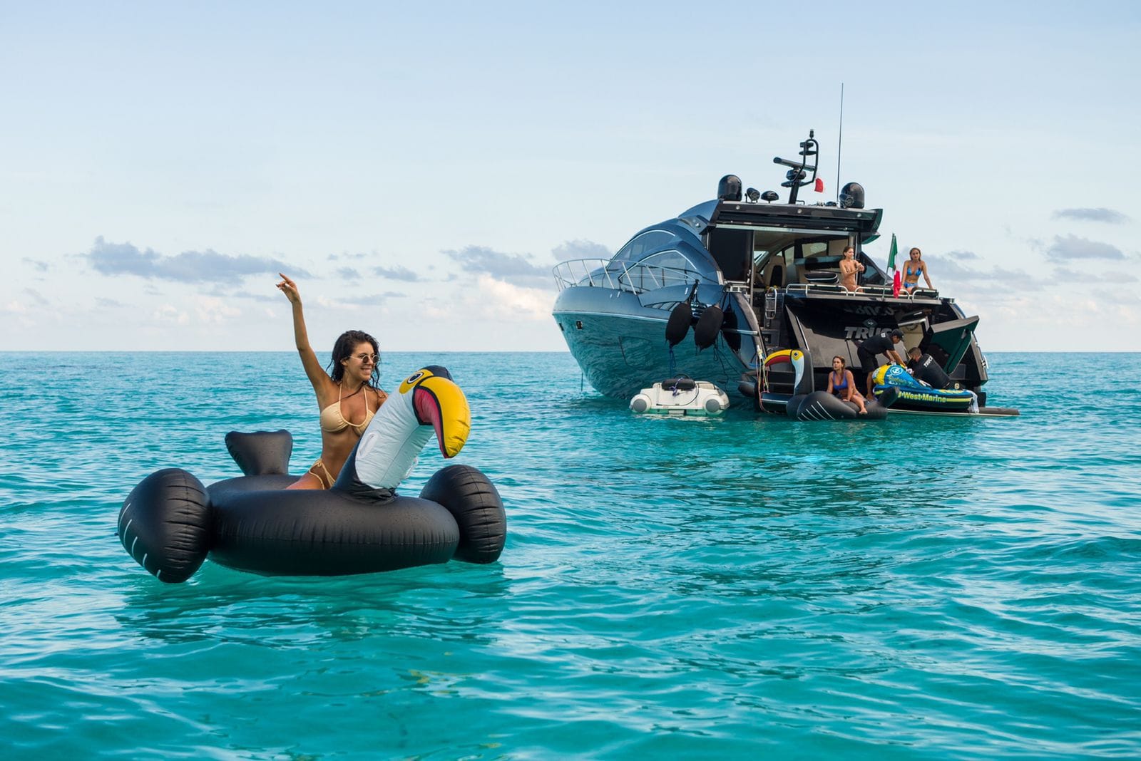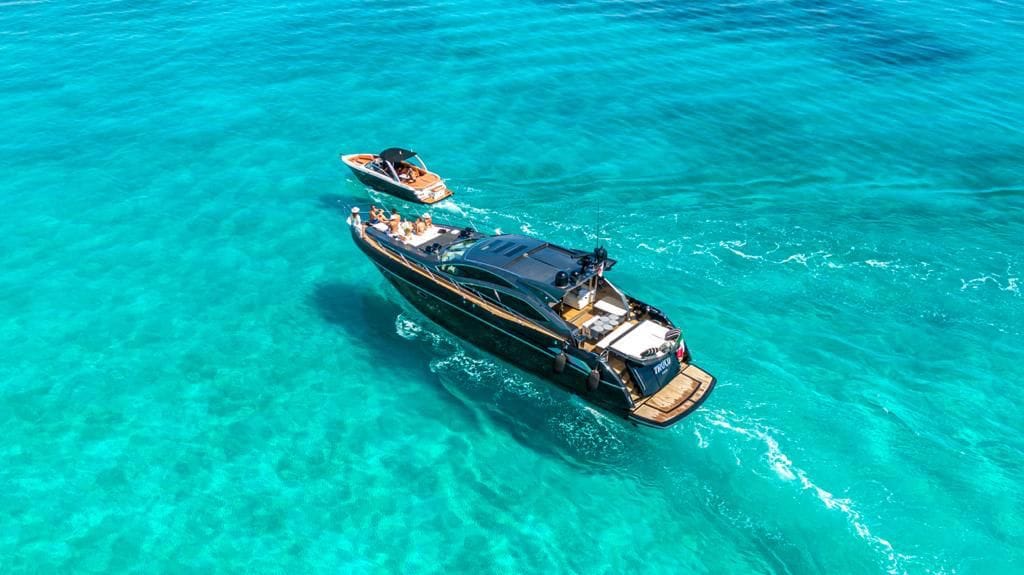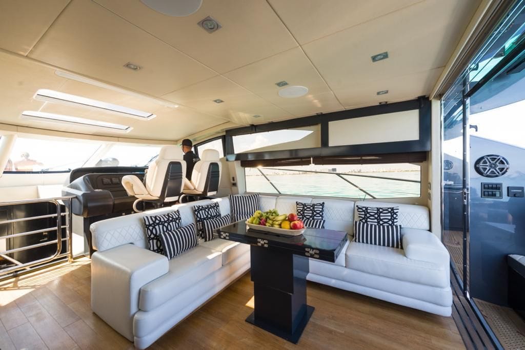 Escape to paradise with the Sunseeker Predator 65, the ultimate luxury yacht for adventure seekers. This vessel is equipped with Volvo Penta IPS engines for a smooth and exhilarating ride, reaching speeds of up to 35 knots as you cruise along the crystal-clear waters of the Caribbean. Host parties or relax with loved ones on the two outdoor entertaining areas. The yacht’s three-cabin layout can accommodate up to six guests. When it’s time to cool off, take a dip in the crystal-clear waters from the hydraulic bathing platform or launch a water toy from the tender garage.