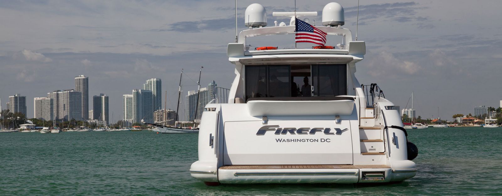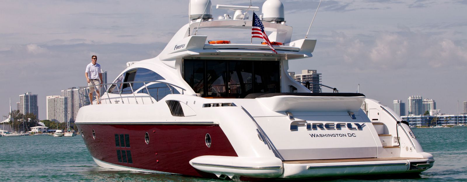 Designed and built by the Azimut shipyard in Italy, the 68ft Firefly turns heads wherever she goes. Her sleek lines and lavish leather interiors give this yacht the feel of a Ferrari on the water. Firefly has been meticulously maintained by a permanent professional crew and is ready for any mission at a moment’s notice. With a mere 6ft draft, this yacht can access secluded coves and shallow rivers. Firefly features two spacious staterooms and is an ideal overnight retreat for two couples. From a casual dinner in the shadow of the monuments in Georgetown to week-long excursions along the Chesapeake Bay and into Annapolis and Baltimore, Firefly accommodates in style and comfort.