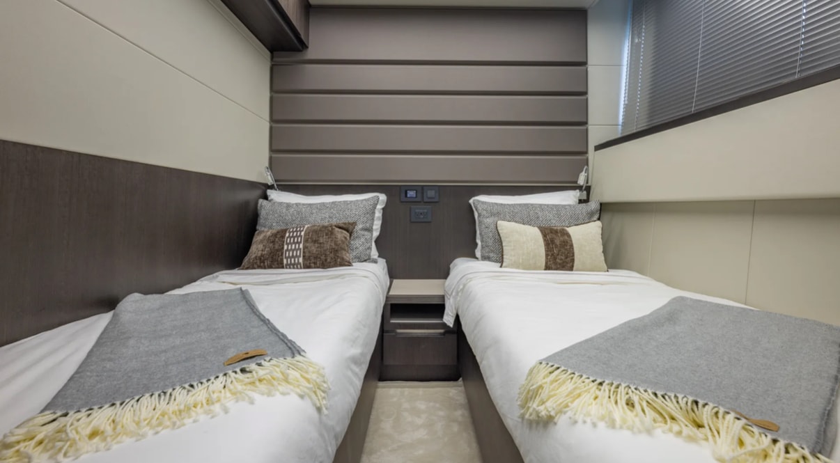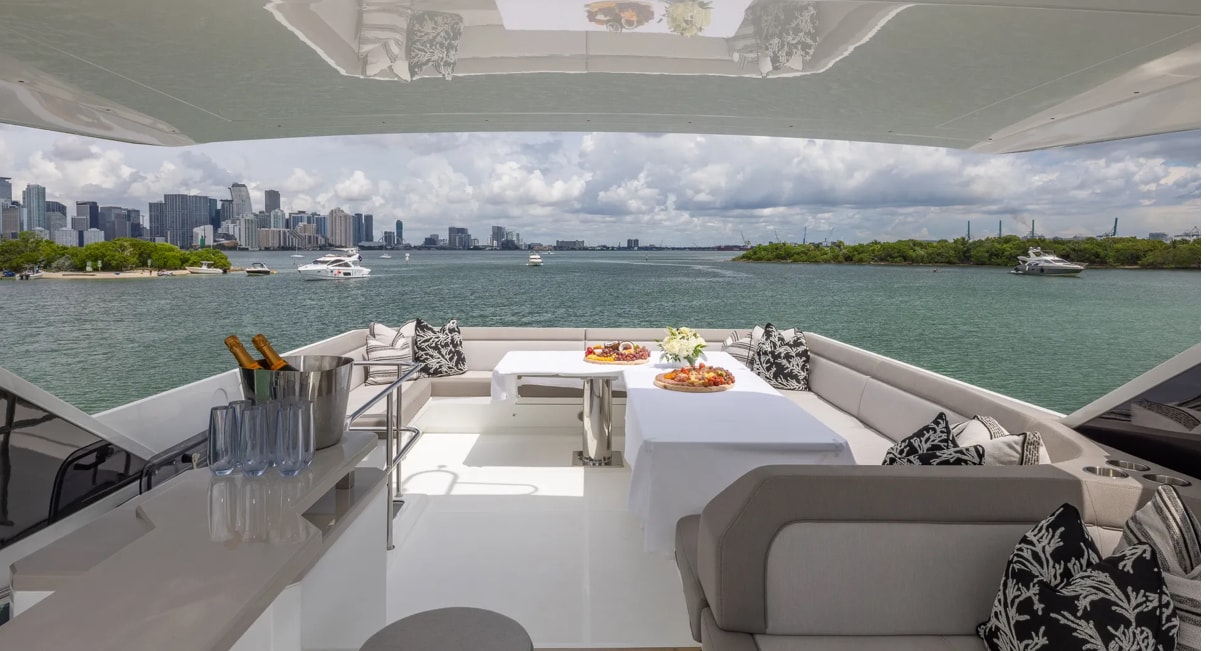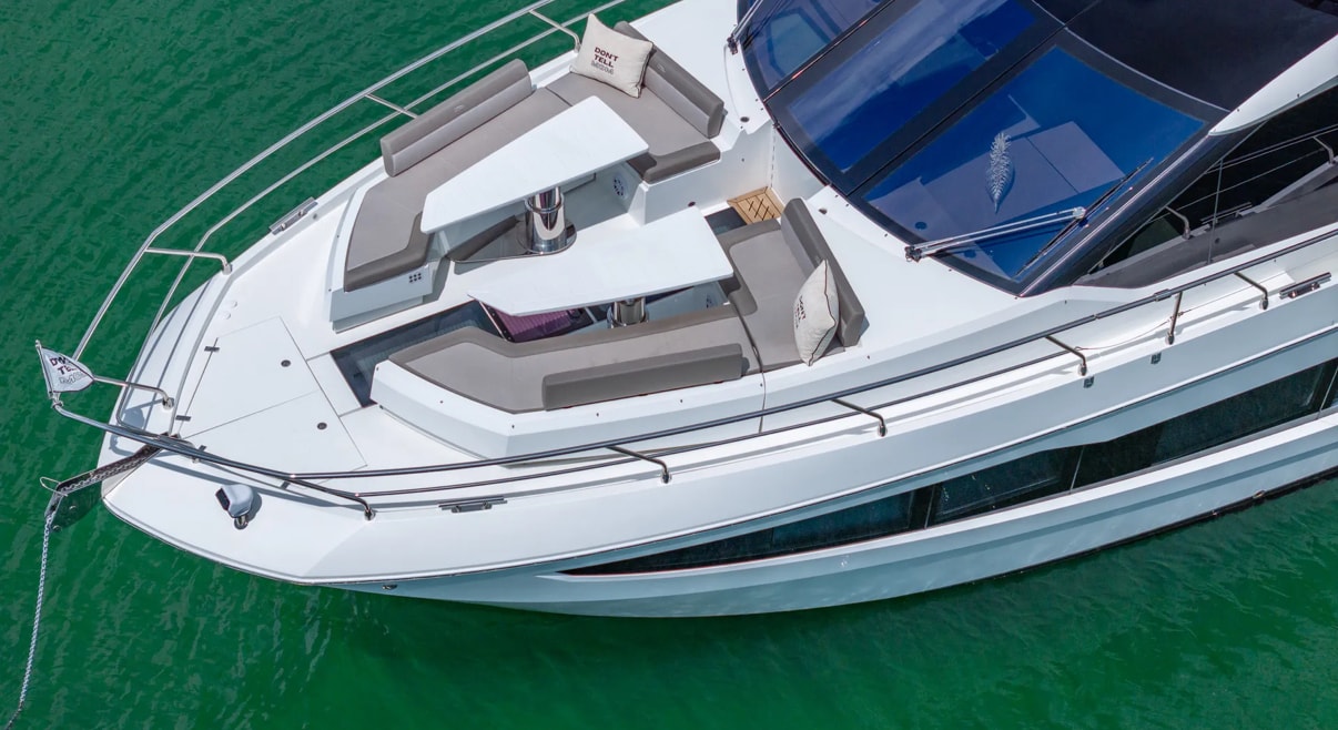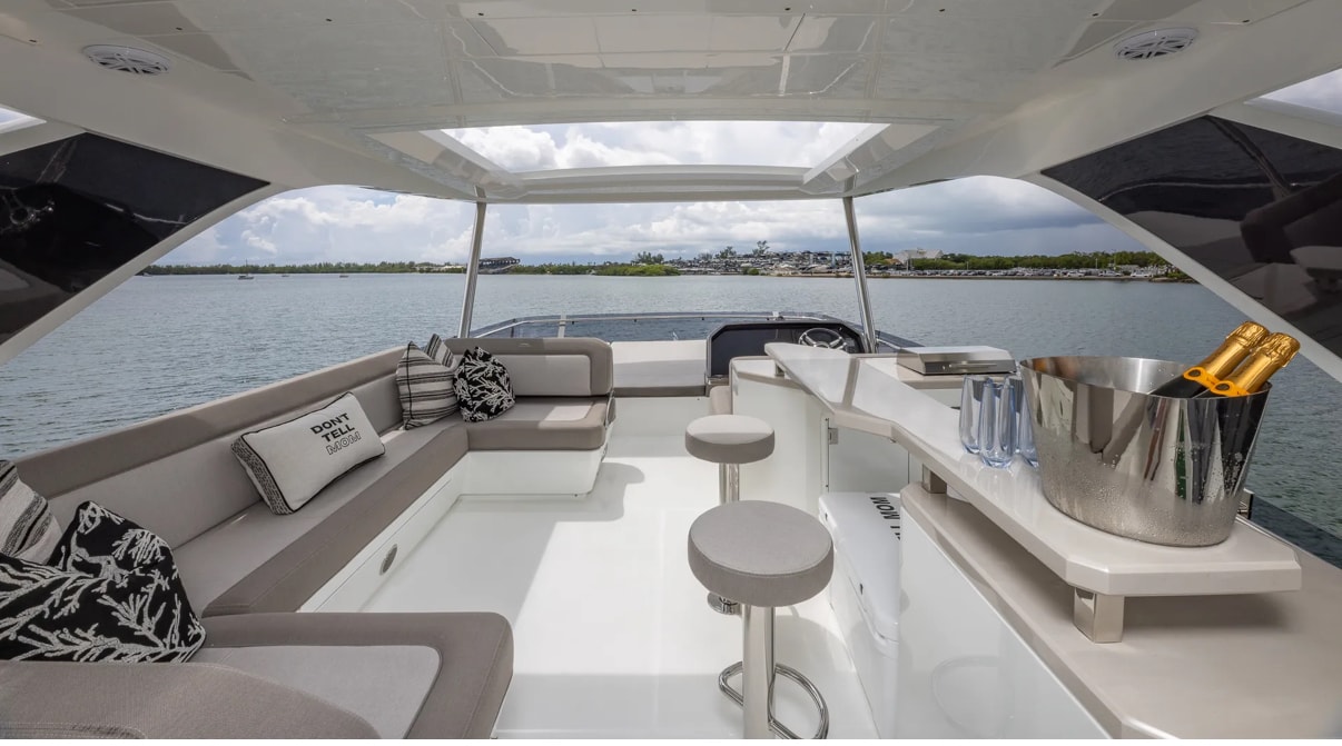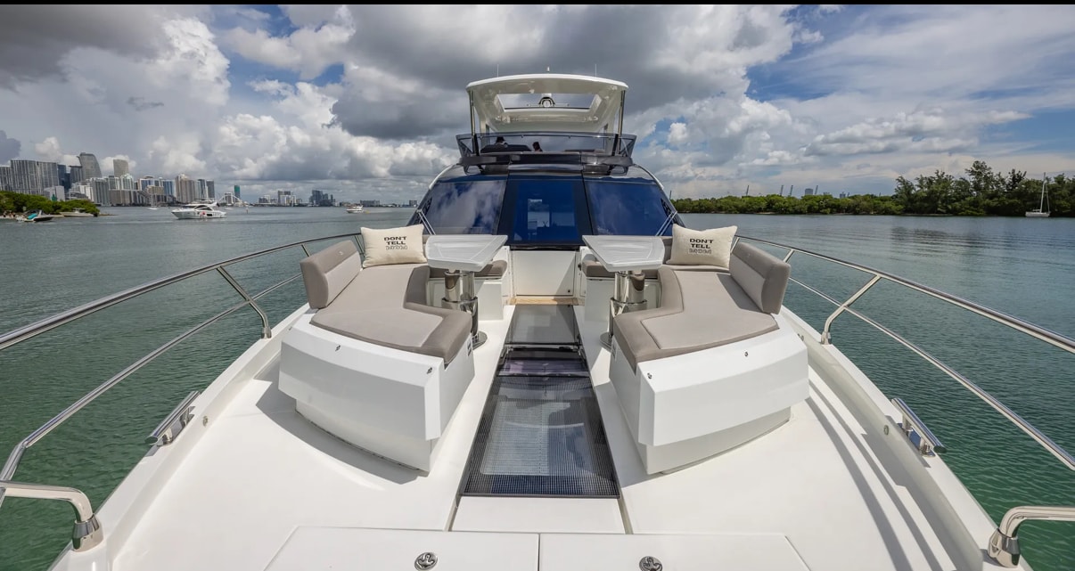 Step aboard “Don’t Tell Mom”, a stunning 68’ Galeon flybridge yacht that perfectly blends European craftsmanship, cutting-edge innovation, and pure comfort. Designed for both relaxation and entertainment, this yacht offers expansive outdoor and indoor spaces, making it ideal for luxury cruising and unforgettable getaways. The yacht’s transformative beach mode balconies, sleek flybridge, and spacious aft deck create an open-air paradise for guests to unwind, dine, or enjoy the views in style. Inside, the contemporary salon features panoramic windows, a modern galley, and plush seating that seamlessly connects with the outdoors. Below deck, “Don’t Tell Mom” offers four beautifully appointed cabins, including a full-beam master suite with ensuite bathroom providing privacy and five-star comfort for up to eight guests