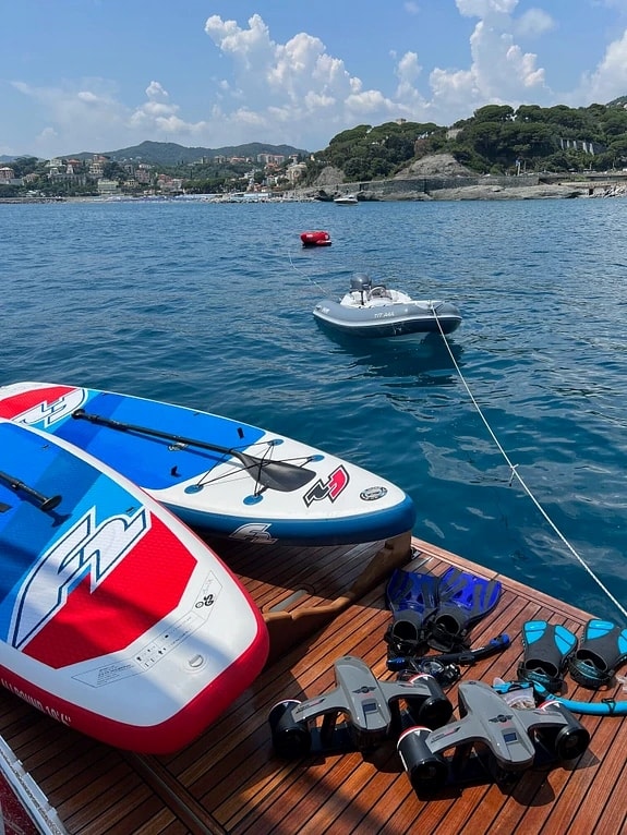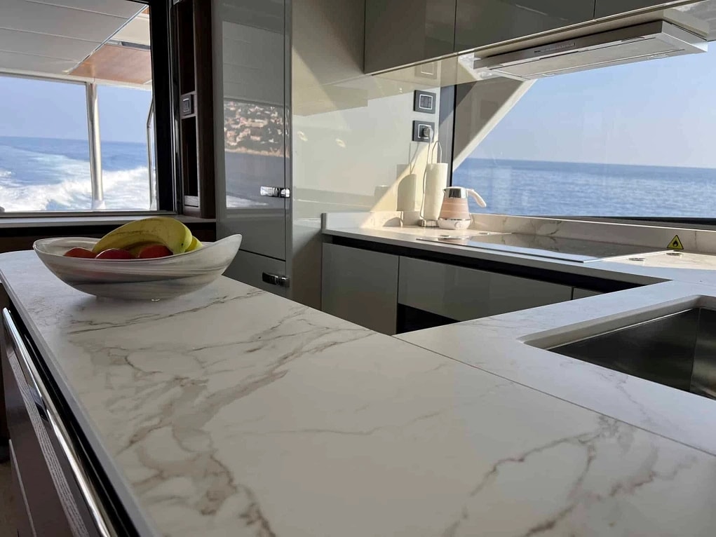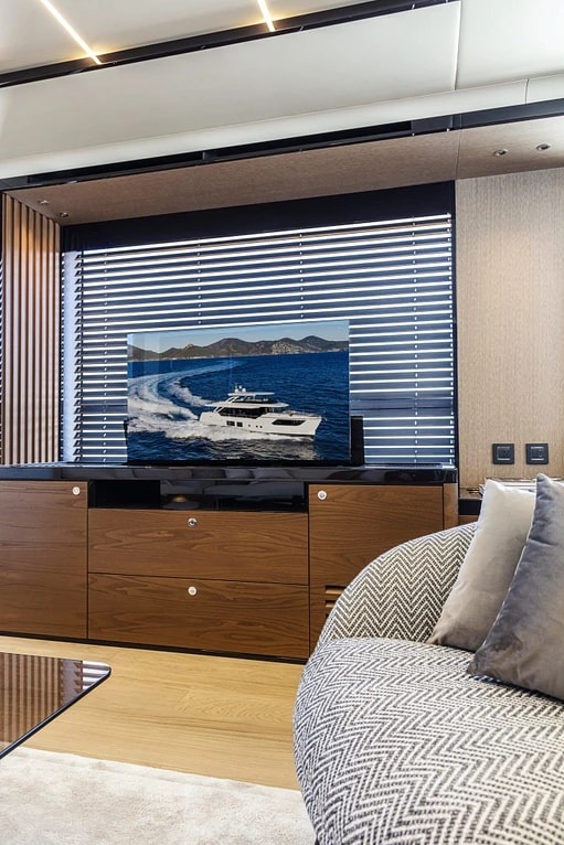 The Absolute Navetta 68 crewed motor yacht A4A features a cutting-edge and sophisticated exterior design with a powerful engine to deliver seamless and comfortable cruising making her stand out among other yachts cruising the French Riviera. She offers upscale amenities for recreation, socialization, and relaxation carefully fitted to ensure an exquisite charter experience for you.