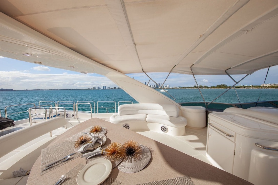 Escape to the crystal-clear waters of Cancun in style and luxury with the Azimut 80 yacht available for charter. This sophisticated vessel boasts large windows that allow natural light to flood the interior, creating a bright and open atmosphere. Relax on the sun-pad in the bow or entertain guests on the flybridge living area as you take in the breathtaking views. The interior features a modern and elegant design, with a fully equipped kitchen, a dining area, and a sweeping staircase leading to the lower deck sleeping area with soft, enveloping lines and luxurious en-suite guest cabins.