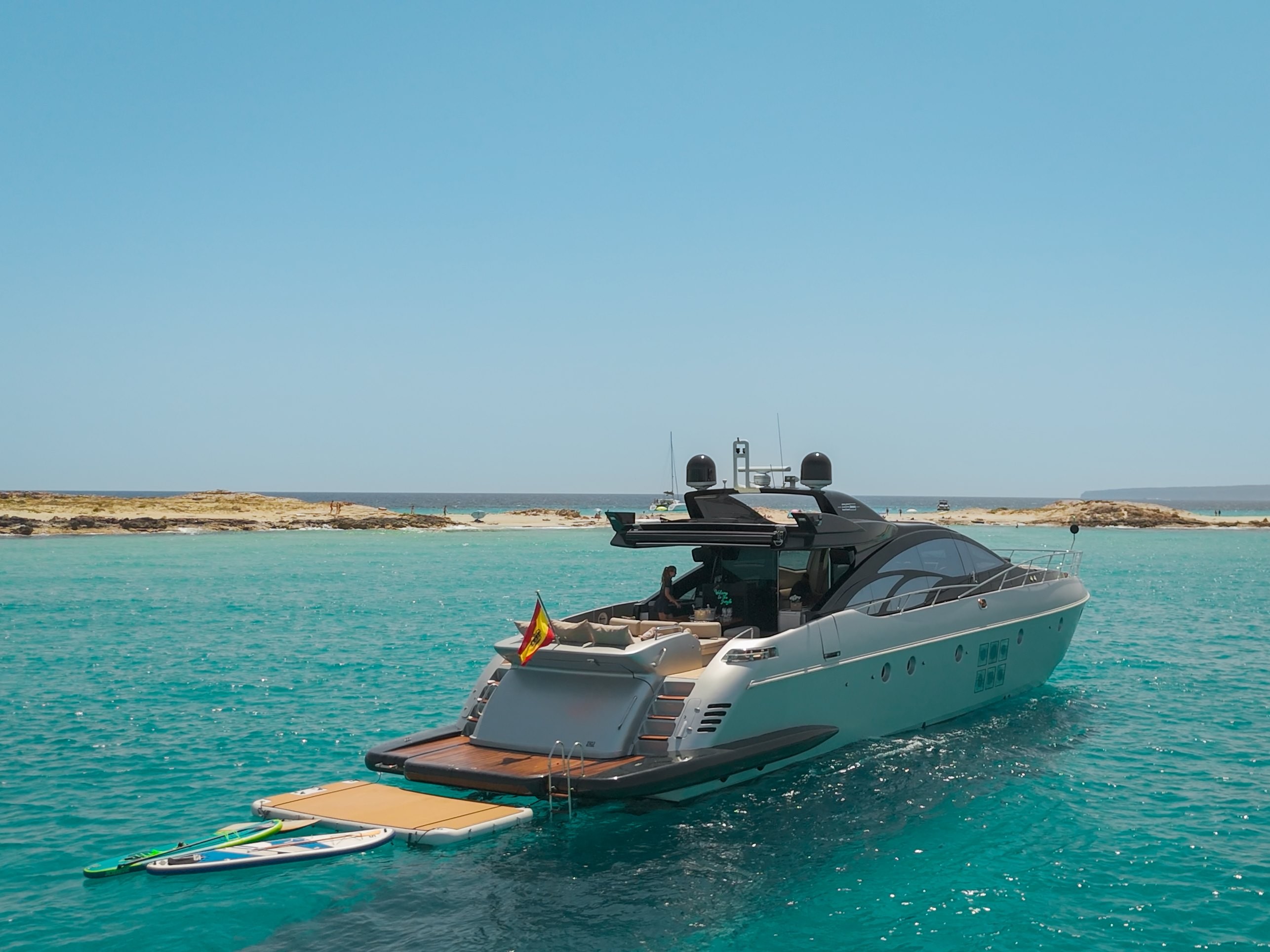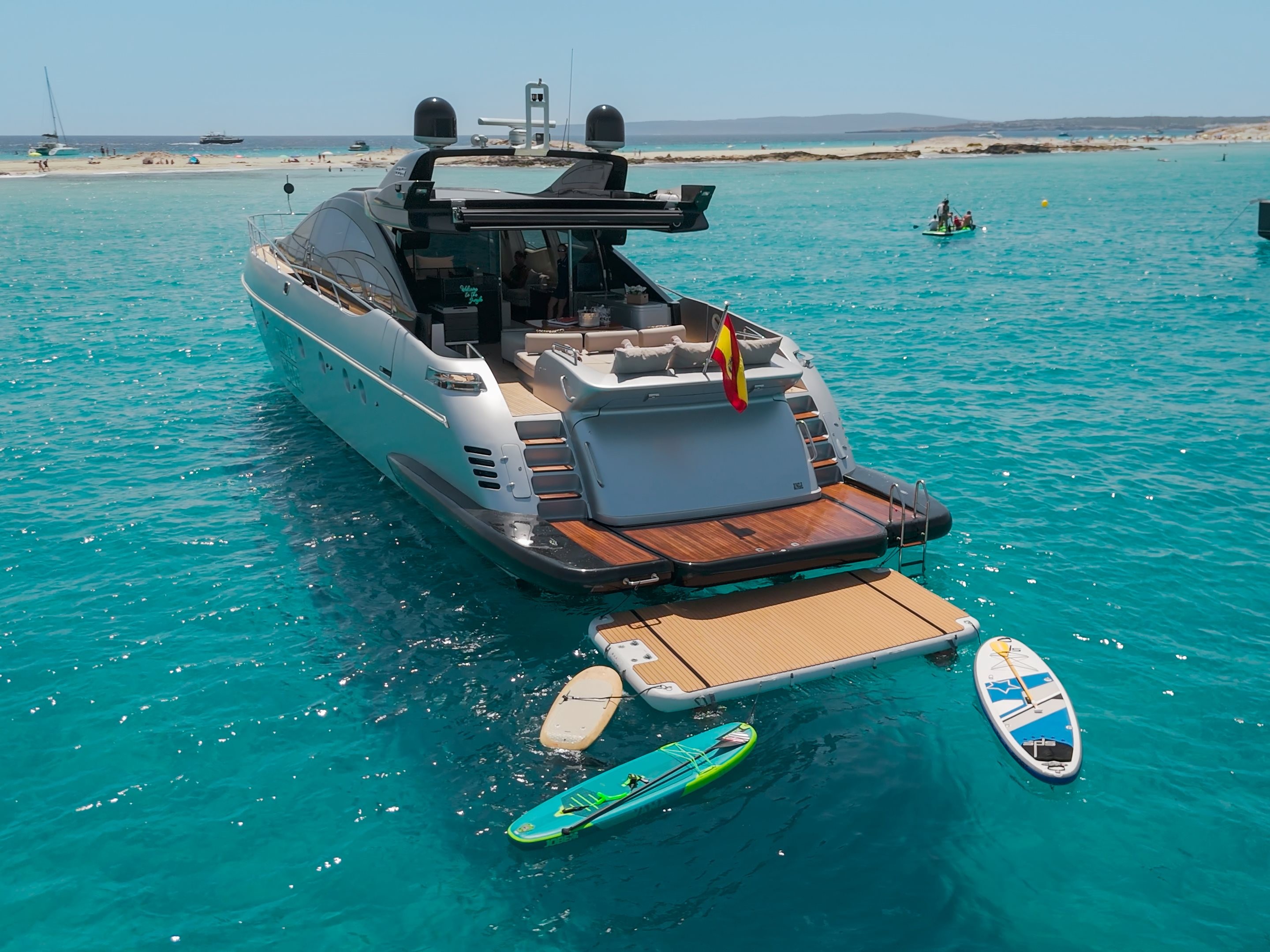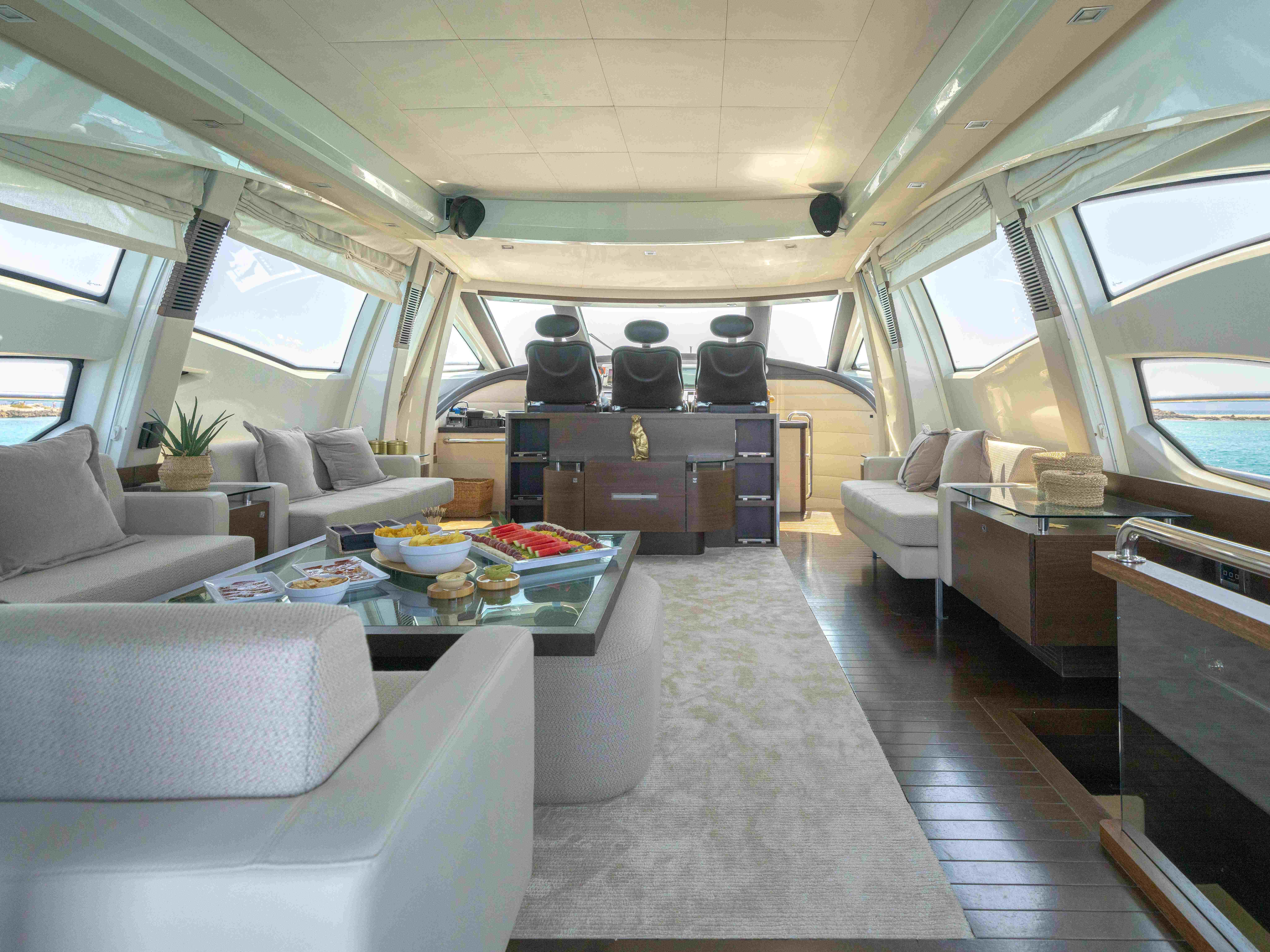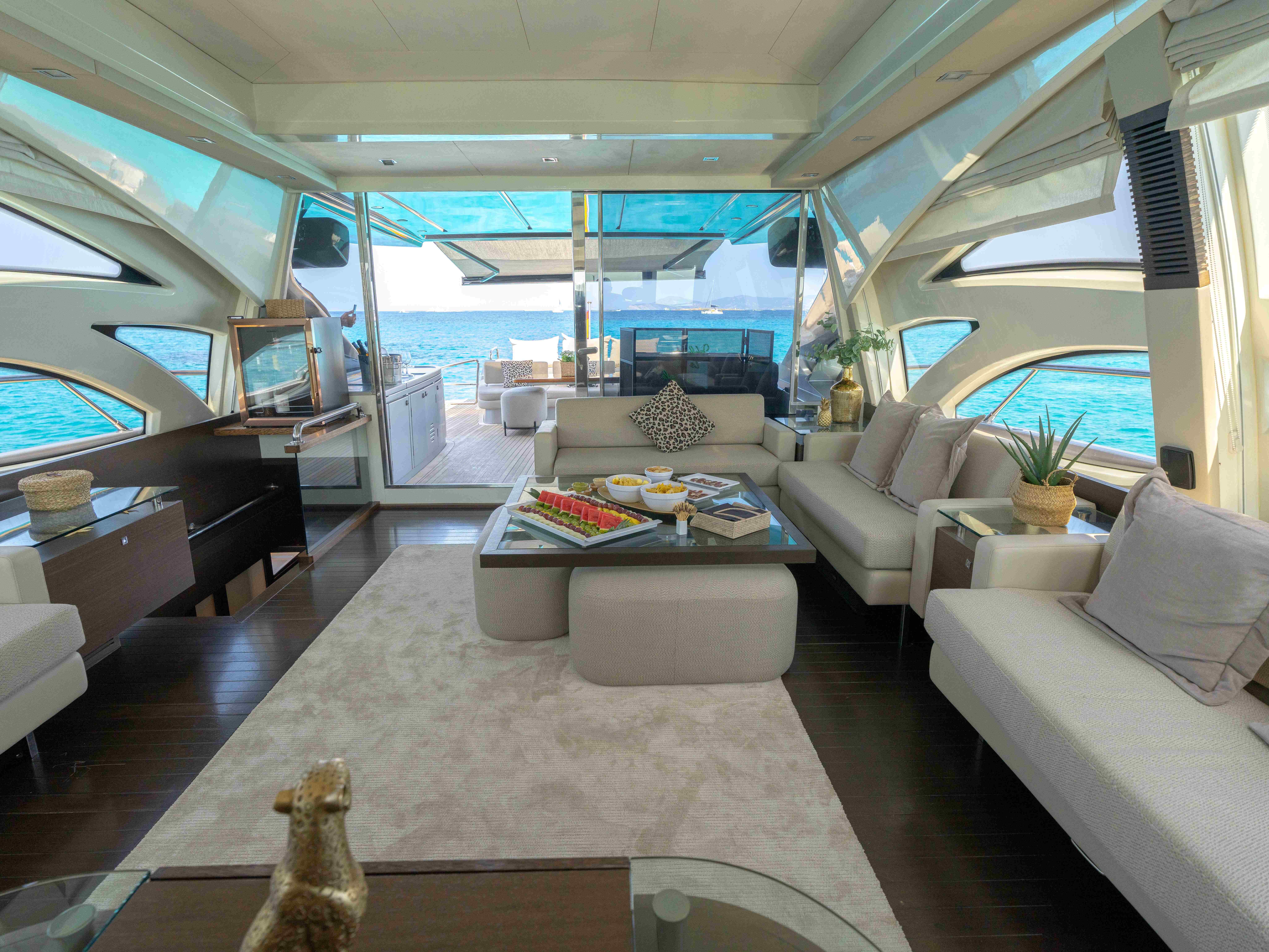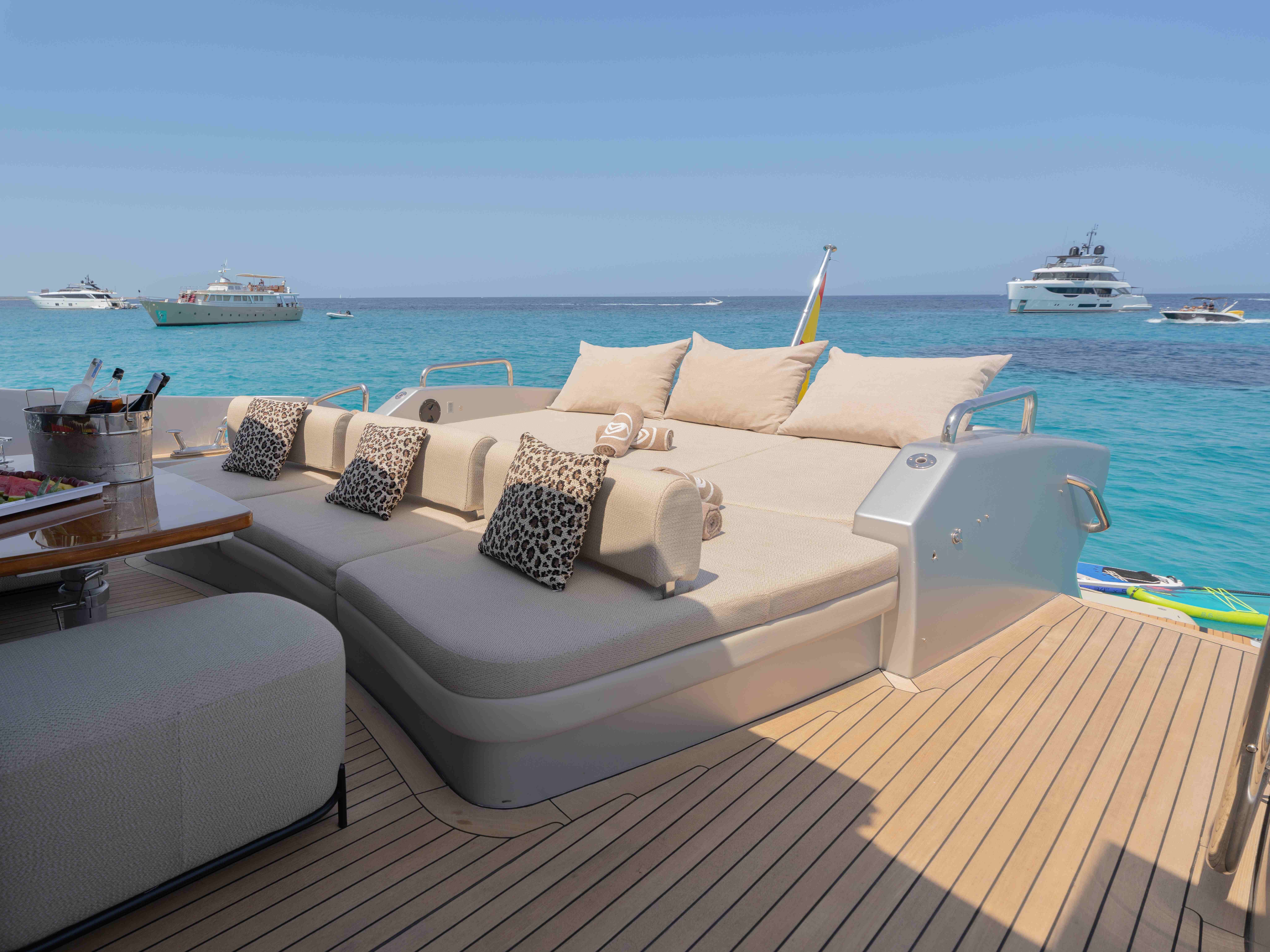Step aboard THE JUNGLE a seductive blend of Italian design and raw power. This Azimut 86 isn’t just a yacht, it’s a floating escape into the extraordinary. With four opulent cabins (including two doubles and two twins), three sleek bathrooms, expansive sunbeds both fore and aft, and seamless indoor-outdoor lounges, THE JUNGLE offers the perfect mix of space, comfort, and cinematic flair. Whether you’re sipping cocktails under the stars or slicing through the waves like Bond on a mission, every moment feels like a scene from your own movie.