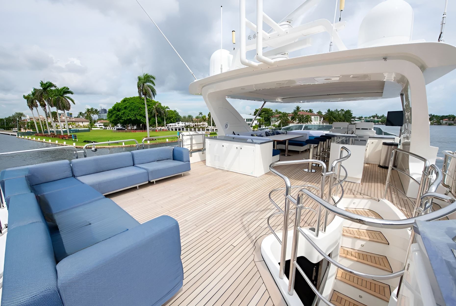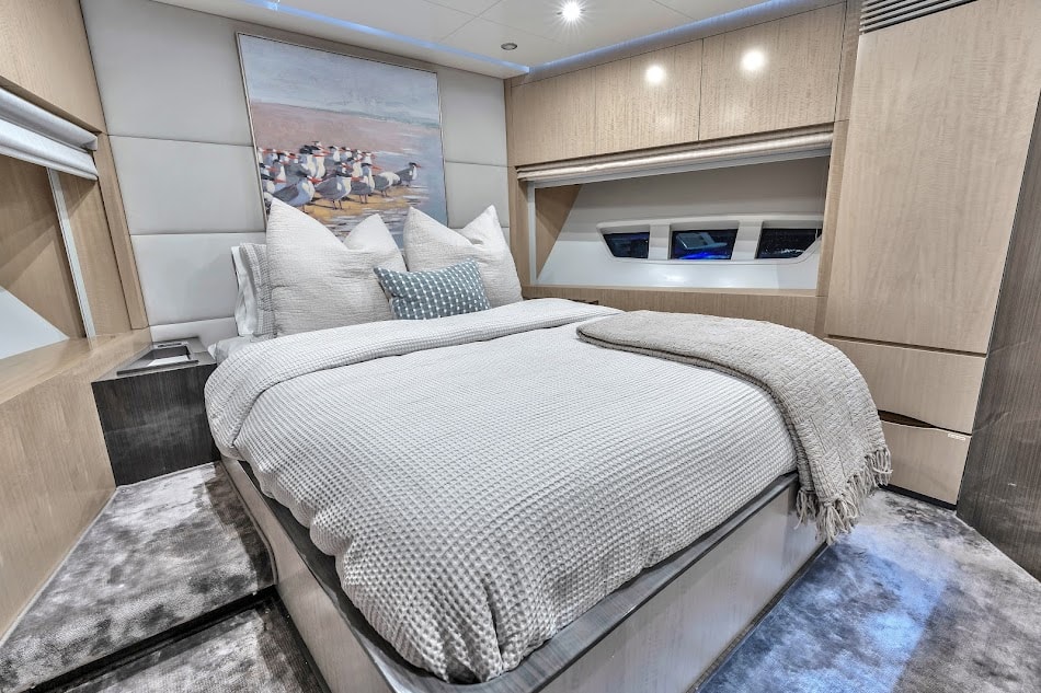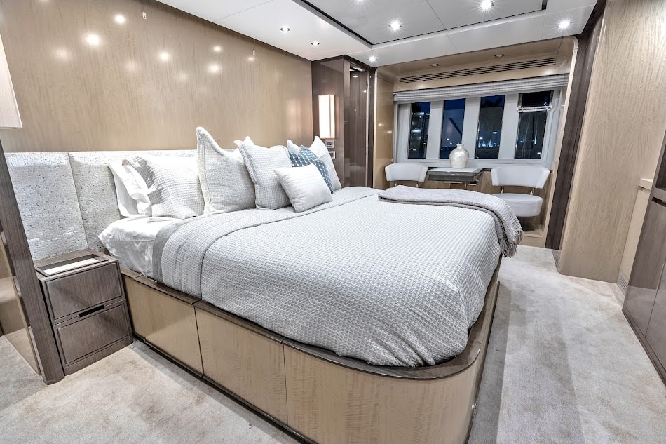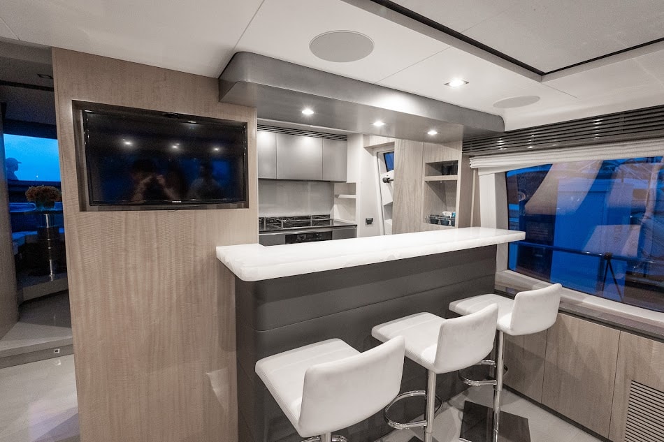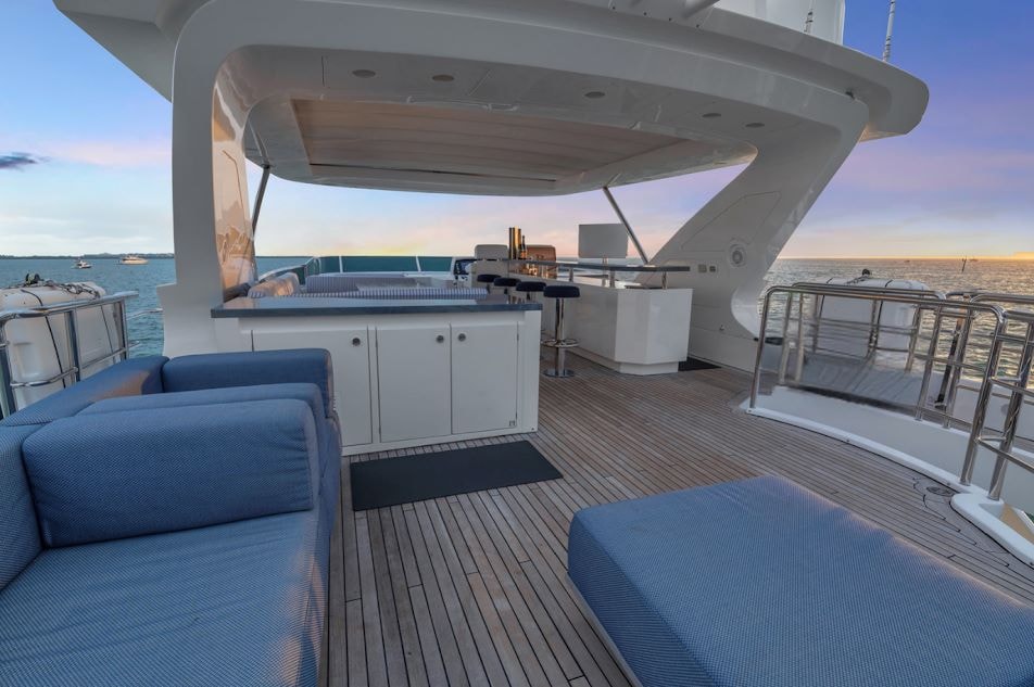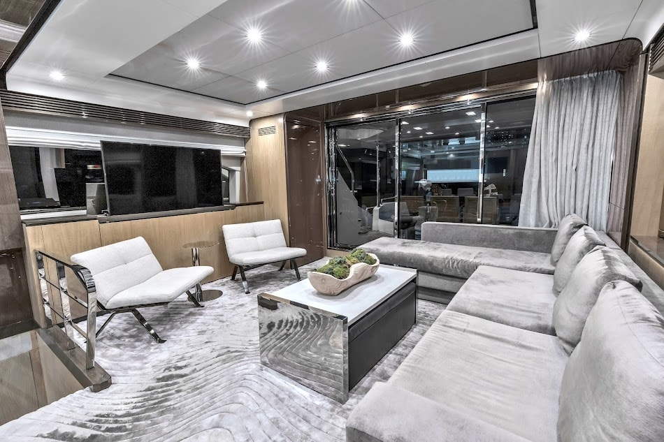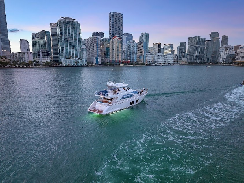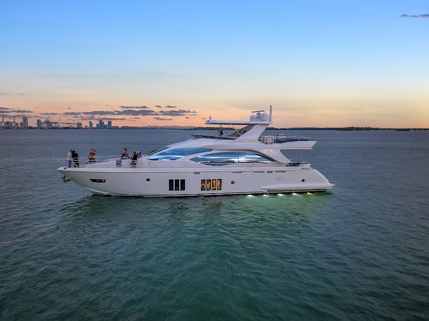 Step aboard the stunning 88′ Azimut Sati, a yacht that fuses Italian craftsmanship with Miami’s vibrant energy. Docked at The Aston Martin Residences, this striking vessel turns heads with its bold profile, expansive decks, and interiors bathed in natural light. Whether you’re planning an elevated celebration, a luxury family day, or an unforgettable escape with friends, this yacht sets the stage for an extraordinary day on the water. Outside, the Azimut 88 offers a variety of lounging and entertaining zones from the spacious flybridge with retractable hardtop to the stylish aft cockpit and oversized foredeck sunpads. Whether you’re catching rays, enjoying drinks at sunset, or dining alfresco, there’s a perfect spot for every vibe. Designed with seamless flow between indoor and outdoor living, this yacht lets you experience Miami from every angle. Step inside and be swept away by the refined interior, featuring sleek light wood finishes, oversized windows, and elegantly curated furnishings. The open-plan main salon invites conversation and comfort.