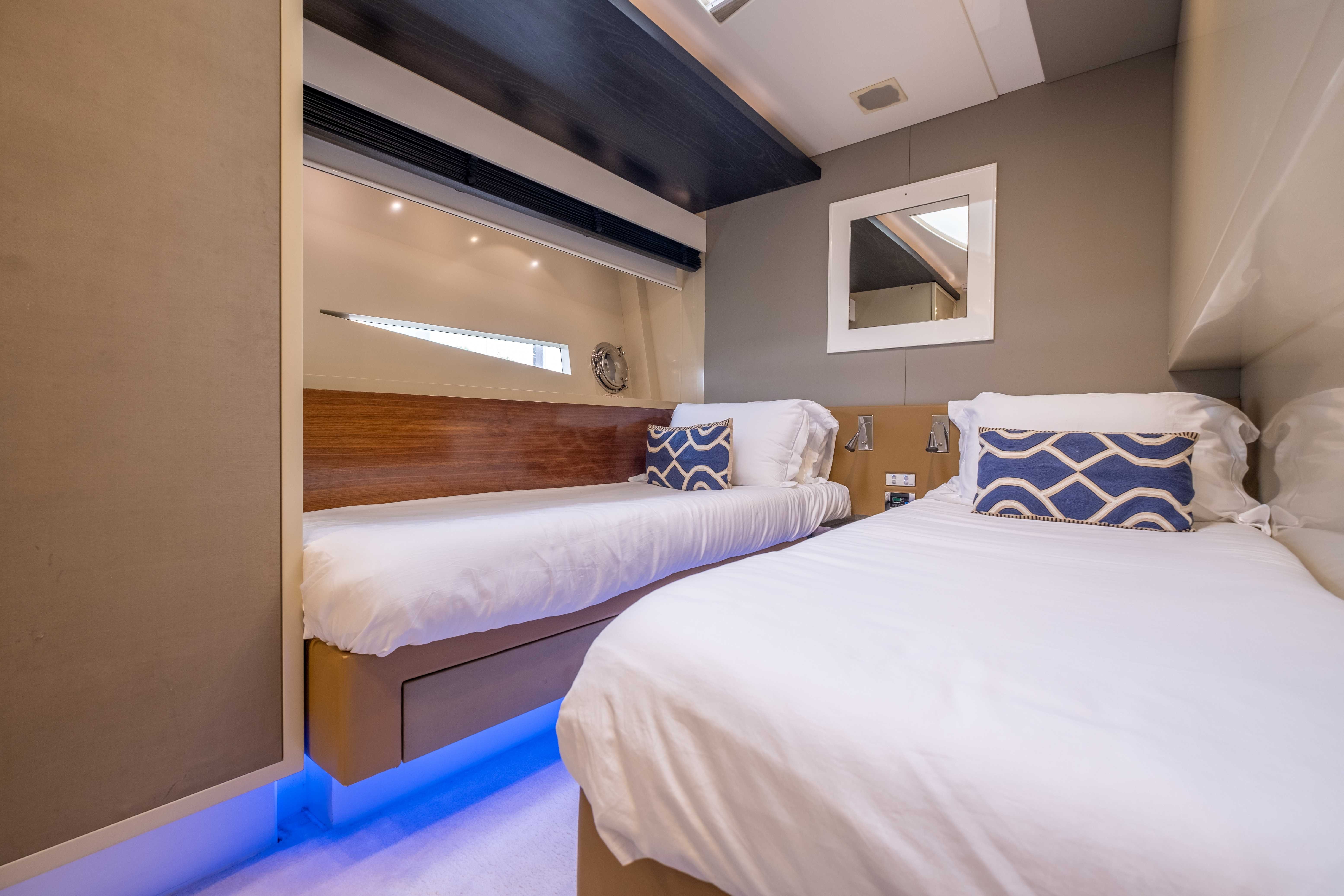 World renowned super yacht builder Canados decided to build the ultimate 90 foot yacht. Gorgeous interior and exterior design, world class build quality and speed set this boat apart as a true leader in its class. With nearly 5000hp under the hood, it’s probably the fastest 90 foot yacht in Ibiza. We’re sure that the addition of a club level Void sound system would be a feature our guests would enjoy.