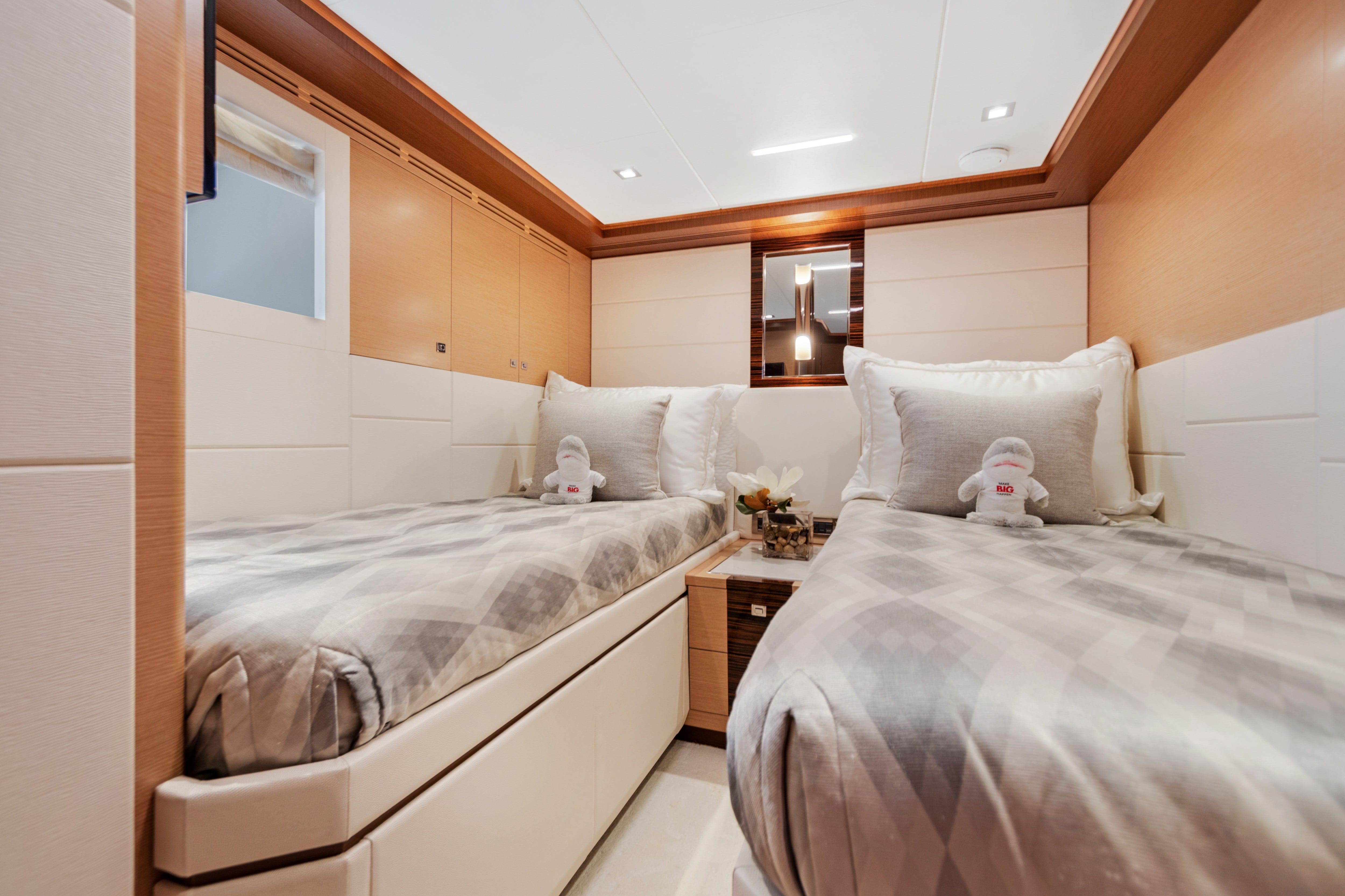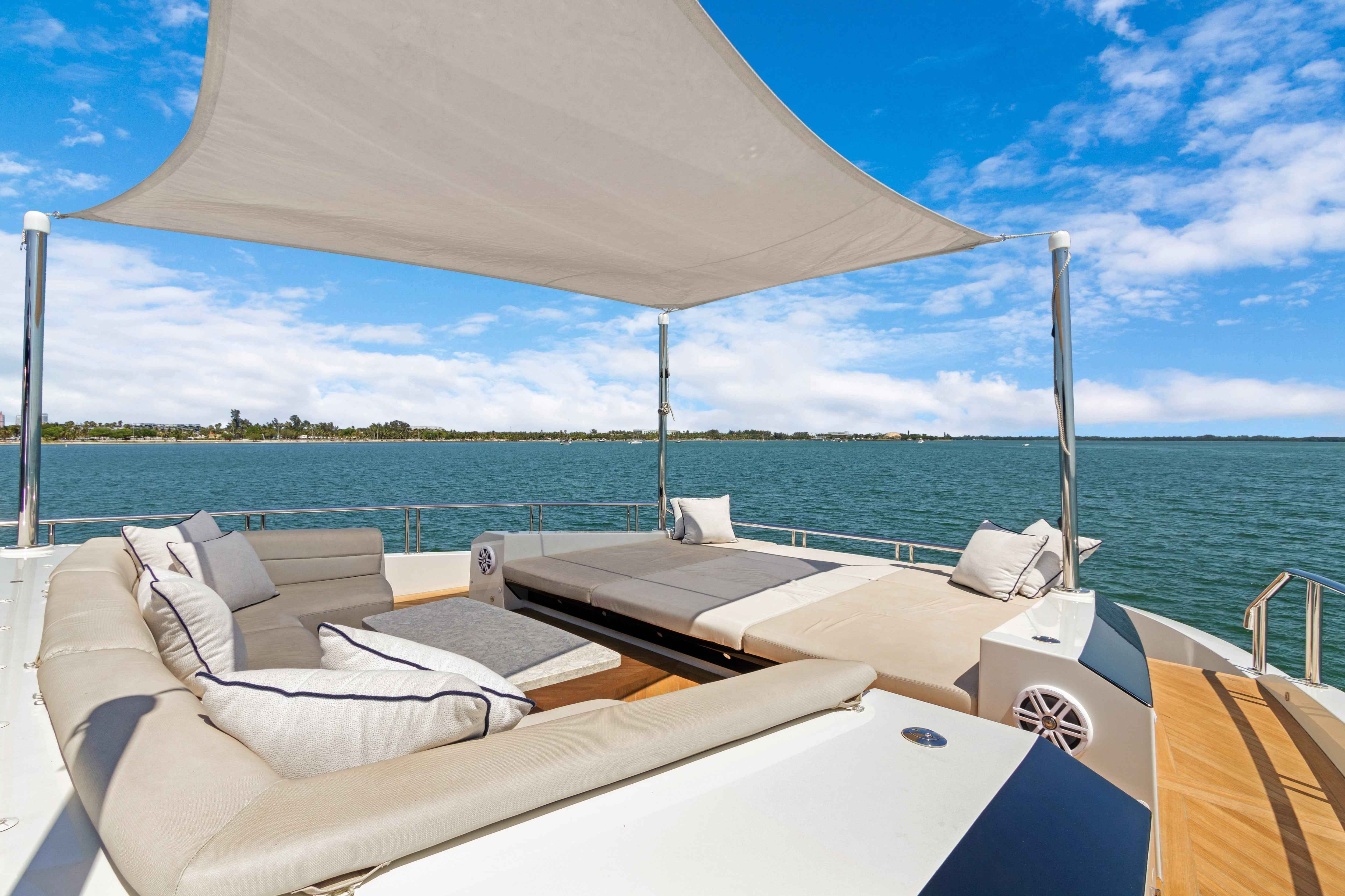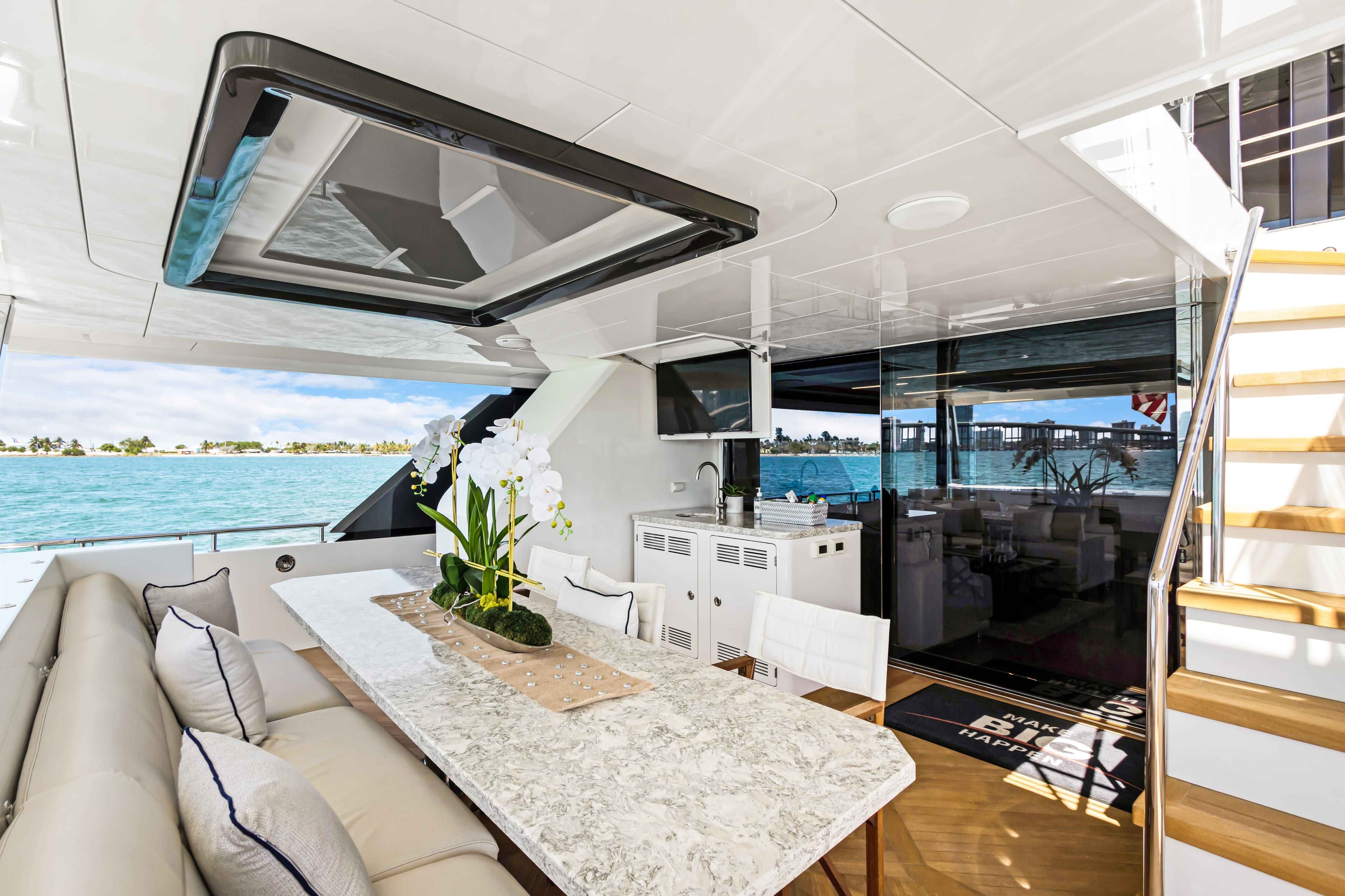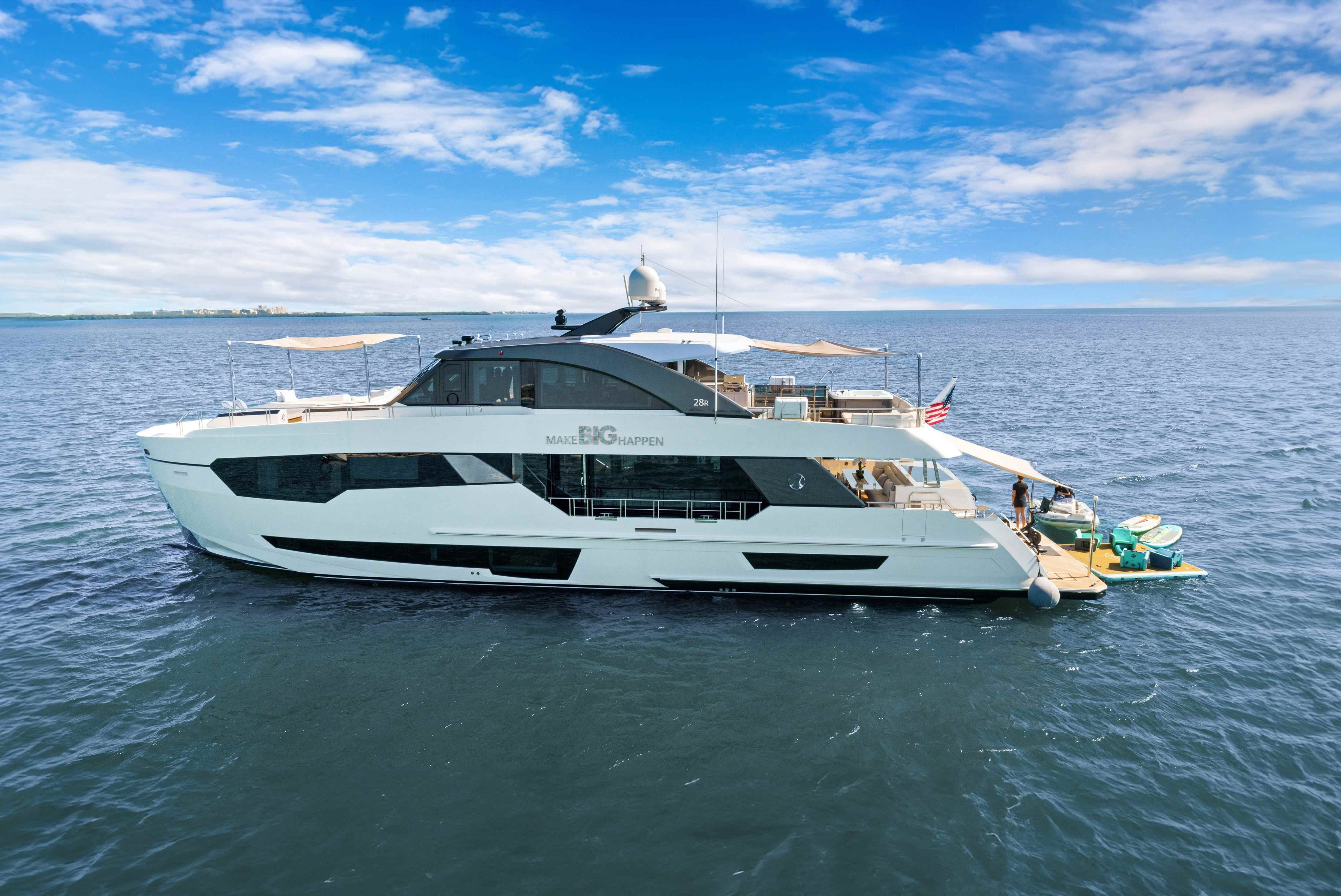 MAKE BIG HAPPEN" excels for Miami day charters with its luxurious amenities and sleek design. Enjoy plush outdoor lounging and a jacuzzi on this 27.4m yacht, complemented by elegant interiors and top entertainment systems for an ideal day on the water.