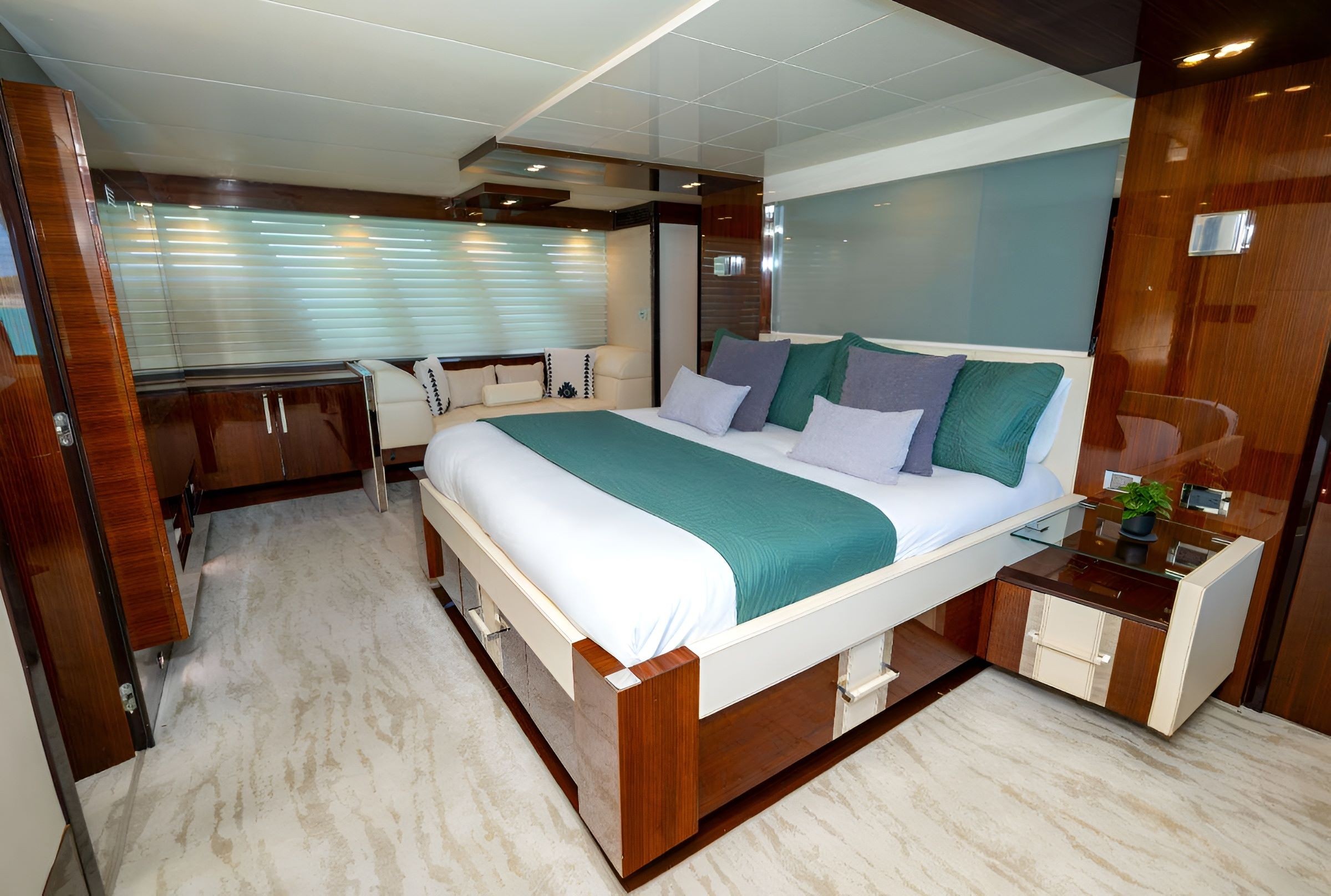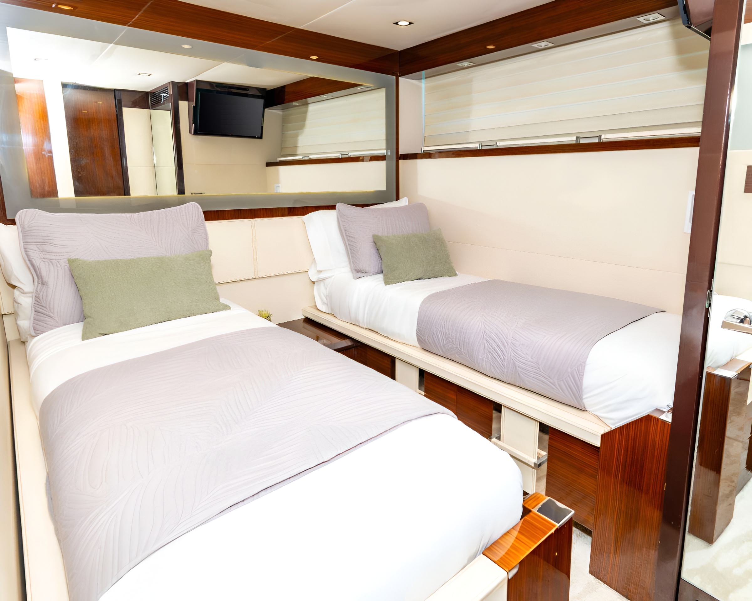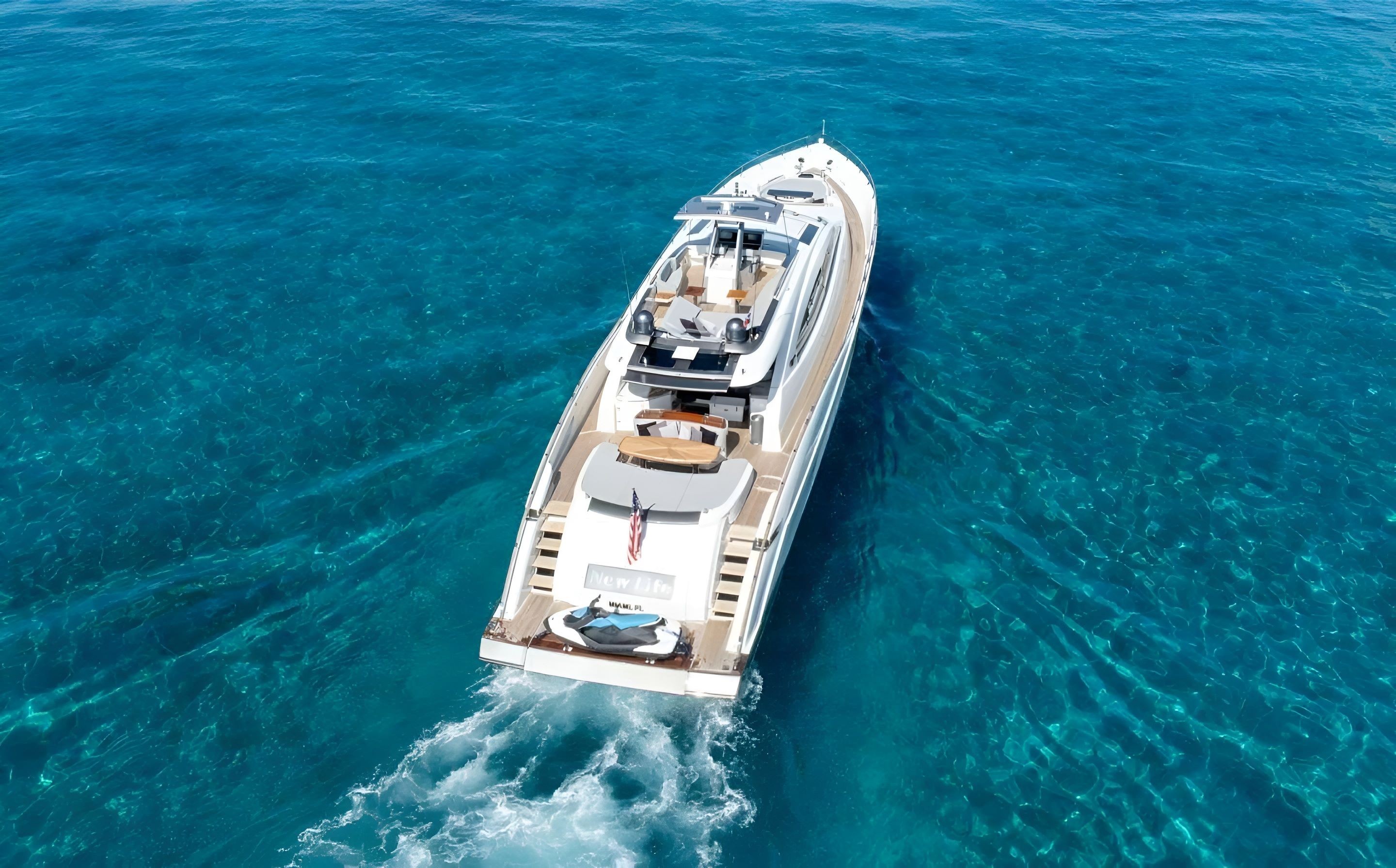 The 92’ Lazzara LSX “New Life” is a sleek and contemporary luxury motor yacht, designed for those who appreciate performance, elegance, and comfort. Based in the Bahamas, this yacht combines cutting-edge engineering with a modern layout that is perfect for both relaxation and entertainment. Her streamlined profile and open design create an inviting atmosphere, featuring expansive windows that flood the interior with natural light. The salon offers a stylish lounge and dining space, seamlessly connecting to outdoor deck areas for alfresco enjoyment. Guests can take in breathtaking ocean views while relaxing on the sun pads, enjoying cocktails on the aft deck, or dining under the stars. The New Life 92 accommodates guests in beautifully designed staterooms with en-suite bathrooms, providing a luxurious retreat after a day of adventure. With multiple outdoor lounges and a swim platform for easy access to the water, this yacht is perfect for exploring the turquoise Bahamian seas. Equipped with a variety of water toys and a professional crew dedicated to top-tier service, the 92’ Lazzara LSX New Life delivers the ultimate combination of style, speed, and comfort ideal for an unforgettable charter experience in the Bahamas.