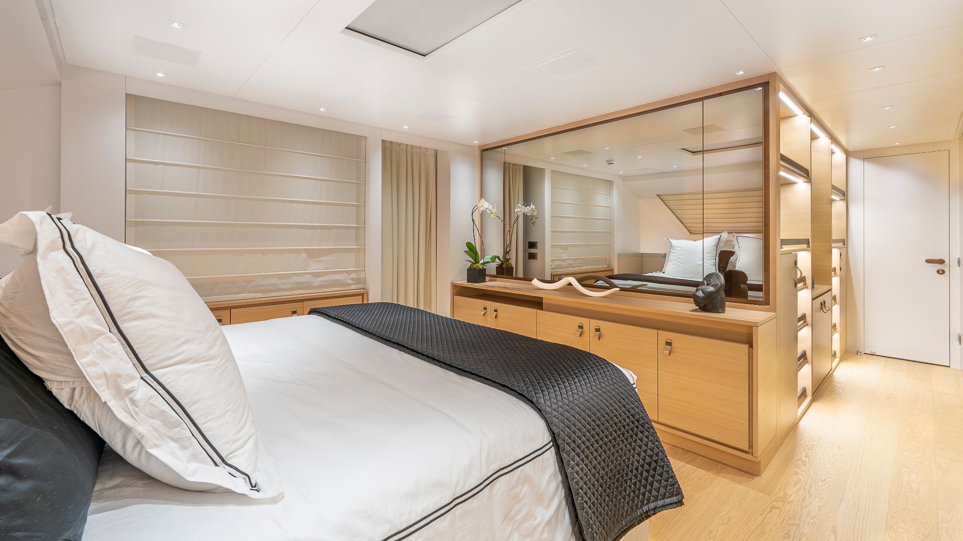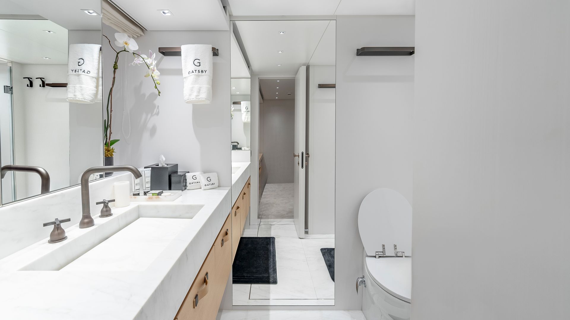 GATSBY is a 96-foot Sanlorenzo motor yacht that blends sleek Italian design with advanced performance. Delivered in 2021 and now available for charter, she is perfectly suited for refined escapes into the crystal-clear waters of Miami and The Caribbean. Her clean, contemporary profile sets the stage for a relaxed yet sophisticated onboard experience. From the expansive sun deck with outdoor bar to the swim platform and onboard Starlink connectivity, every element is designed to encourage both relaxation and effortless entertaining. GATSBY welcomes up to nine guests in four beautifully appointed staterooms, including a full-beam primary suite with a king bed located on the main deck.