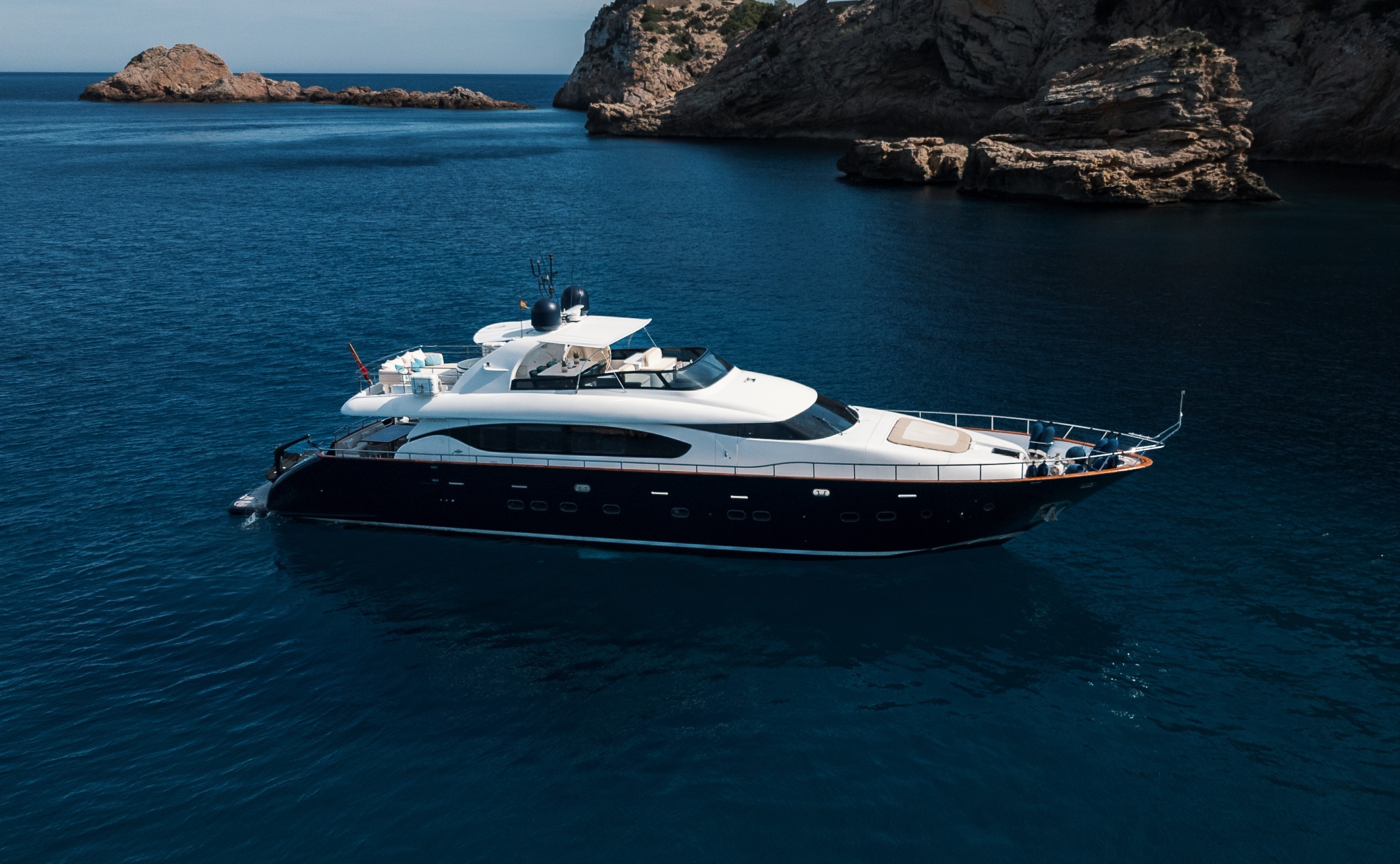The Maiora 99 “M/Y LADY KC” is a luxury yacht of nearly 30 meters in length, with an elegant and modern design. She is equipped with powerful engines and is designed to offer a high level of comfort and convenience on board. M/Y LADY KC is capable of accommodating up to 12 guests on a day cruise and 9 guests for overnight charters in three double cabins and one twin with pullman, making her ideal for groups and families looking for a high-quality sailing experience. She has a wide range of features and amenities on board, such as a jacuzzi, a high-quality entertainment system, a well-equipped kitchen, a large bathing platform to enjoy water sports, and Zero Speed stabilizers. Maiora 99 yachts are one of the brand’s most popular and successful yacht lines and are highly regarded in the luxury yacht industry. M/Y LADY KC is an excellent choice for those looking for a yacht of high quality and comfort.