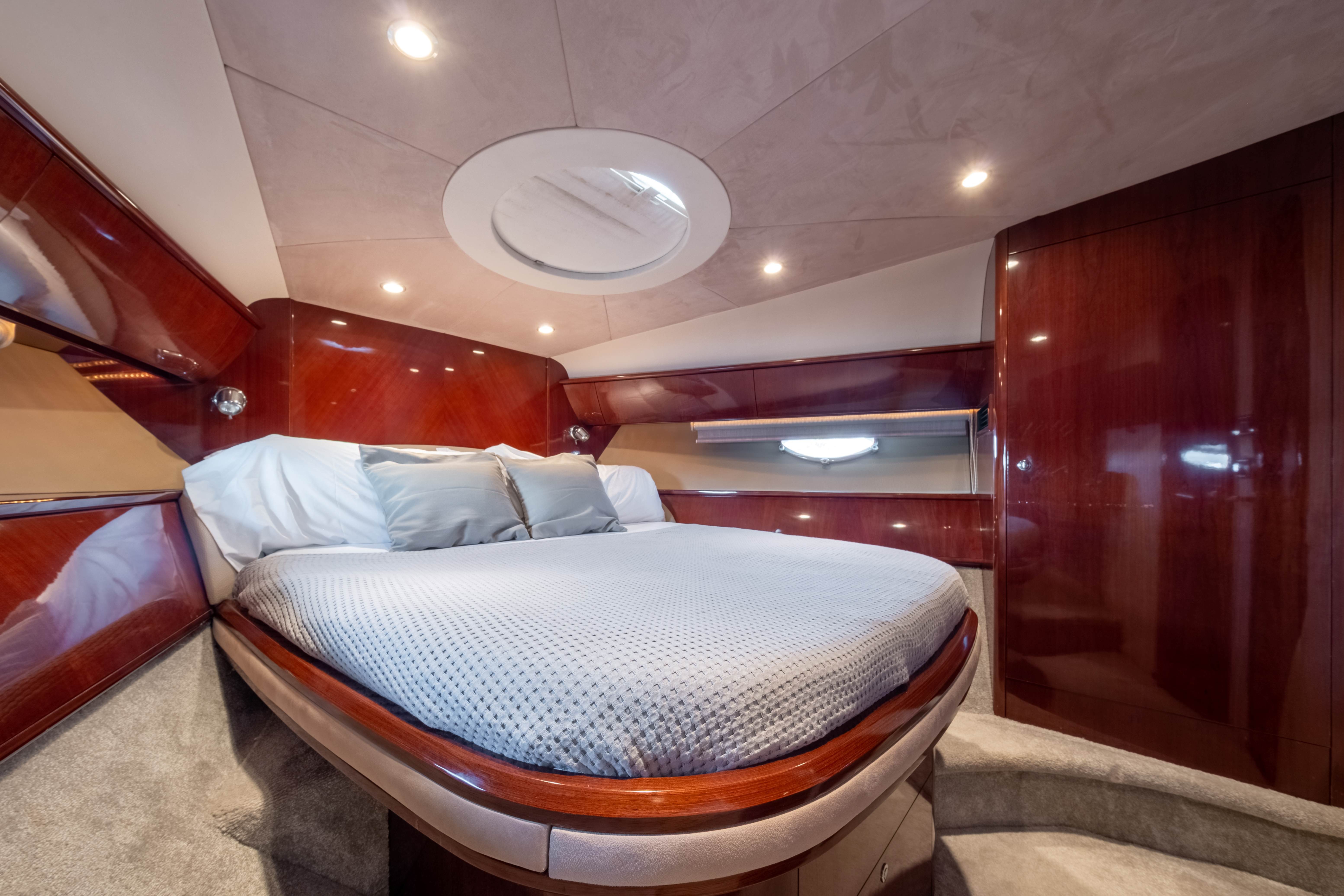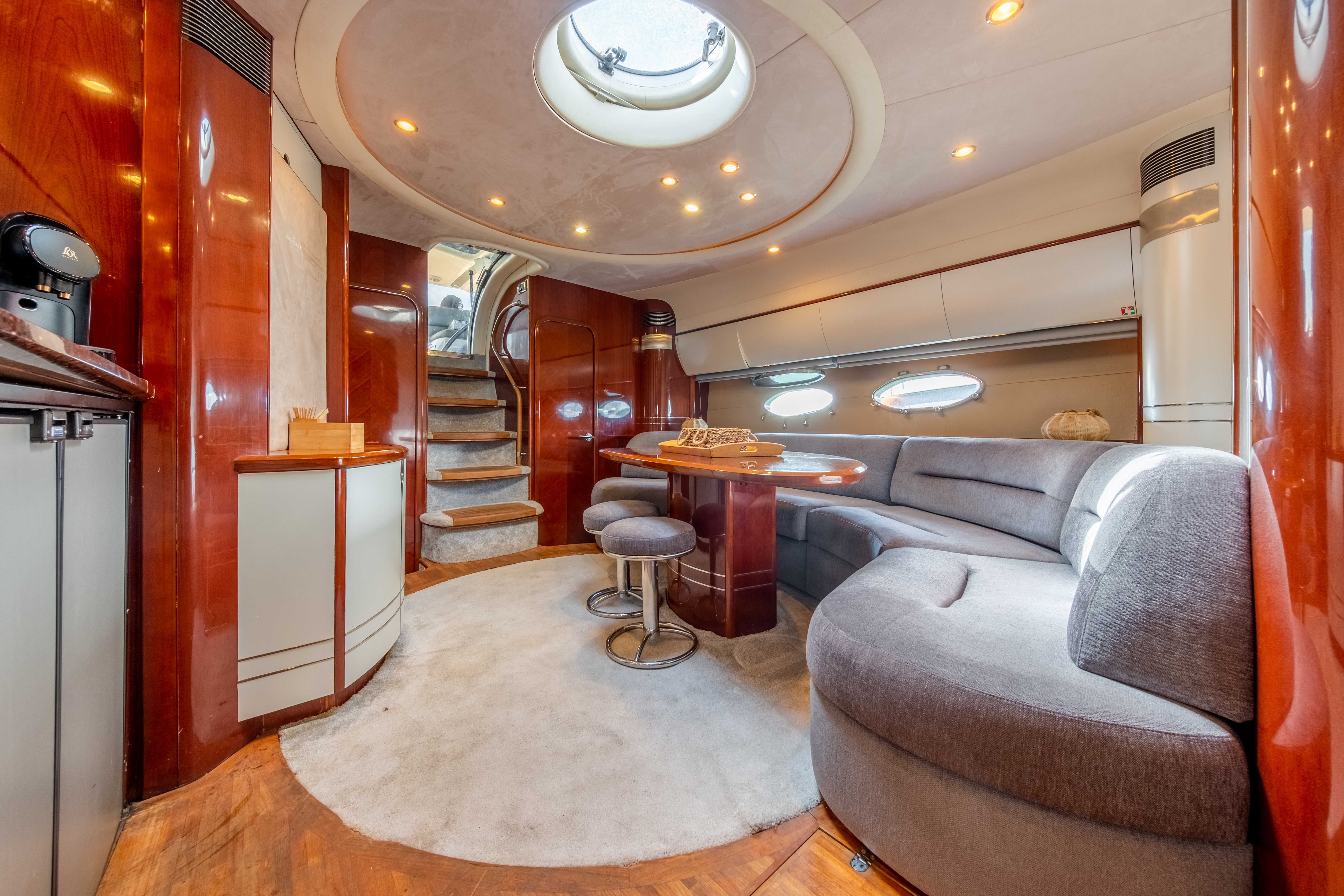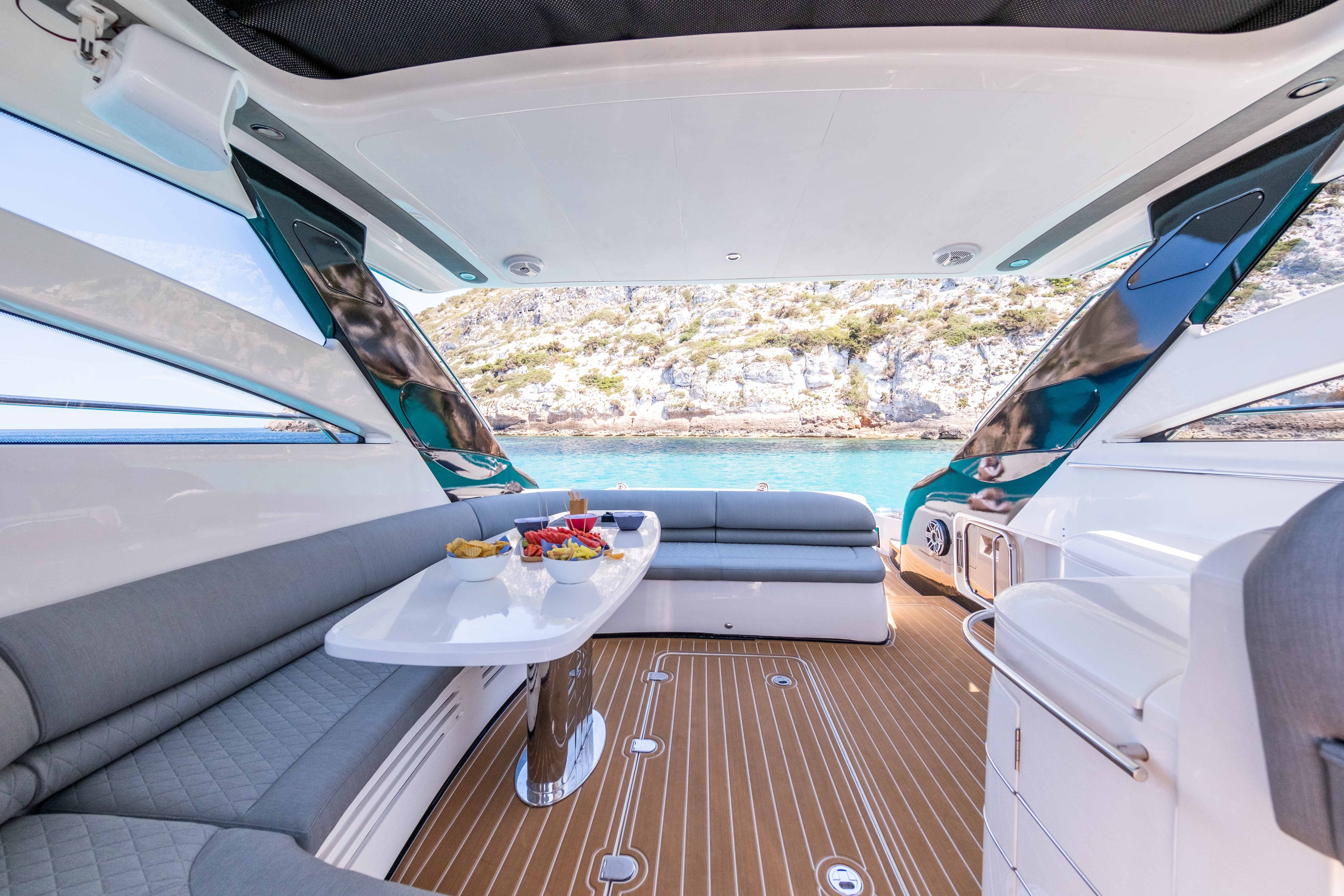 Princess V58 “Make My Day” offers the perfect blend of performance, luxury, and space for an unforgettable day cruising Ibiza and Formentera. With her sleek profile, open deck layout, and spacious interiors, she is designed for both speed and comfort. The expansive sunbathing areas at the bow and stern, paired with a generous cockpit lounge and alfresco dining space, make her ideal for soaking up the Mediterranean sun. Inside, her modern salon and well-appointed cabins provide a stylish retreat from the heat, while the fully equipped galley ensures convenience onboard.