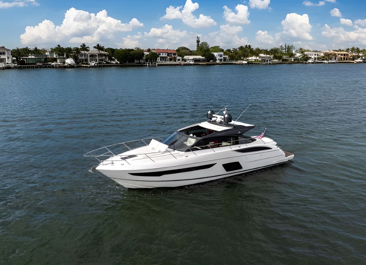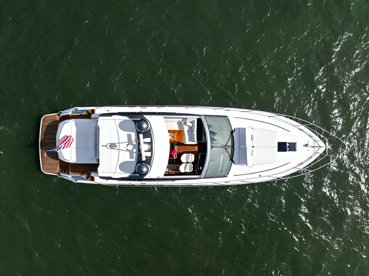 The V58 showcases dynamic exterior styling as well as offering the high performance synonymous with all V Class sports yachts. Fitted with twin Volvo D13-900 engines, the V58 is capable of achieving speeds of up to 37 knots. The main deck saloon comes complete with a generous U-shaped sofa around a dining table with a sideboard unit with glass and bottle storage and refrigerator opposite as well as a 46″ LED TV on an electric raise/lower mechanism. Below decks her large hull windows let light pour into the beautifully crafted lower accommodation.