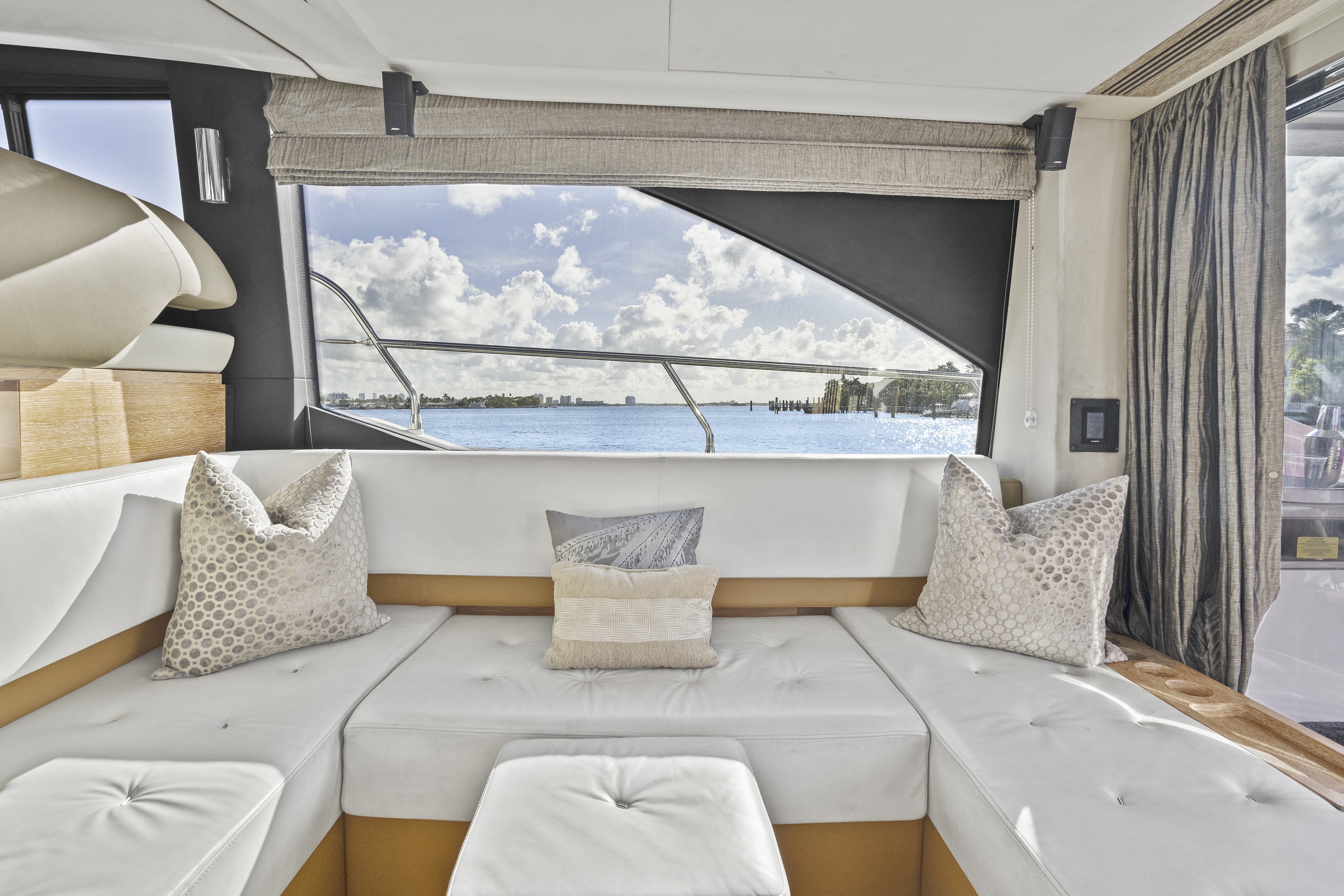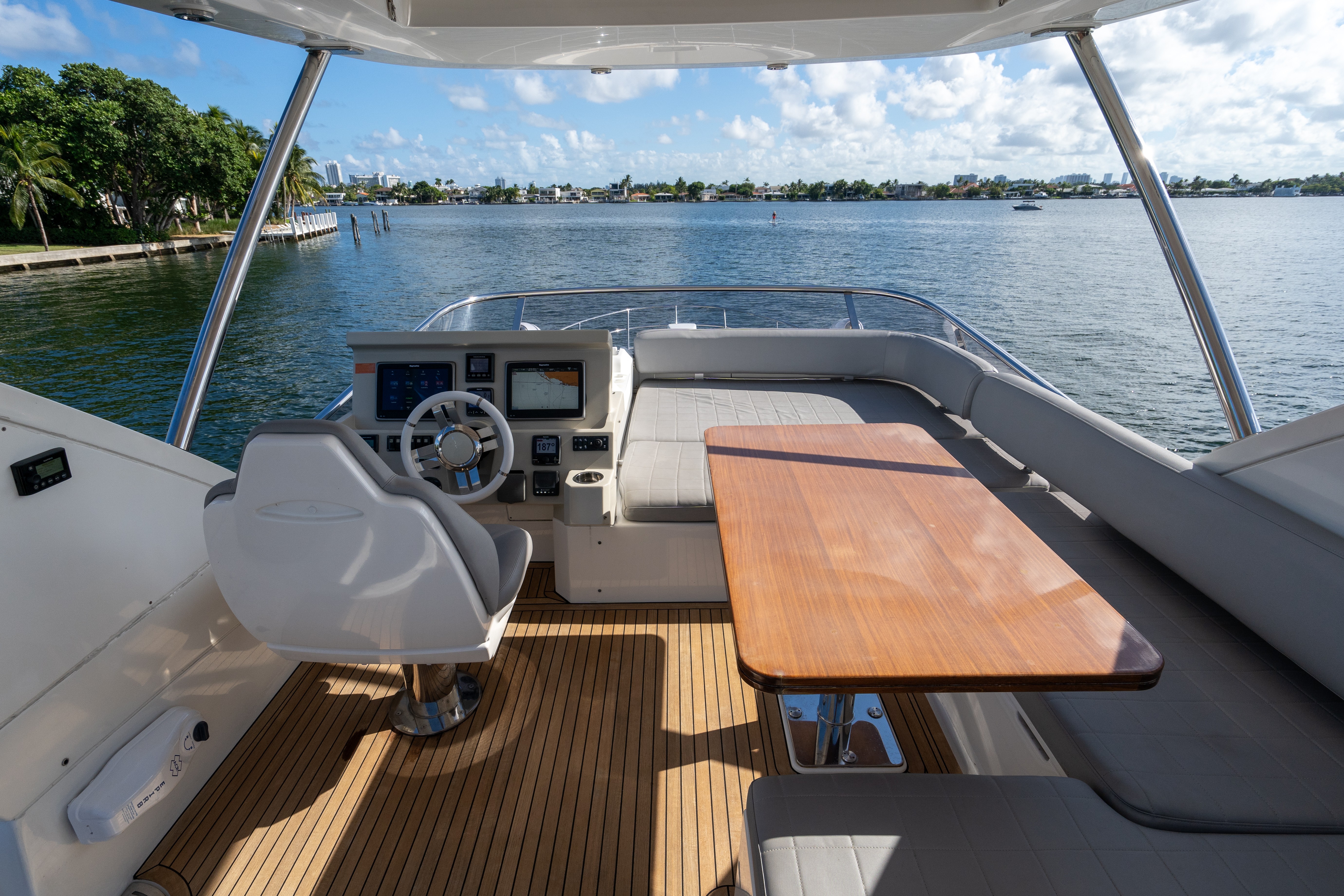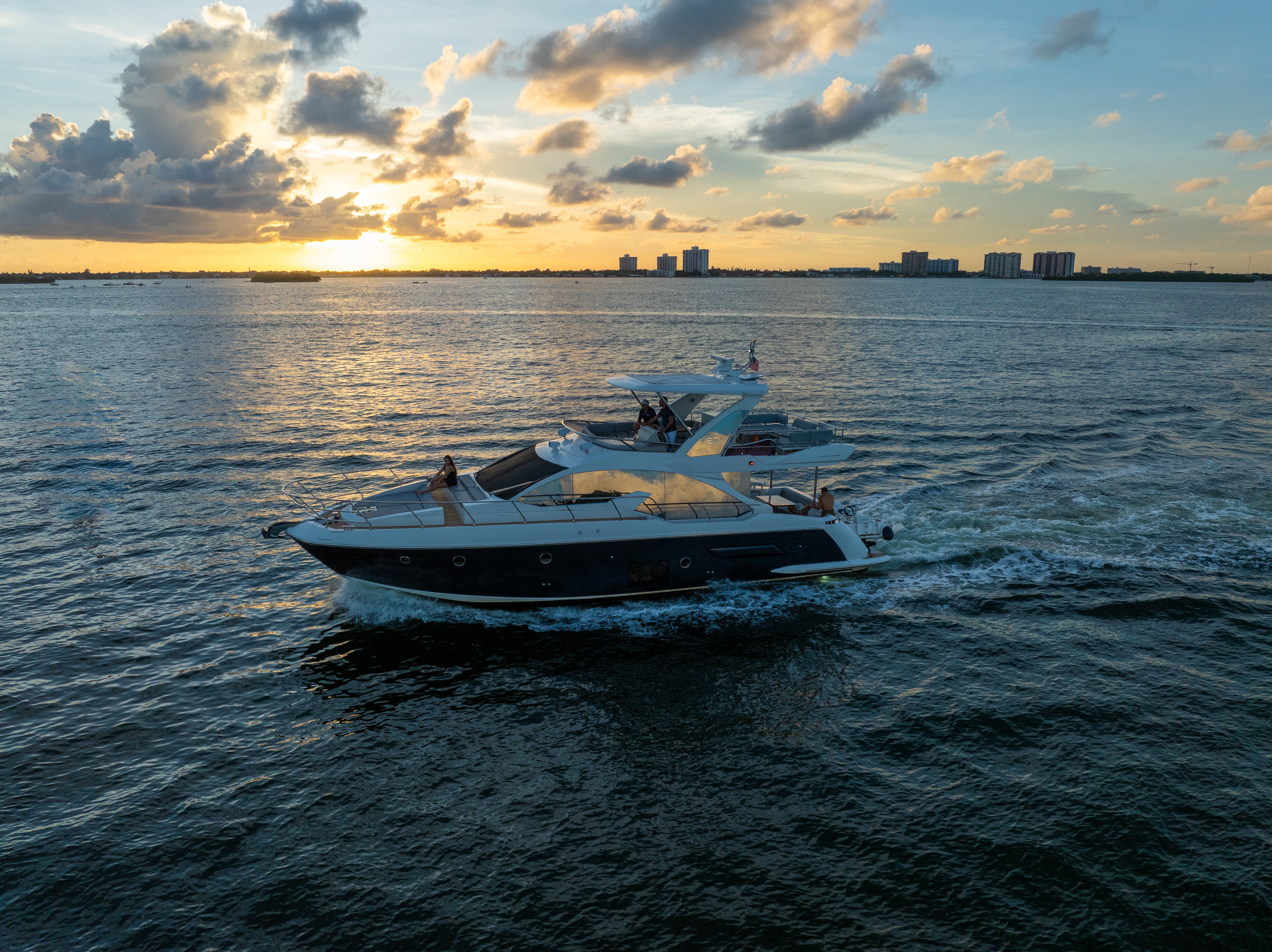 The 2015 Azimut 50 Fly is a 50-foot flybridge yacht, known for its spaciousness, comfortable layout, and great performance. Penned by renowned architect Pierluigi Ausonio and styled by Stefano Righini, the 50 Flybridge boasts a well-proportioned and streamlined hull with Azimut’s signature sweeping saloon windows and vertical stateroom glass. The glass offers wide views and magnifies the feeling of space.