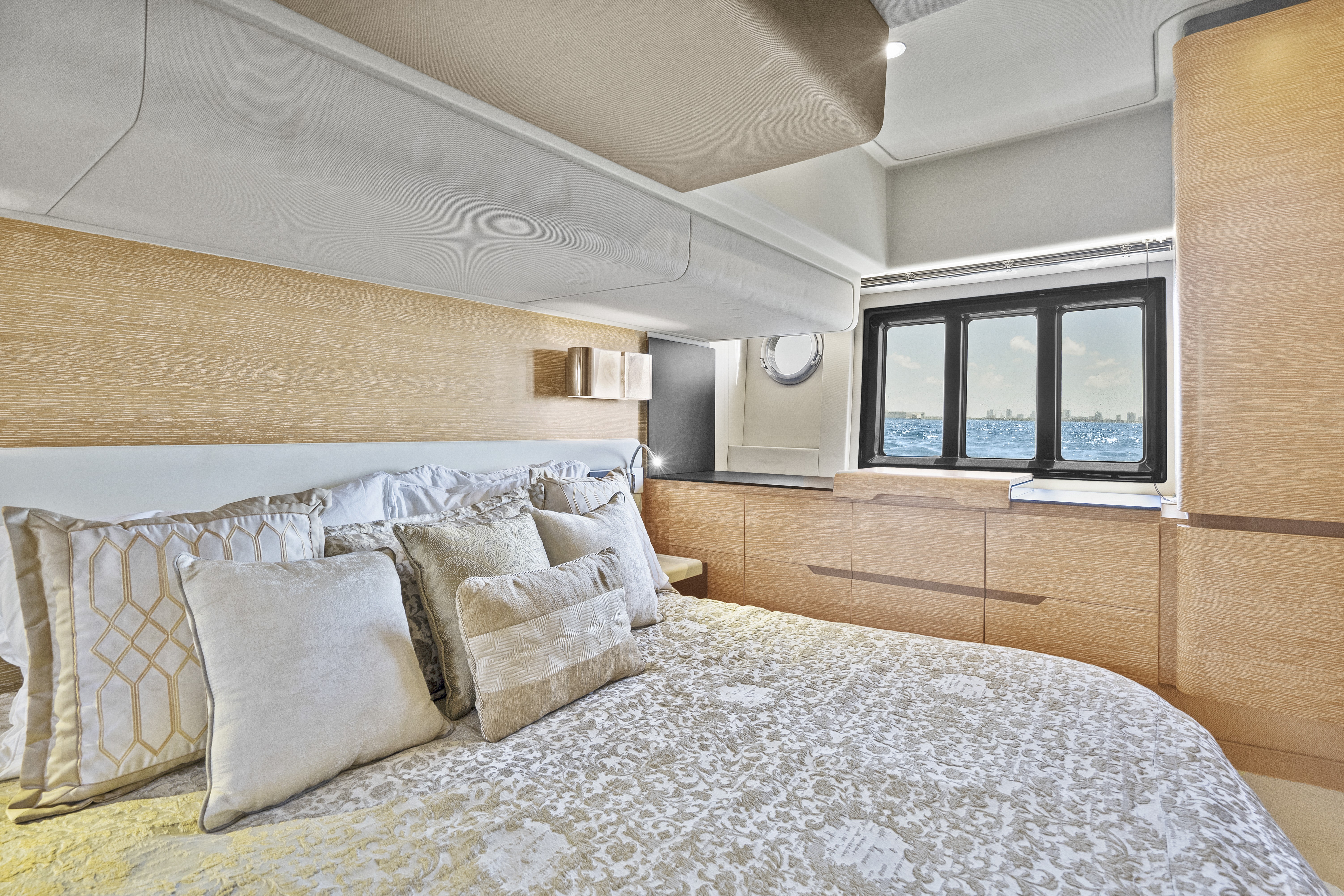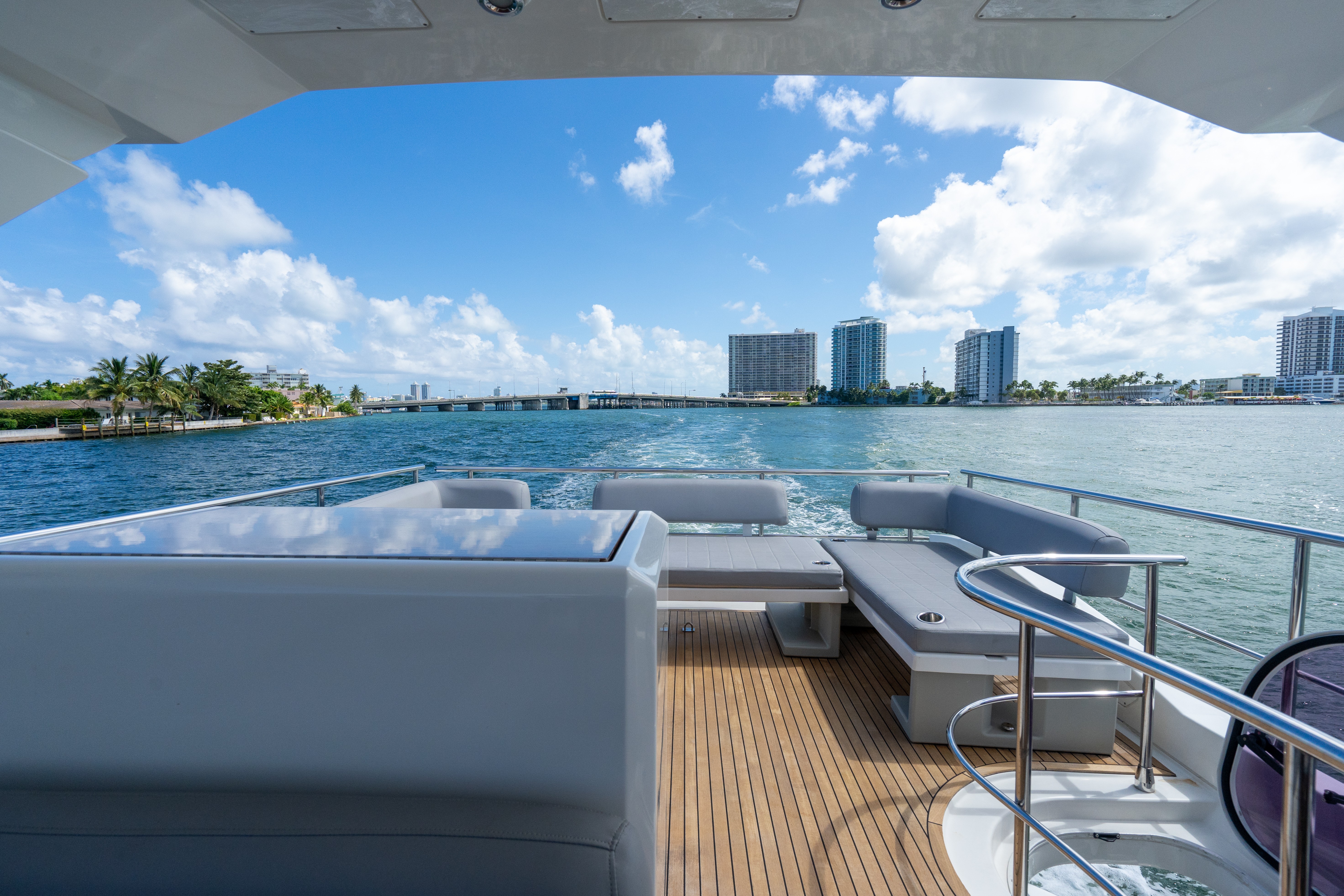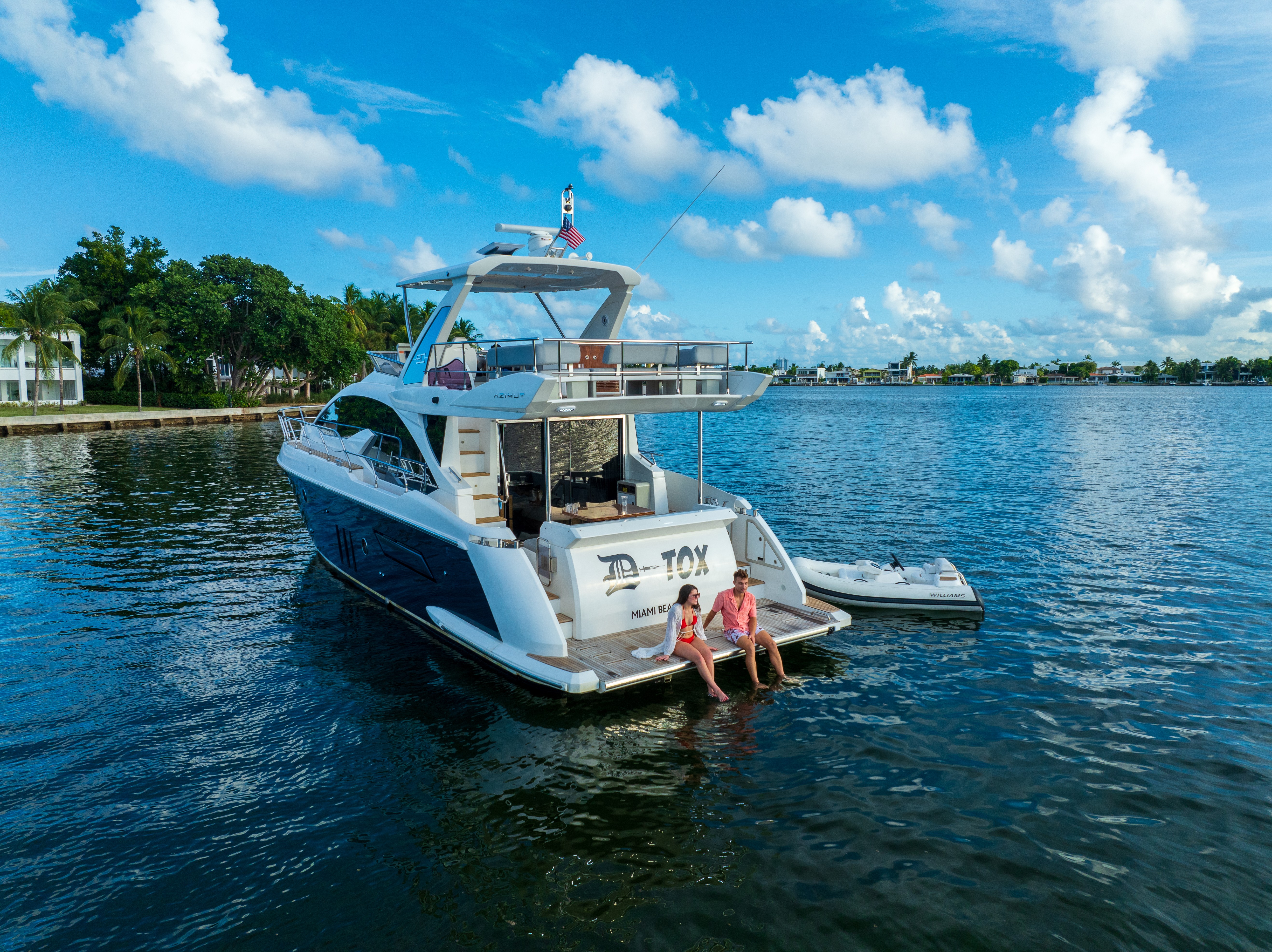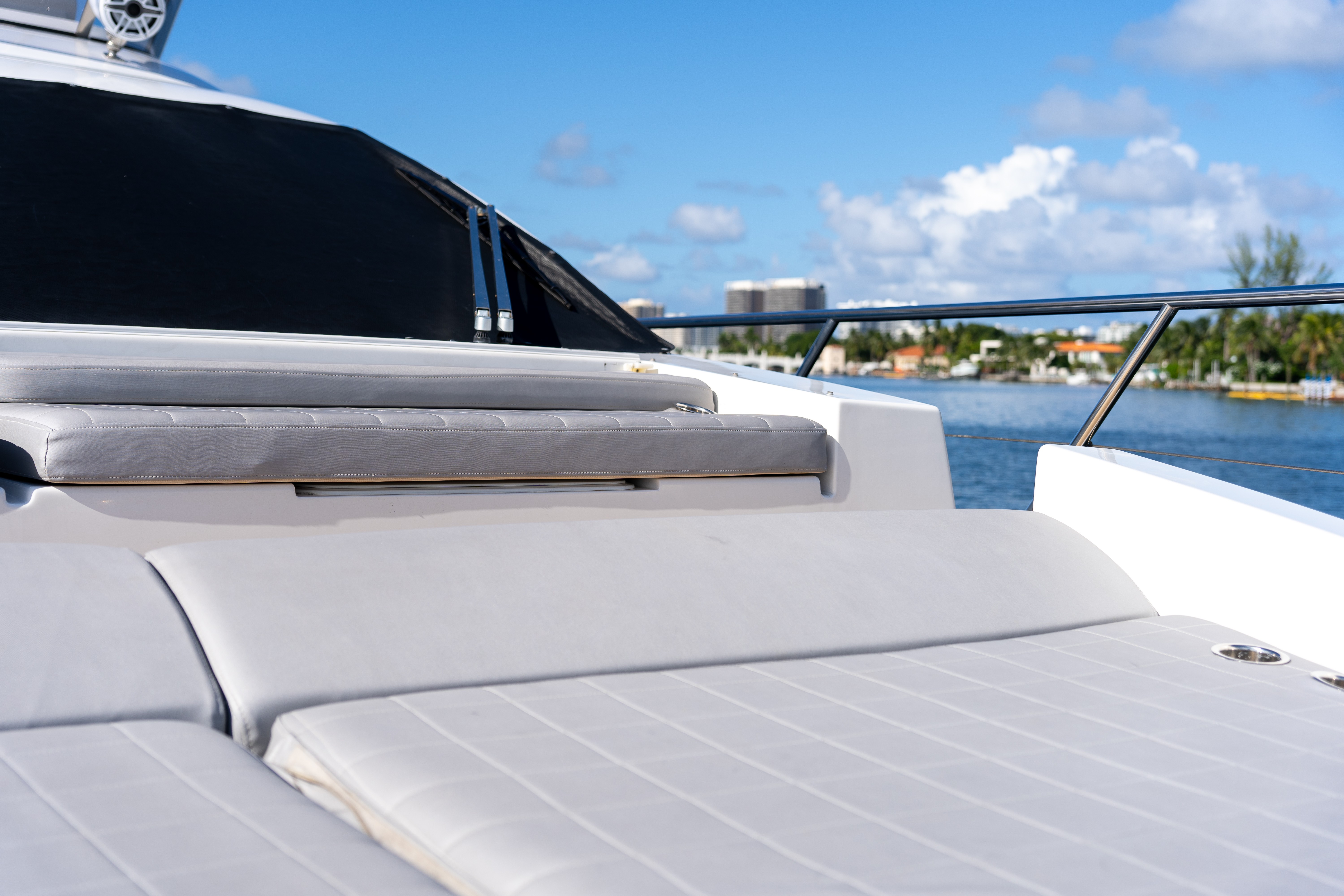 The 2015 Azimut 50 Fly is a 50-foot flybridge yacht, known for its spaciousness, comfortable layout, and great performance. Penned by renowned architect Pierluigi Ausonio and styled by Stefano Righini, the 50 Flybridge boasts a well-proportioned and streamlined hull with Azimut’s signature sweeping saloon windows and vertical stateroom glass. The glass offers wide views and magnifies the feeling of space.